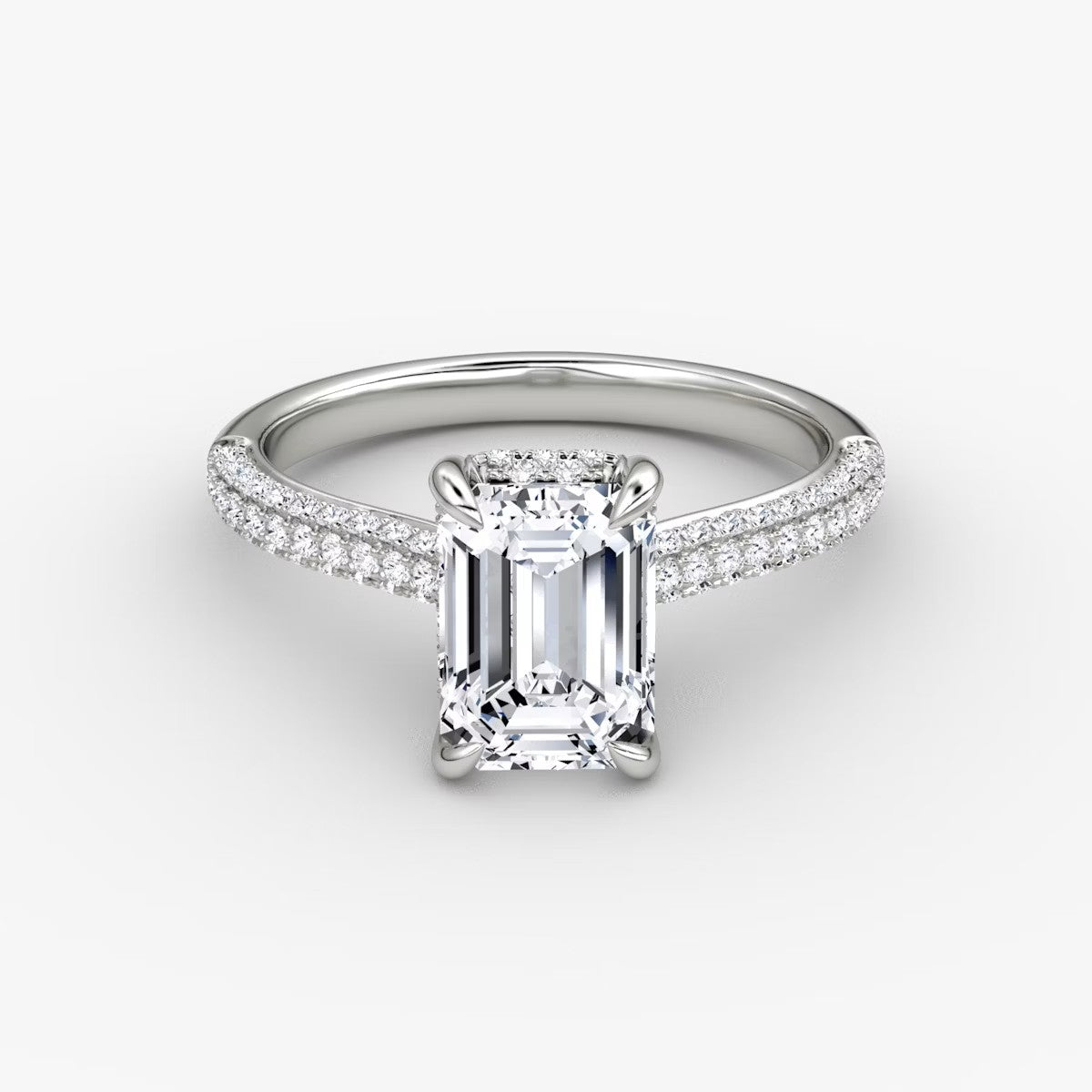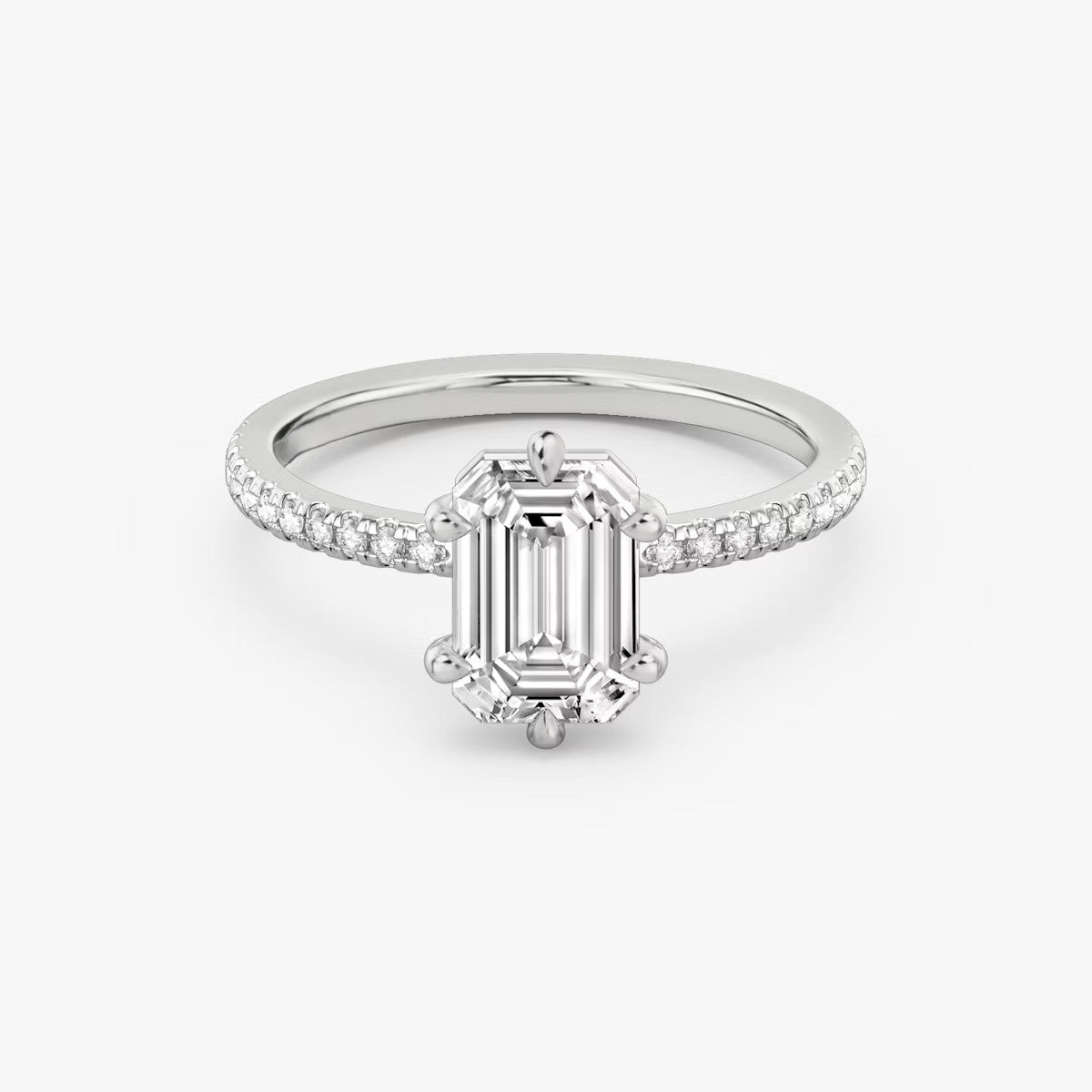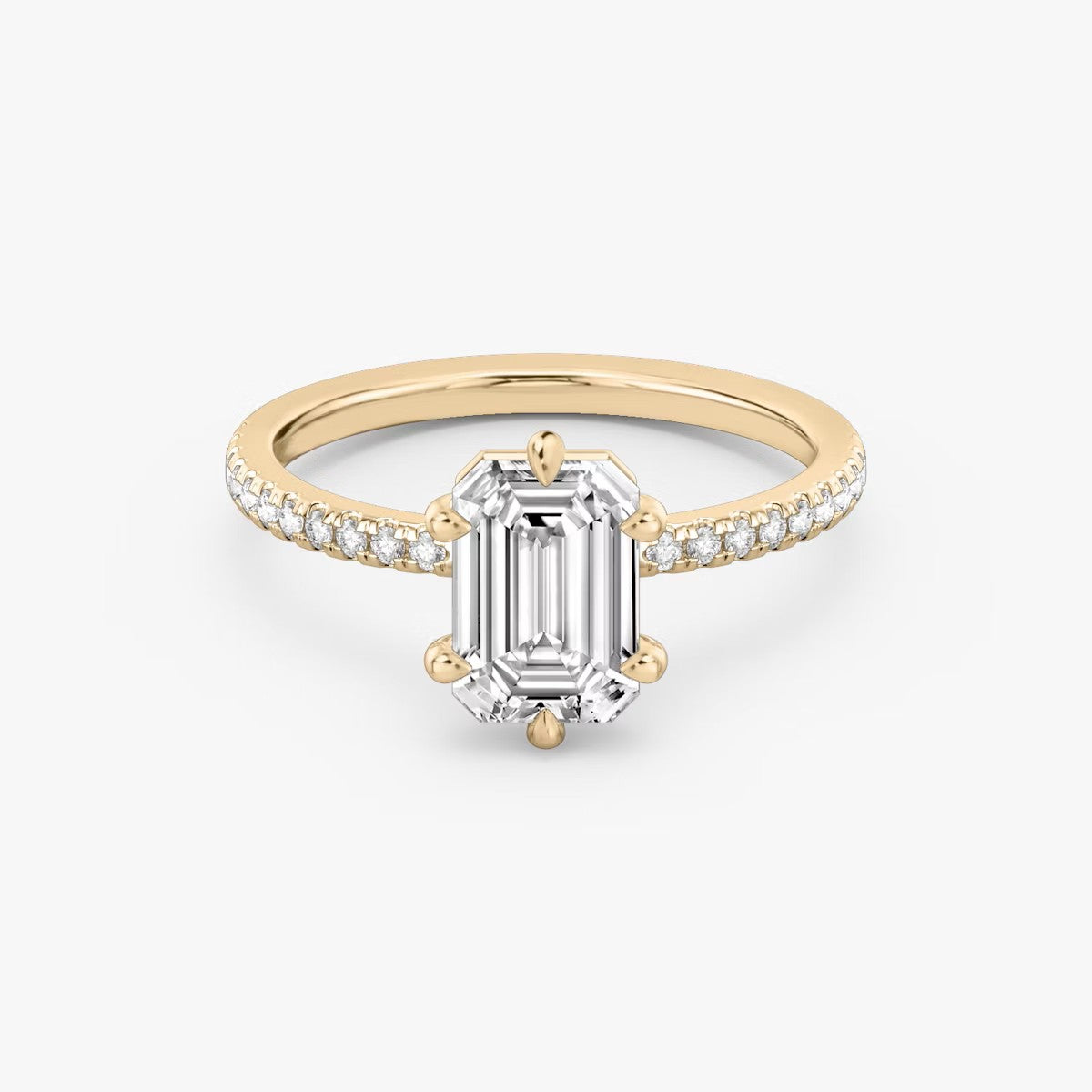 Emerald Cut - Pave Band - 6 Prong Classic Ring - 18 K Gold