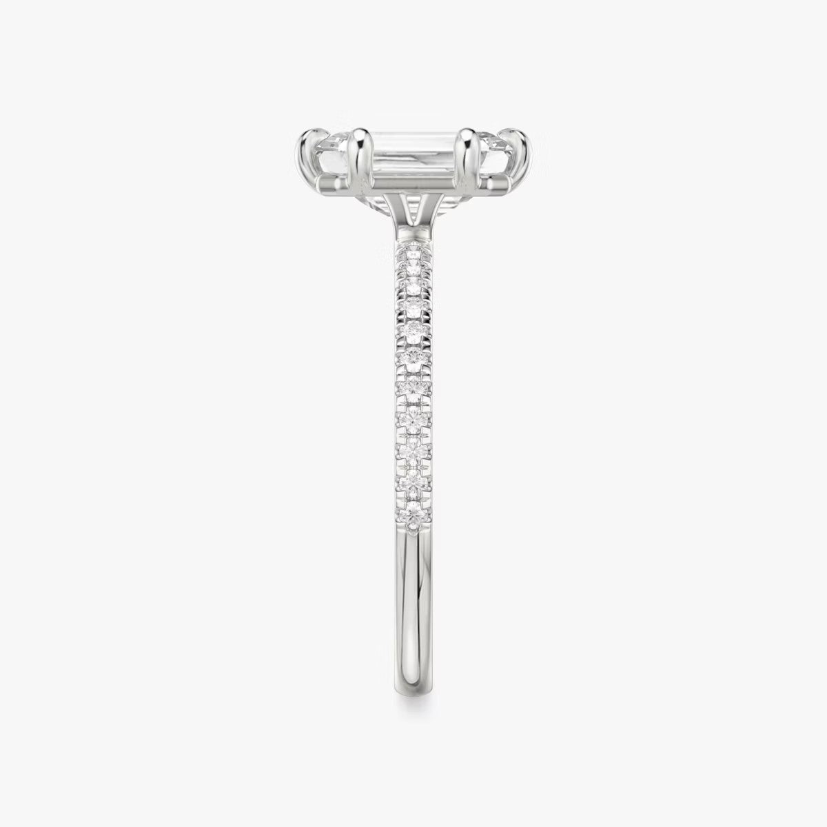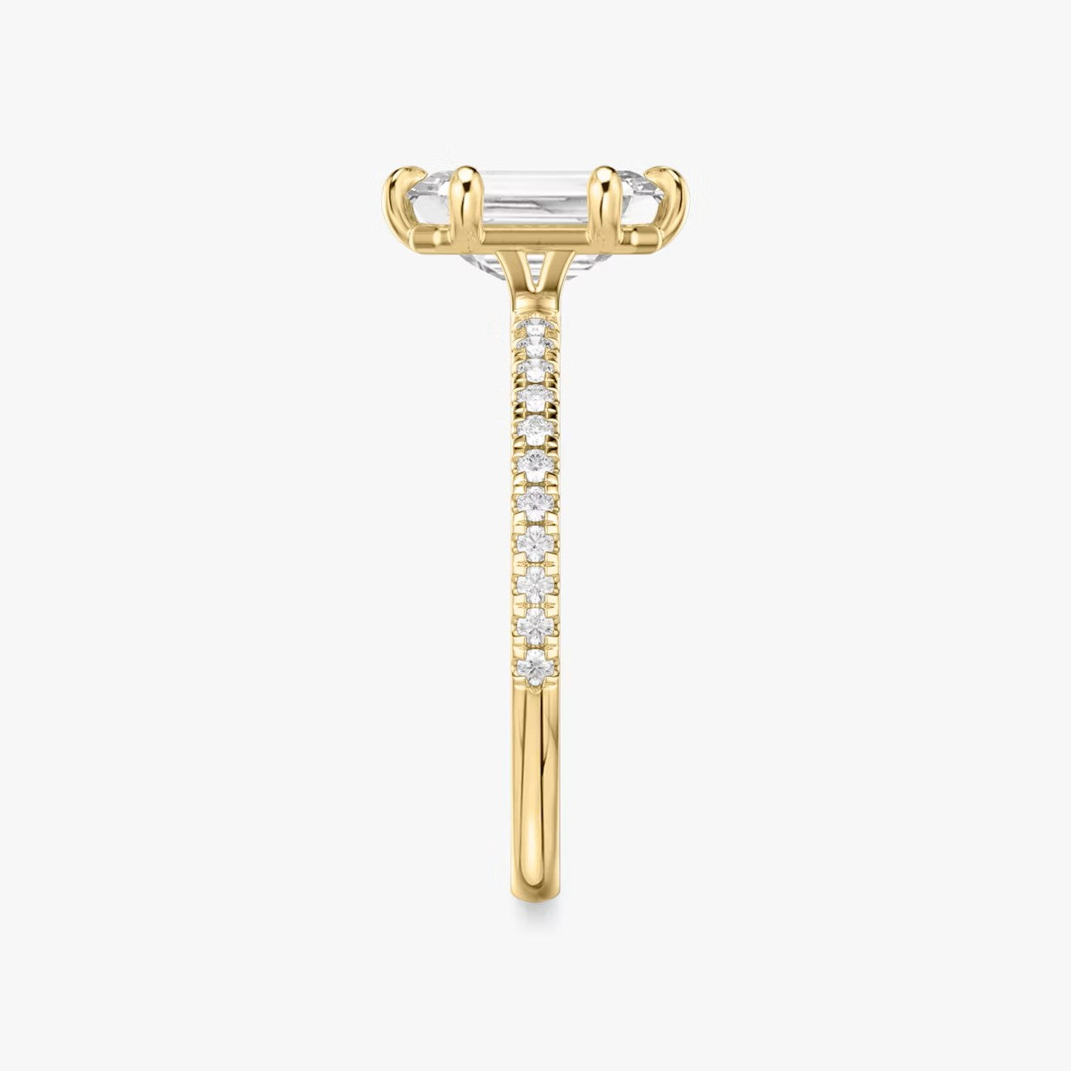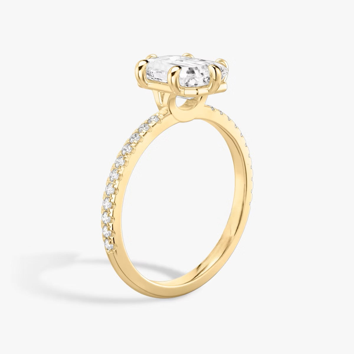 Emerald Cut - Pave Band - 6 Prong Classic Ring - 18 K Gold