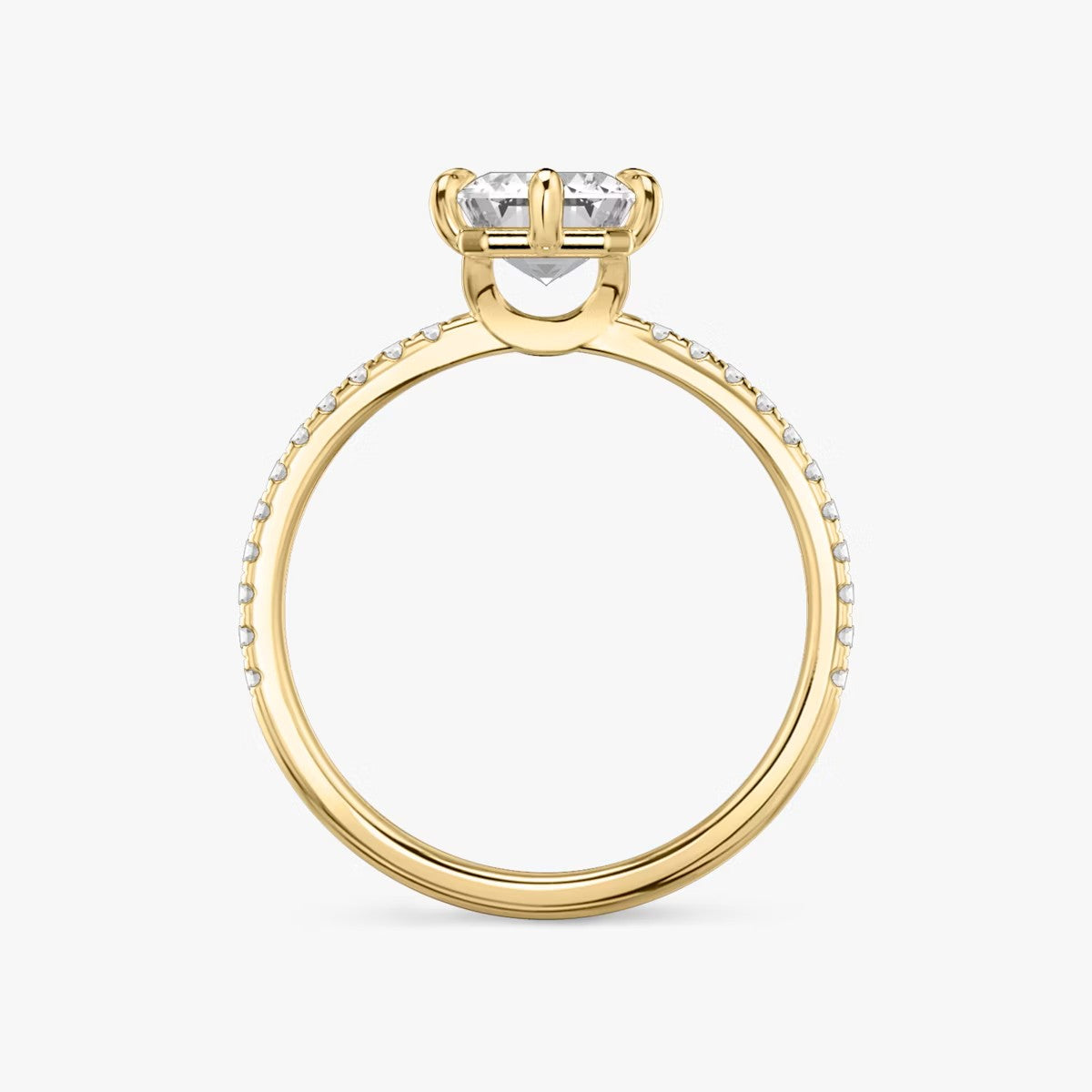 Oval Cut - Pave Band - 6 Prong Classic Ring - 18 K Gold