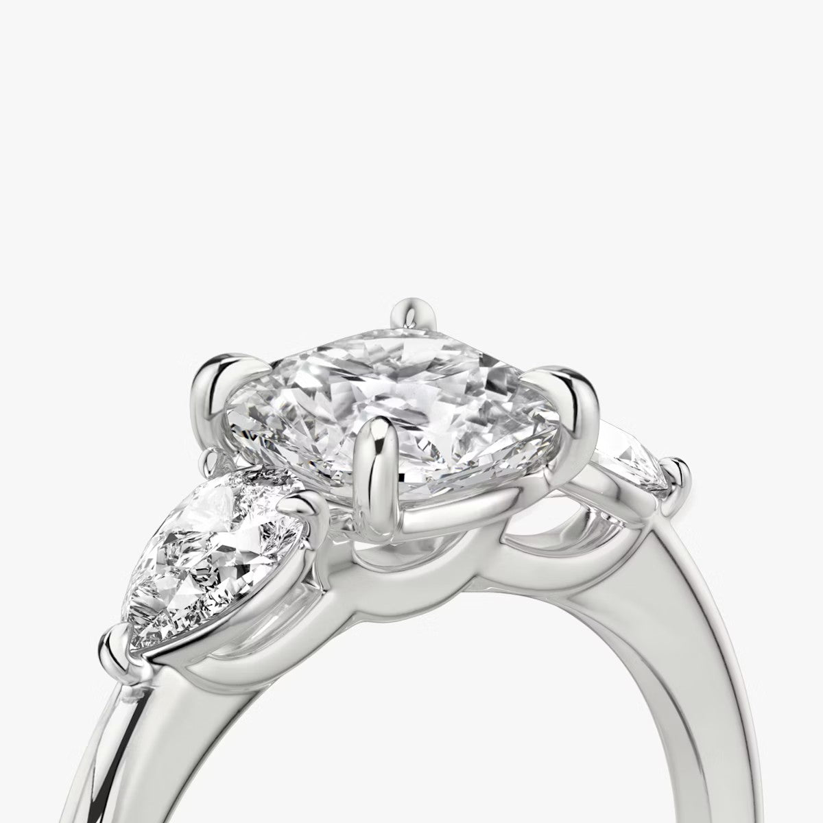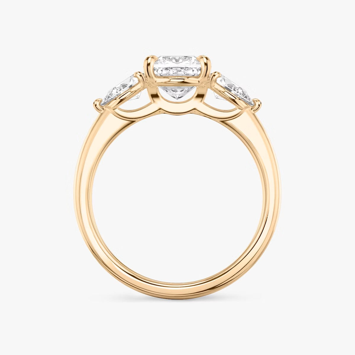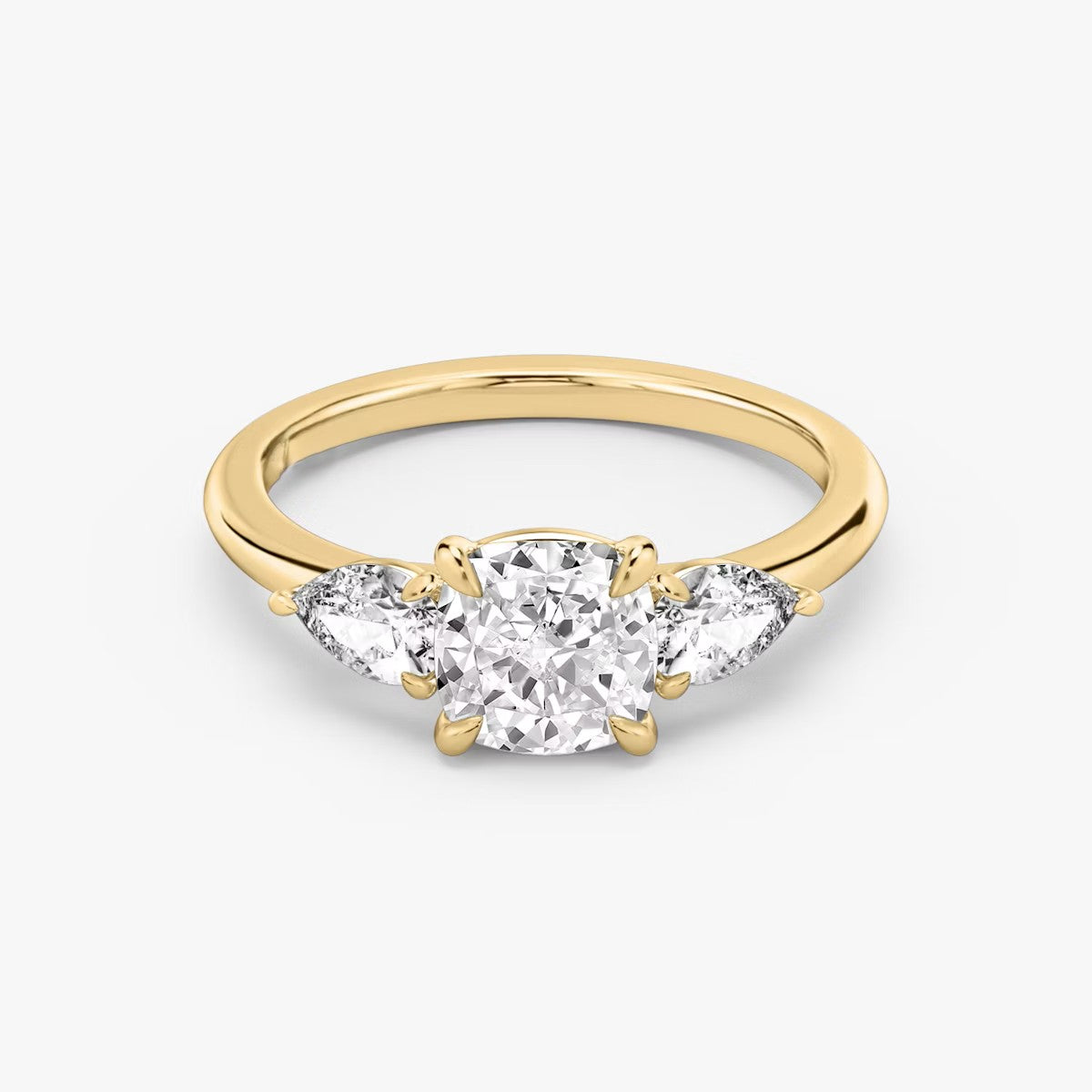 Cushion Cut - Plain Band - Three Stone Ring - 0.25 Ct Side Stone each - 18 K Gold