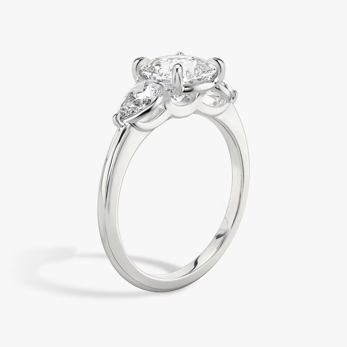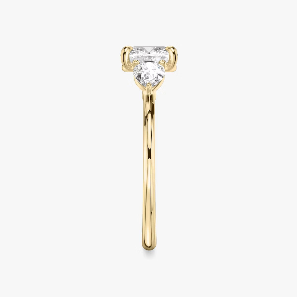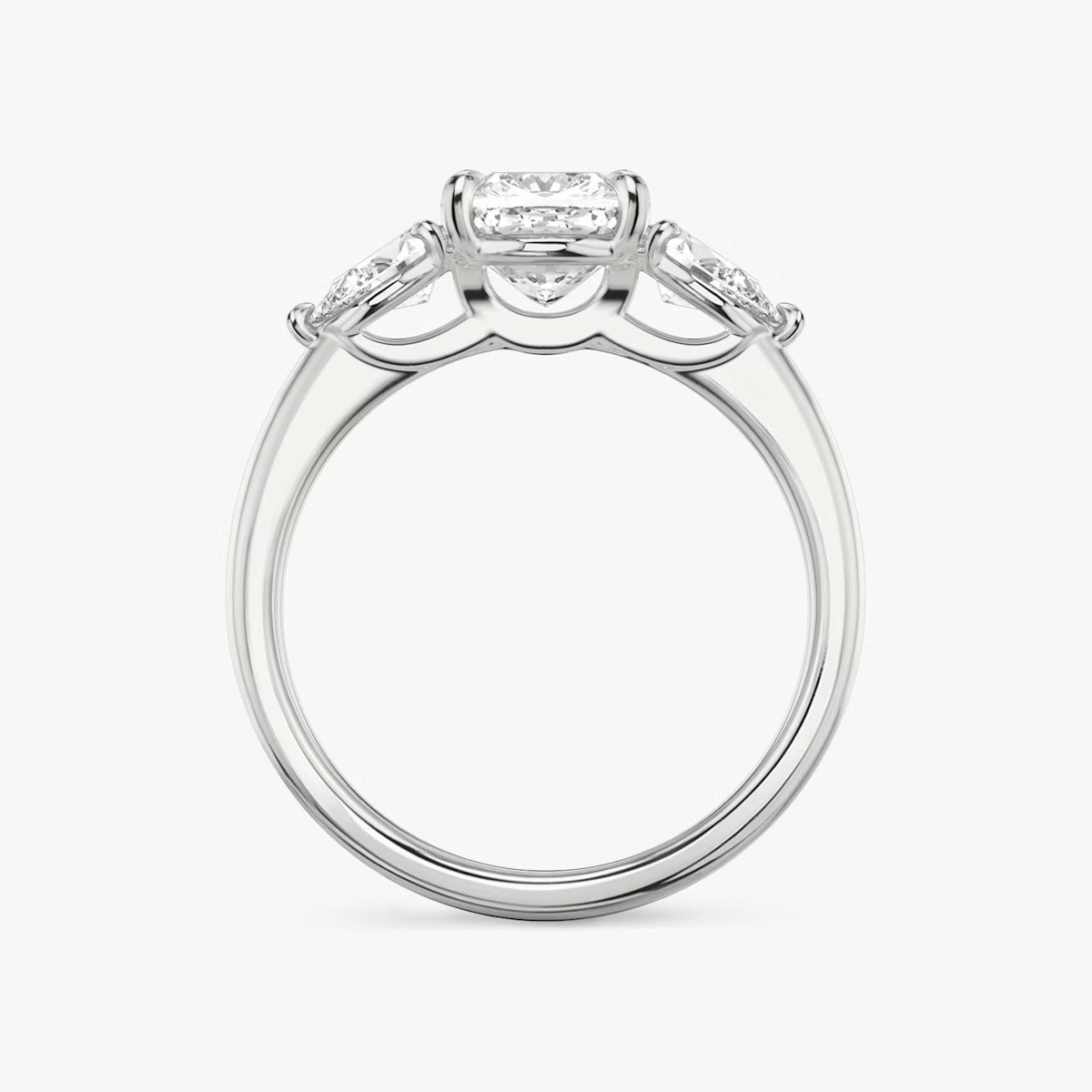 Cushion Cut - Plain Band - Three Stone Ring - 0.25 Ct Side Stone each - 18 K Gold