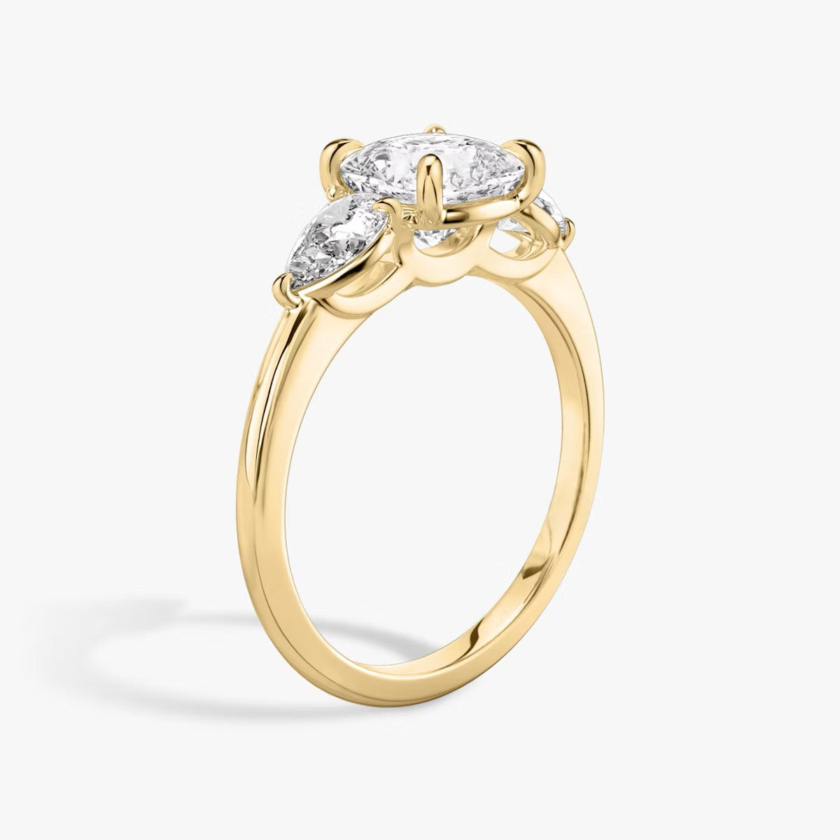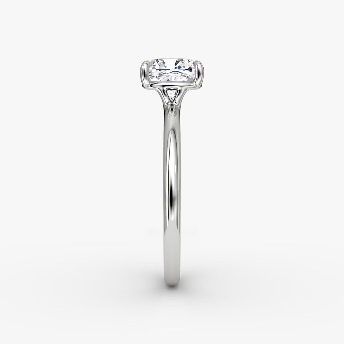 Cushion Cut - Plain Band - Three Stone Ring - 0.25 Ct Side Stone each - 14 K Gold