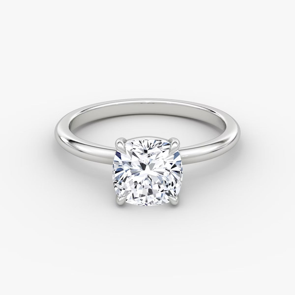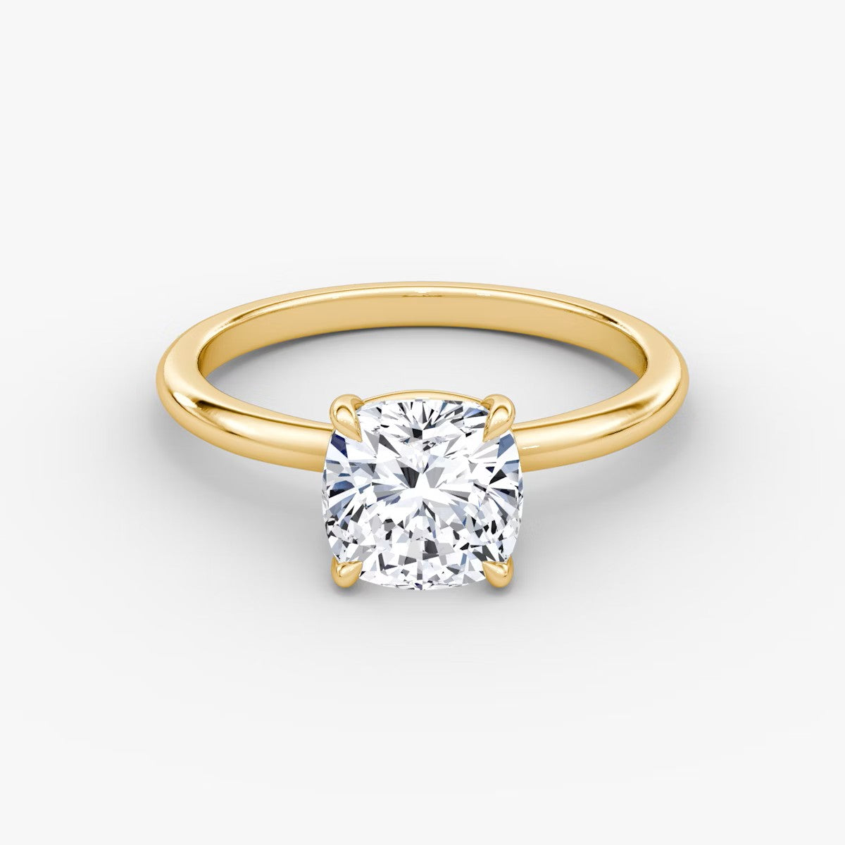Cushion Cut - Plain Band - Classic Engagement Ring- 18 K Gold