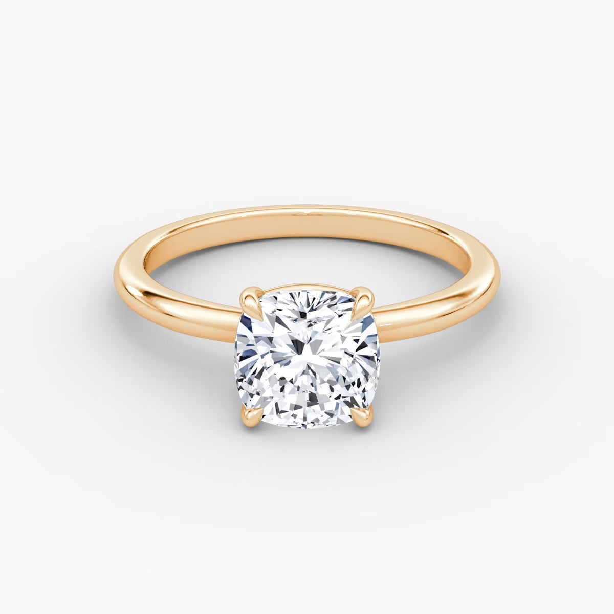 Cushion Cut - Plain Band - Classic Engagement Ring- 14 K Gold