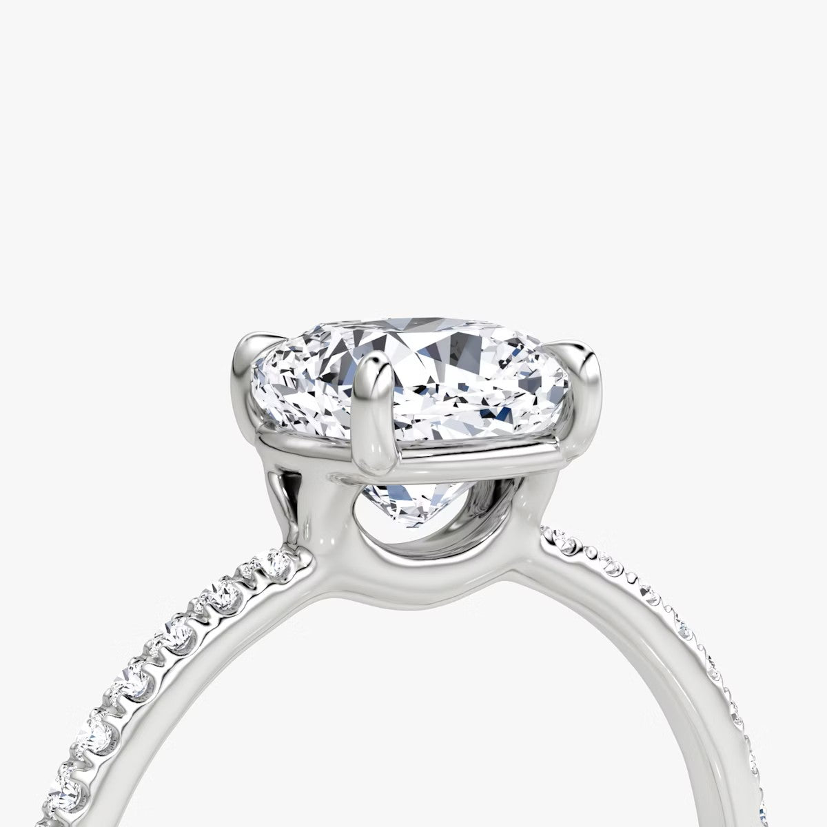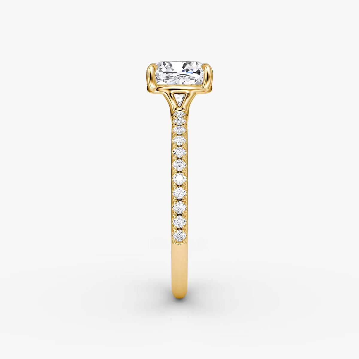 Cushion Cut - Pave Band - Classic Engagement Ring- 18 K Gold