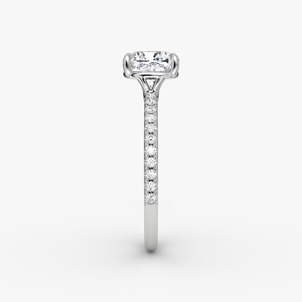 Cushion Cut - Pave Band Hidden Halo - Classic Engagement Ring- 14 K
