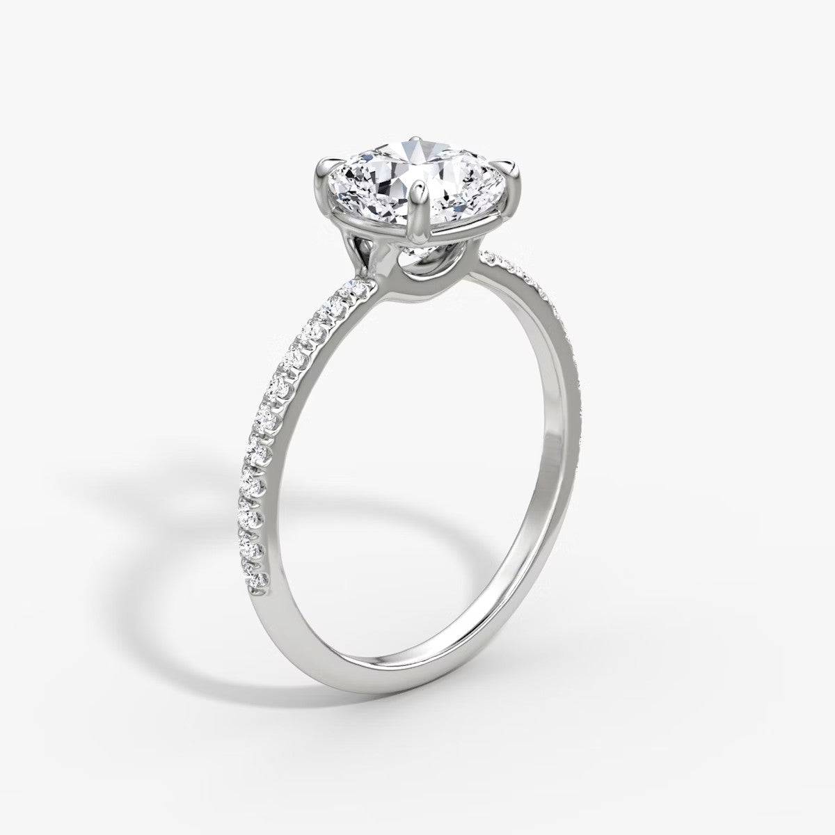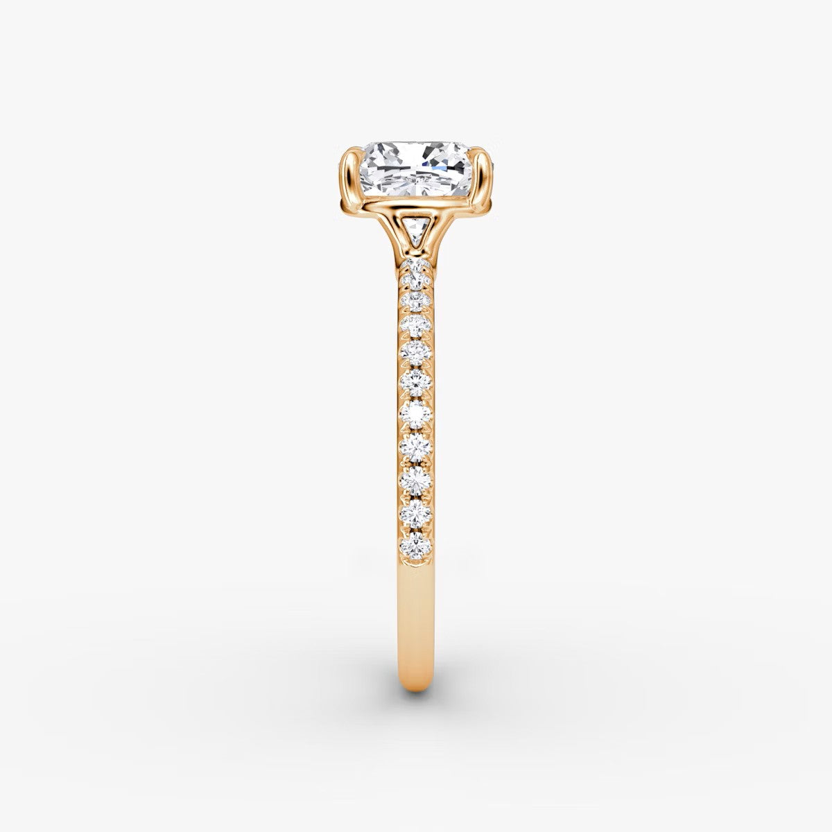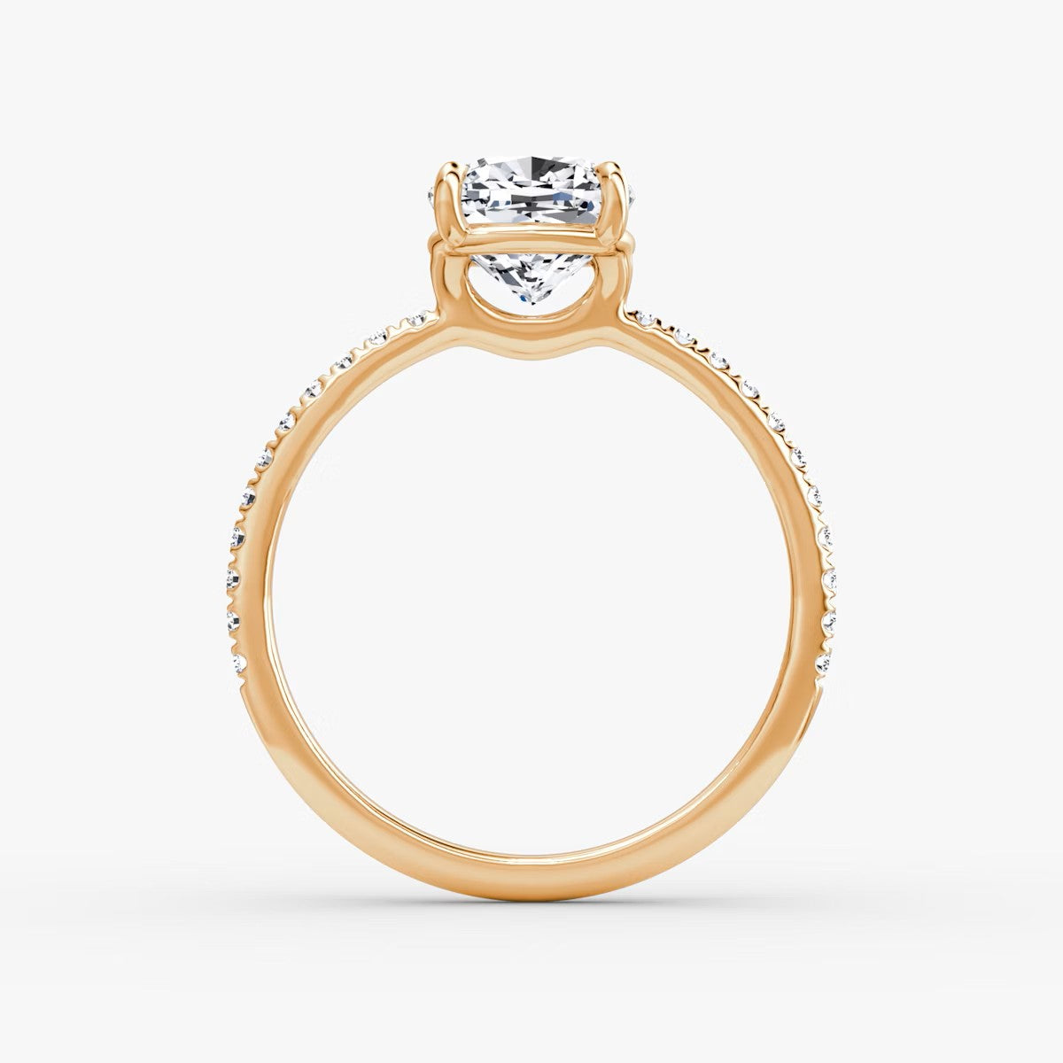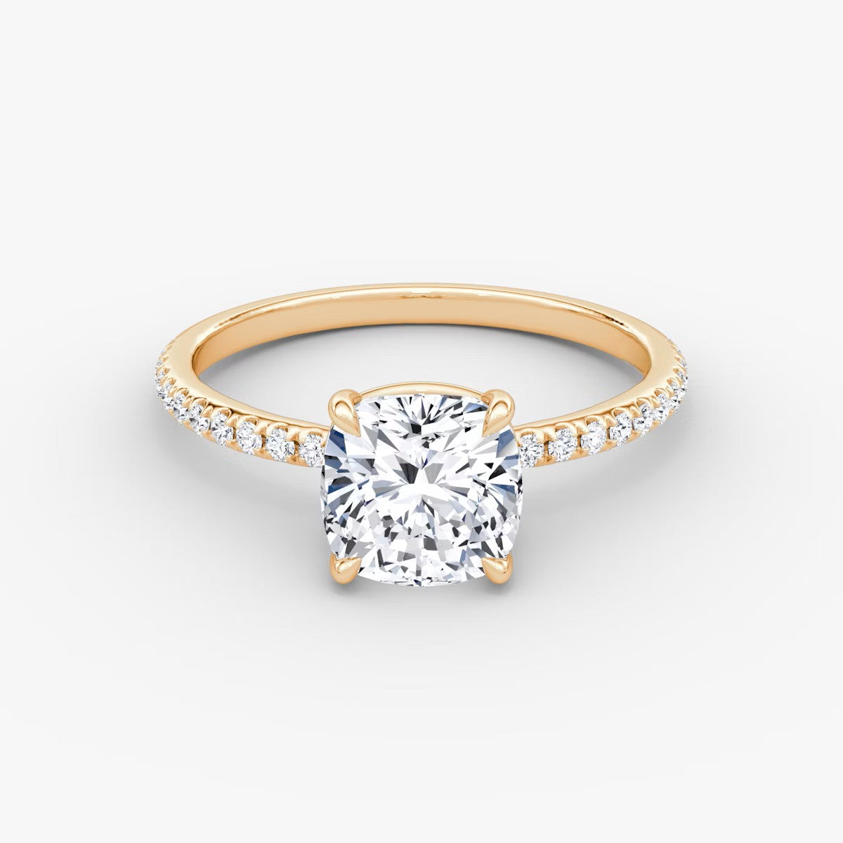 Cushion Cut - Pave Band - Classic Engagement Ring- 14 K Gold