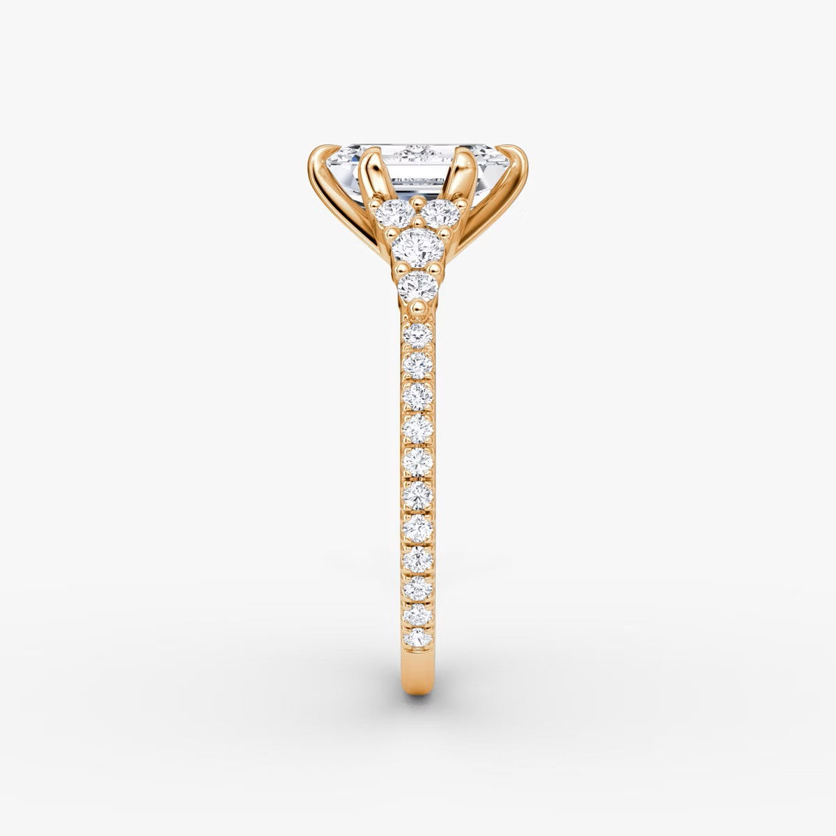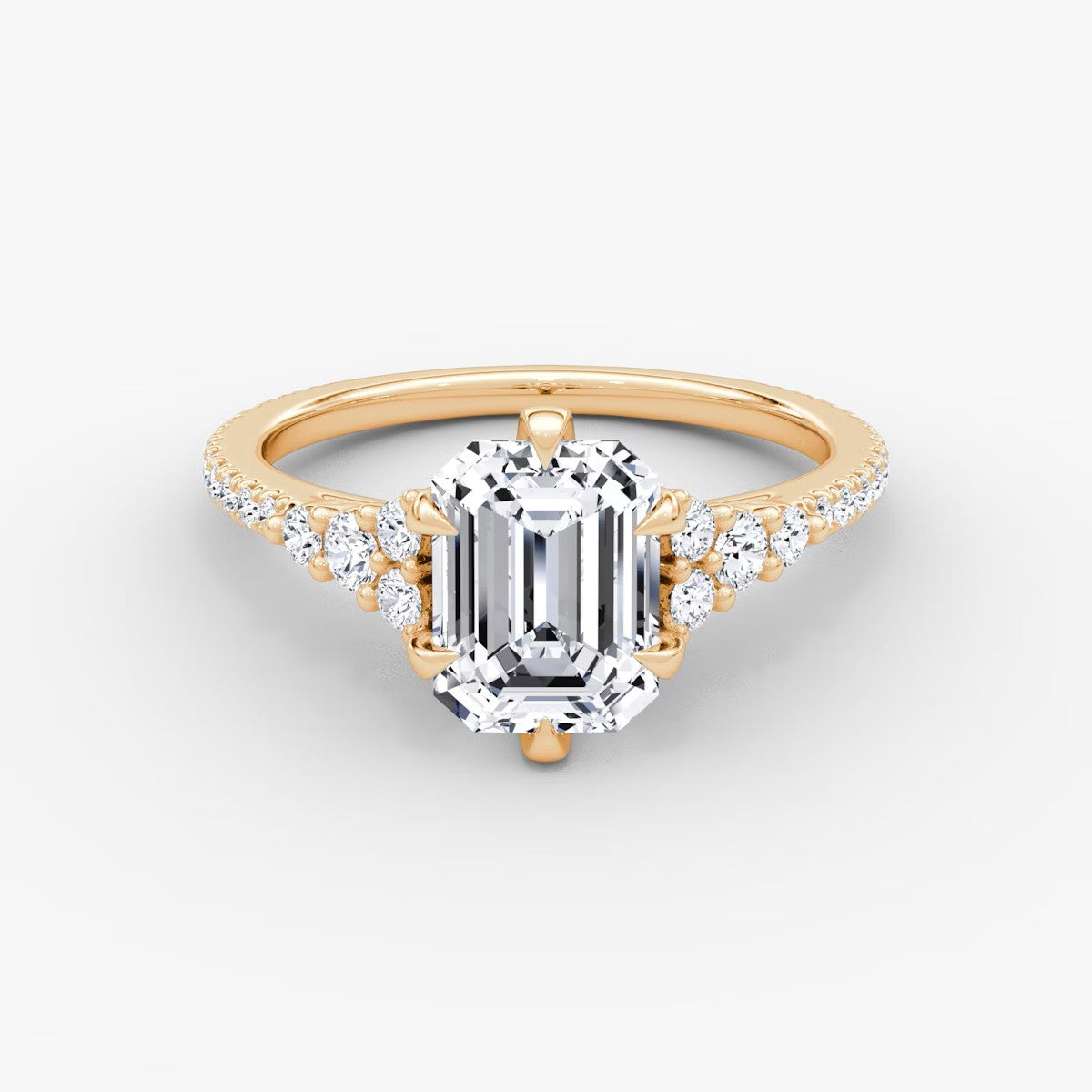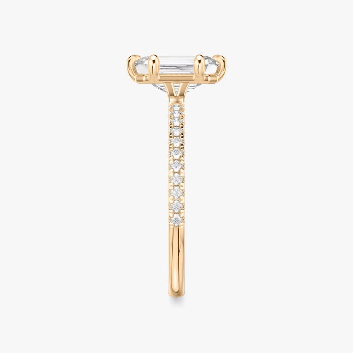 Emerald Cut - Pave Band - 6 Prong Classic Ring - 14 K Gold