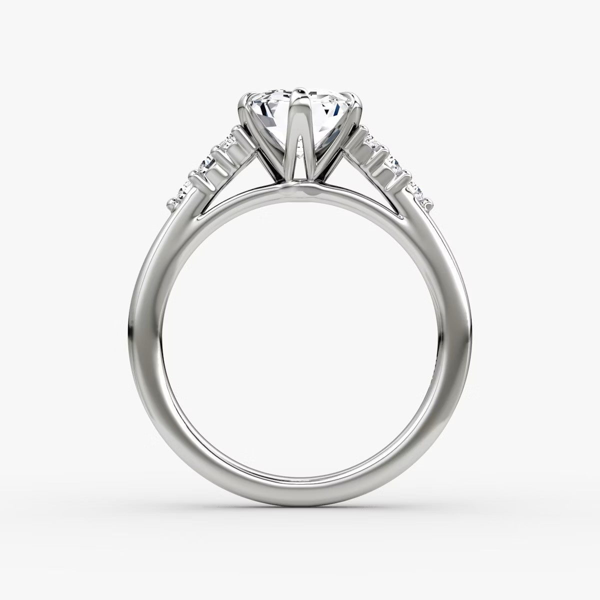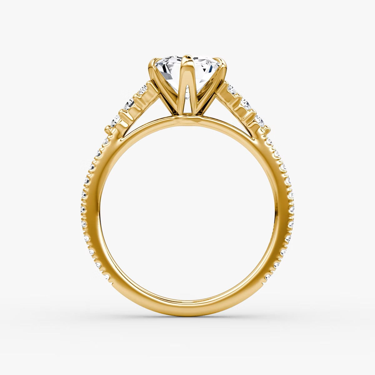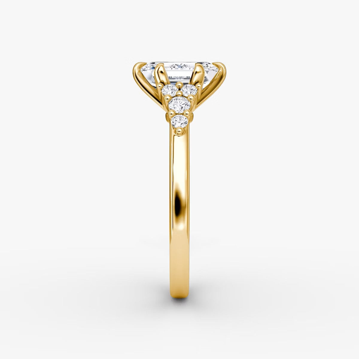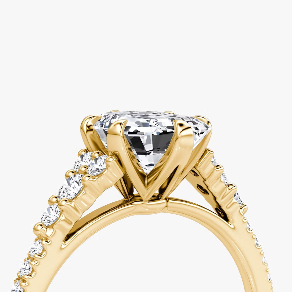 Emerald Cut - Pave Band - 6 Prong Classic Ring - 14 K Gold