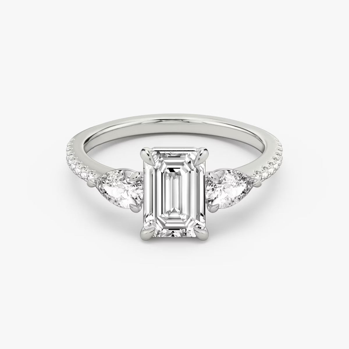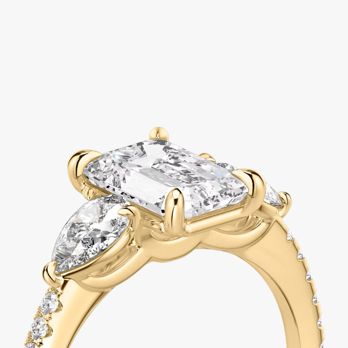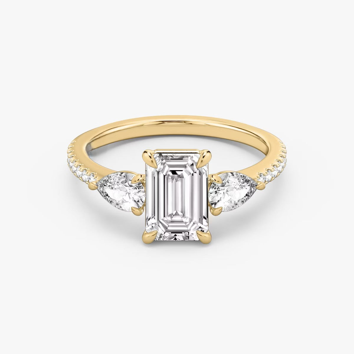 Emerald Cut - Pave Band - Three Stone Ring - 0.25 Ct Side Stone each - 18 K Gold