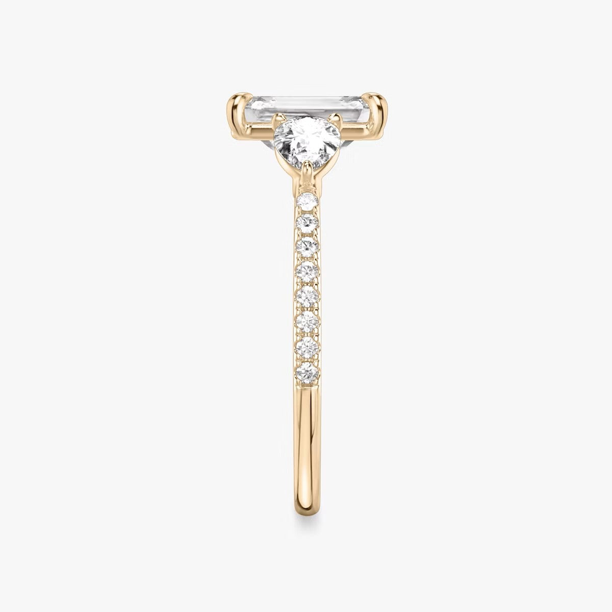 Emerald Cut - Pave Band - Three Stone Ring - 0.25 Ct Side Stone each - 14 K Gold