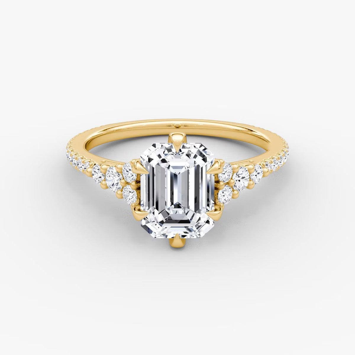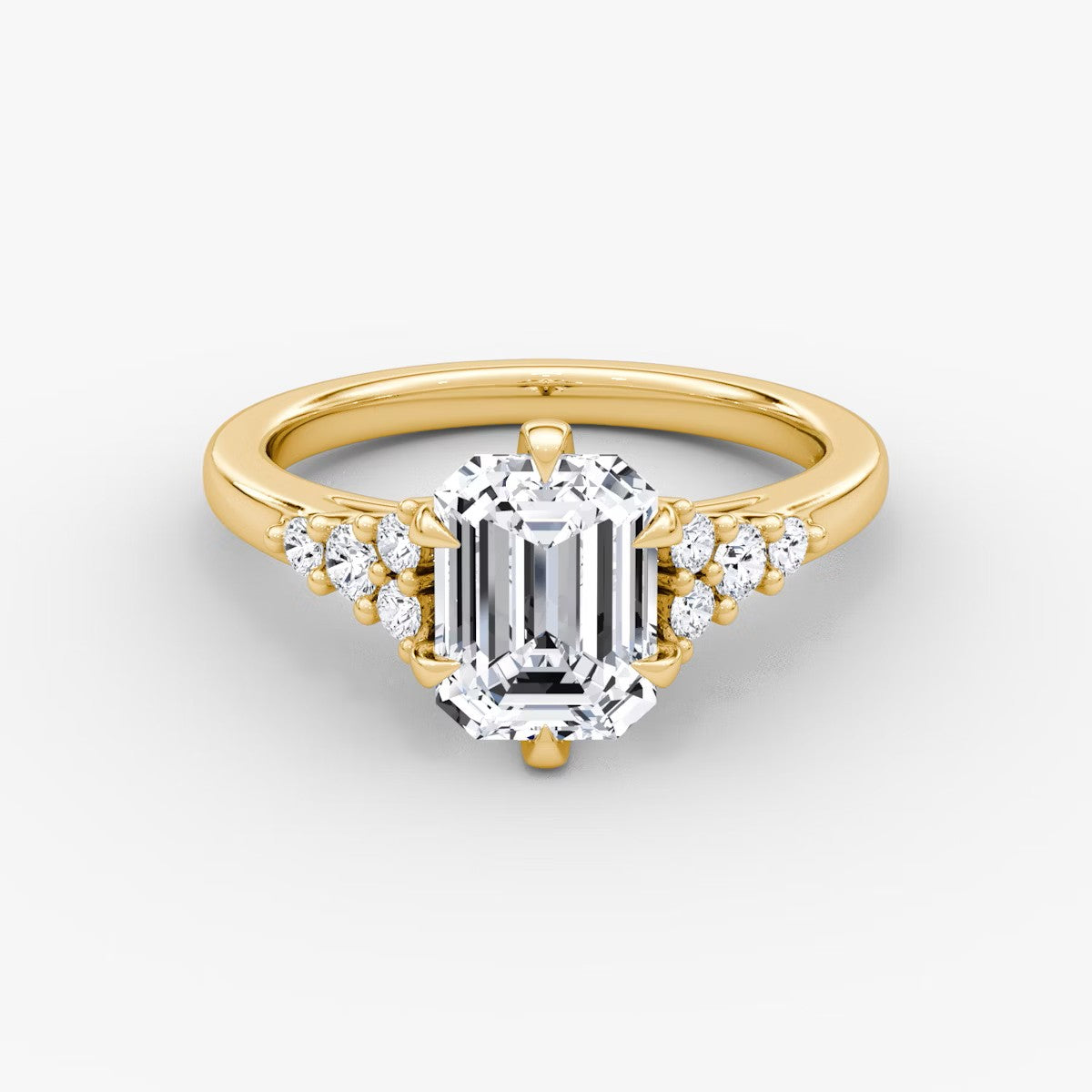 Emerald Cut - Plain Band - Cluster Ring - 14 K Gold