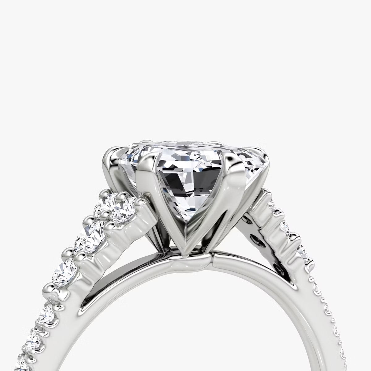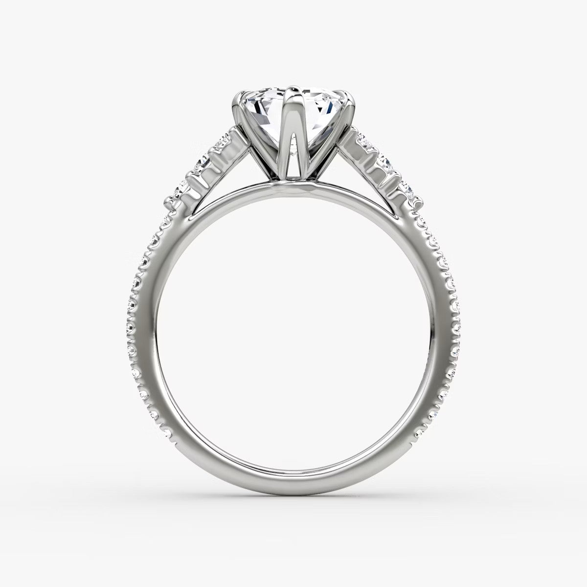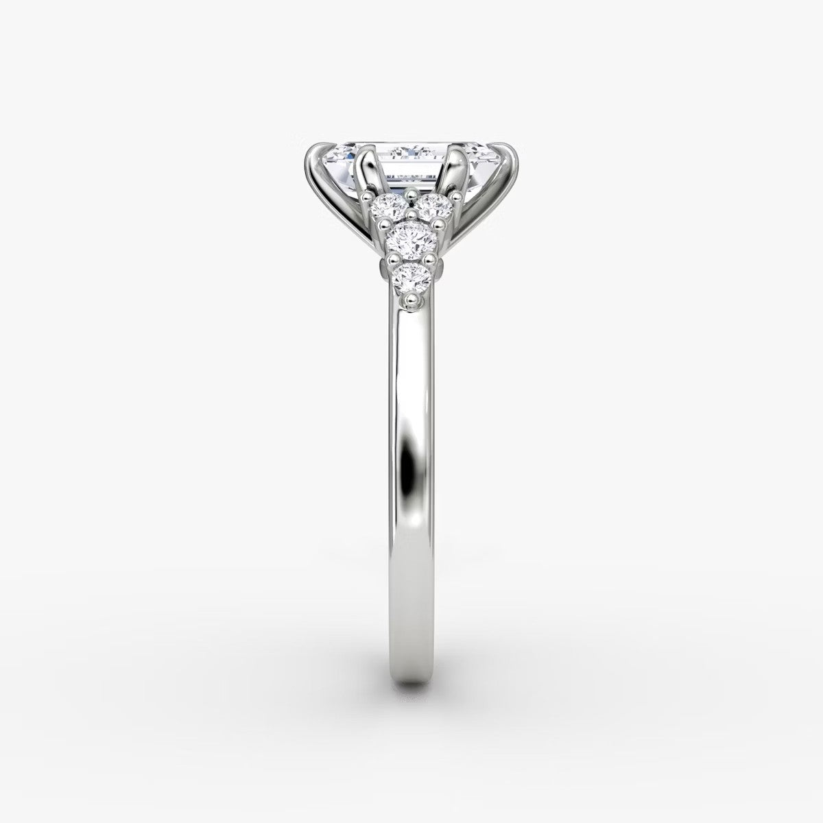 Emerald Cut - Pave Band - 6 Prong Classic Ring - 18 K Gold