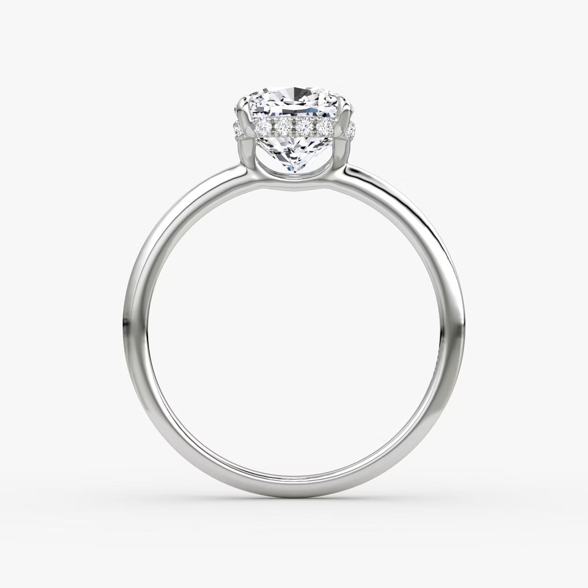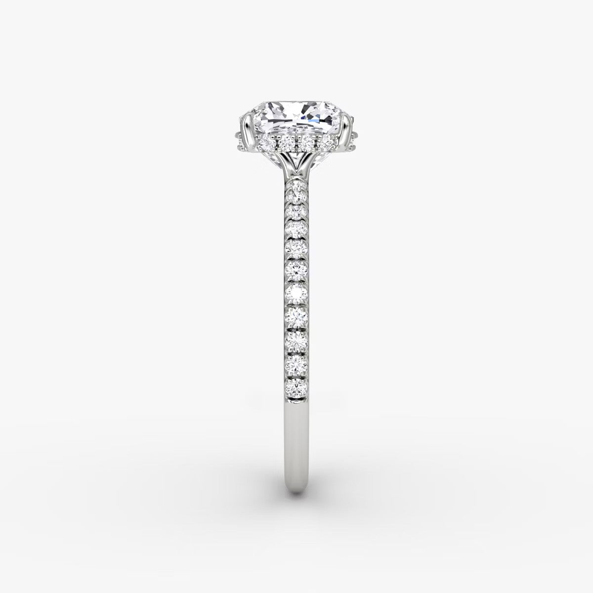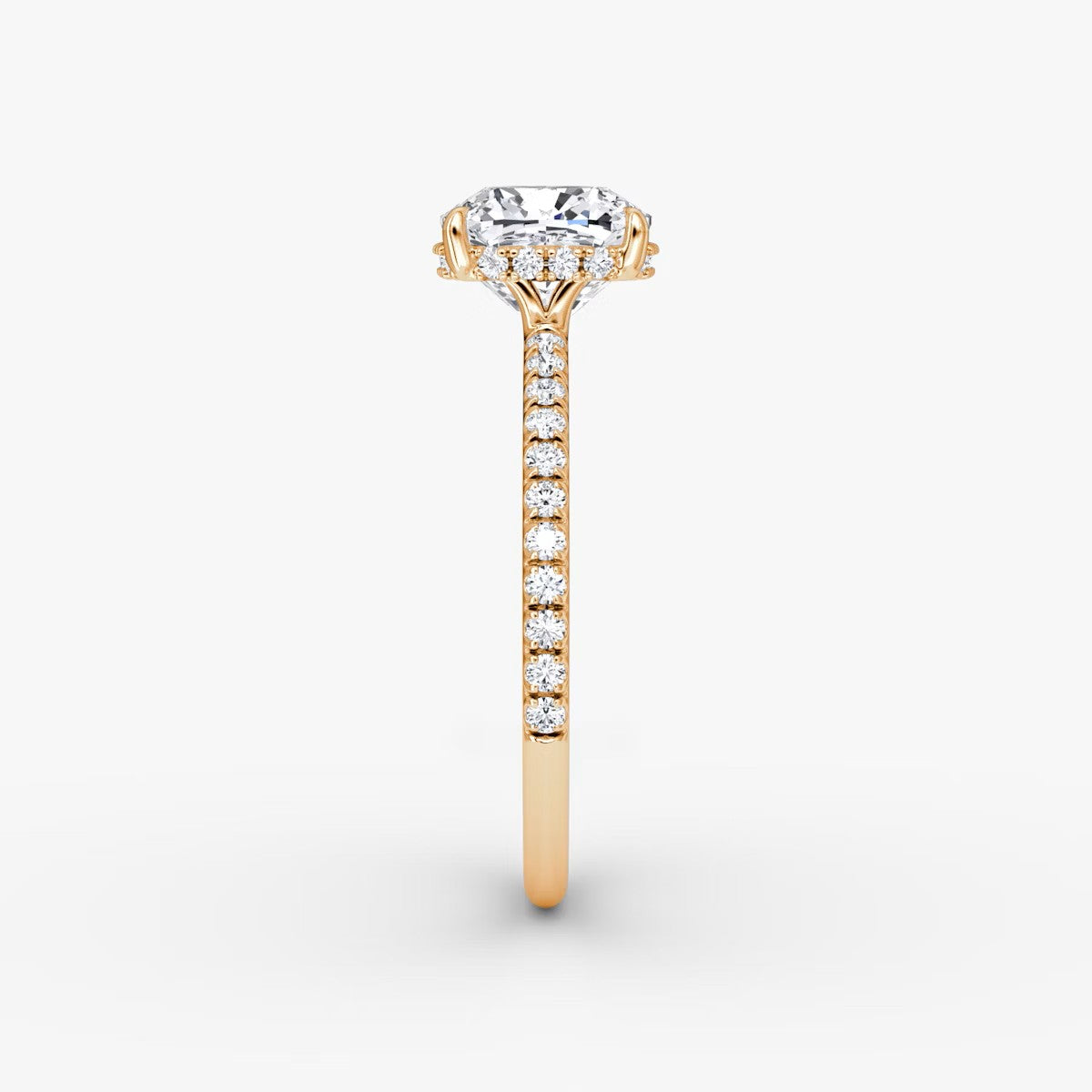 Cushion Cut - Pave Band Hidden Halo - Classic Engagement Ring- 14 K