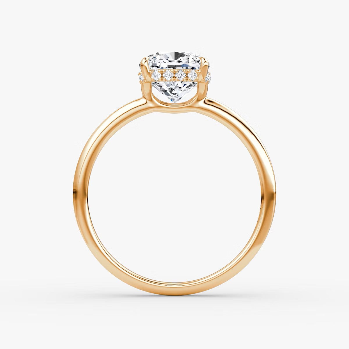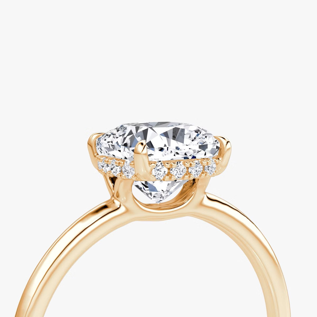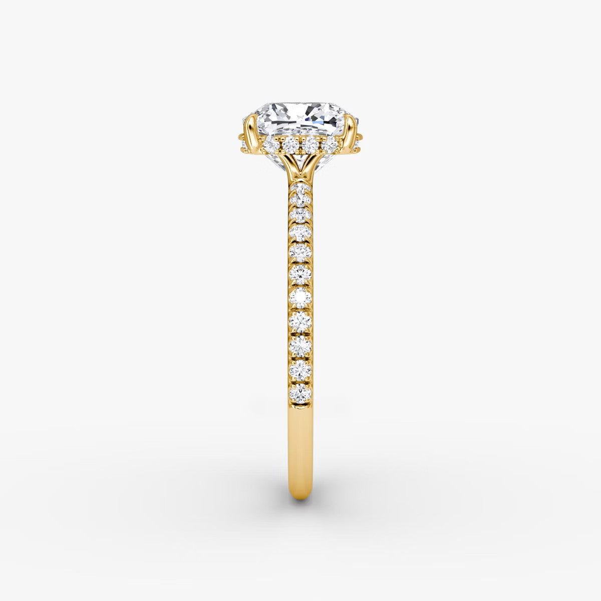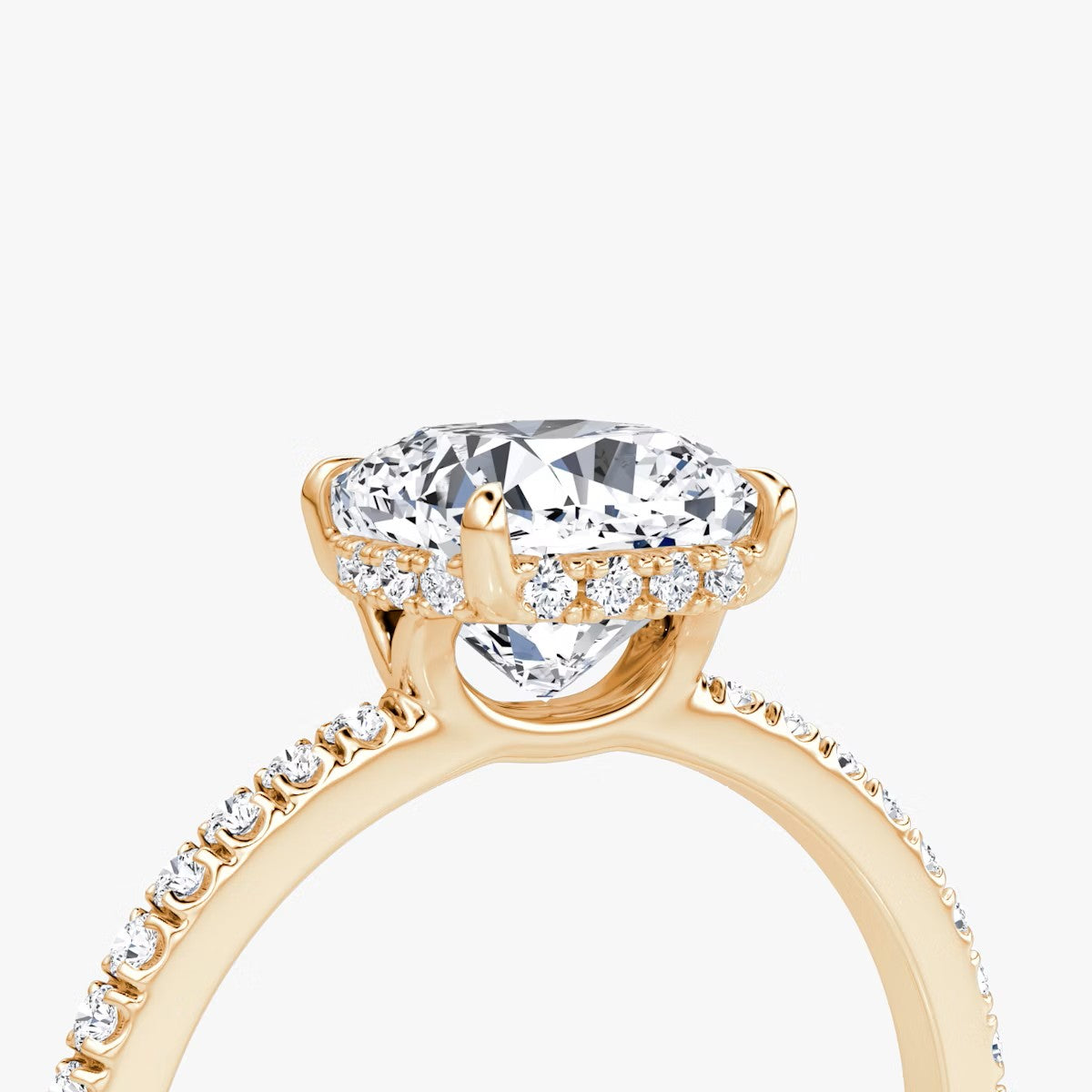 Cushion Cut - Pave Band Hidden Halo - Classic Engagement Ring- 18 K Gold