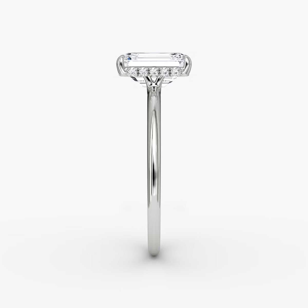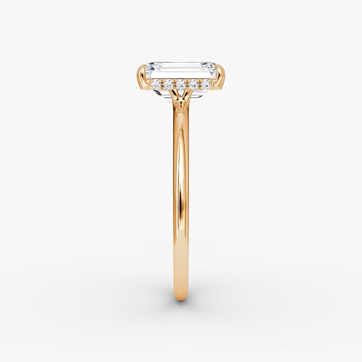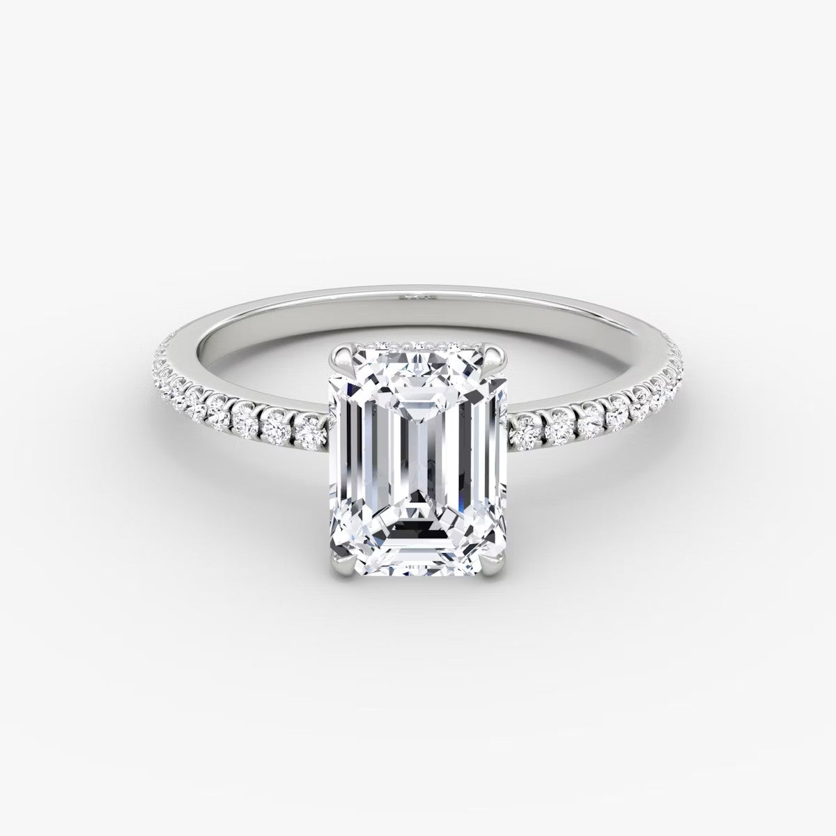 Emerald Cut - Pave Band Hidden Halo - Classic Engagement Ring- 14 K Gold