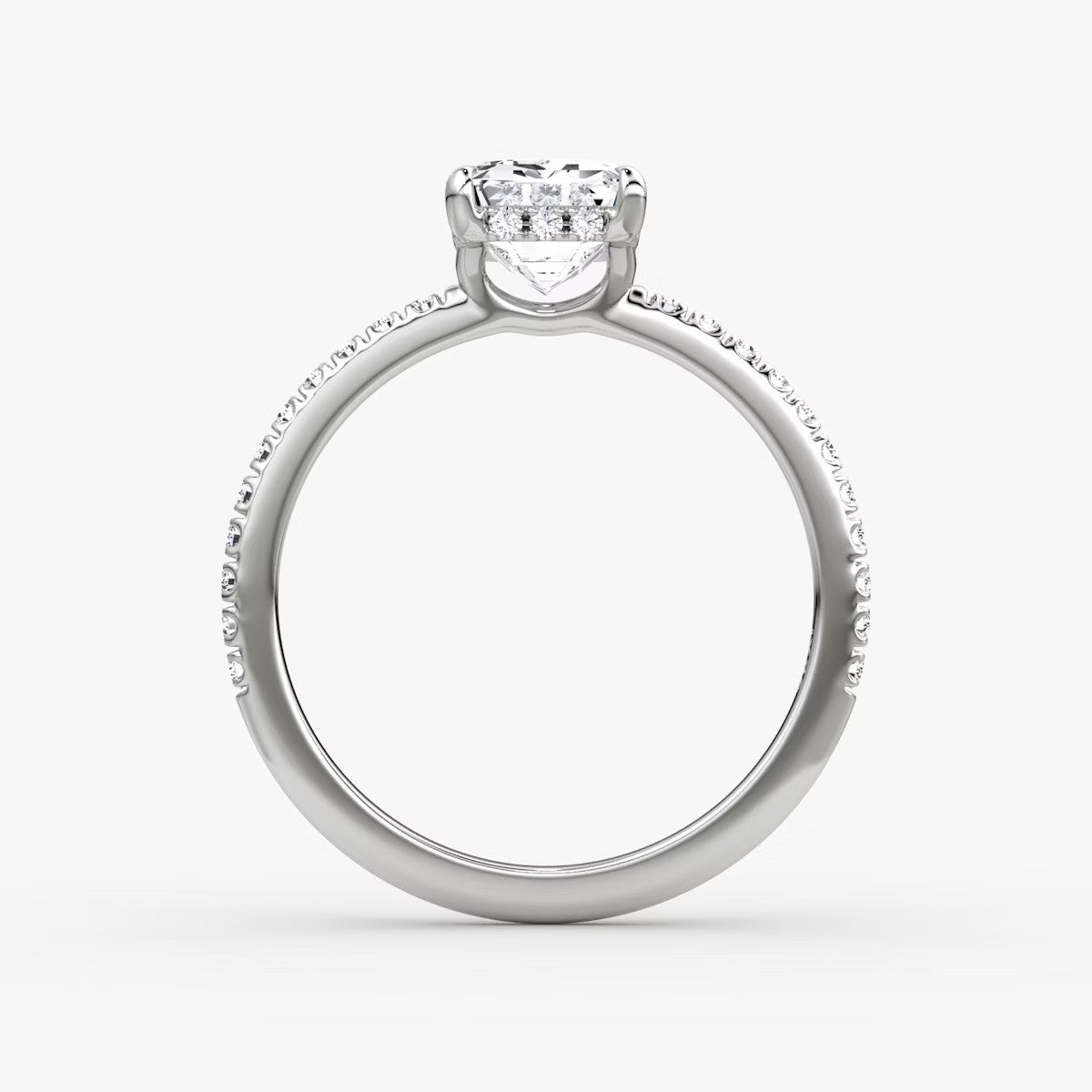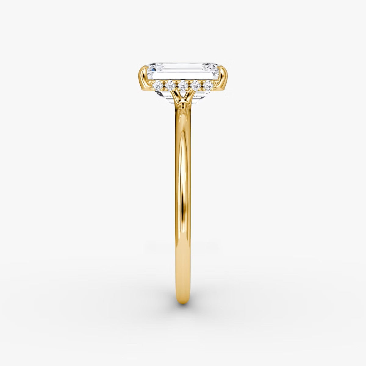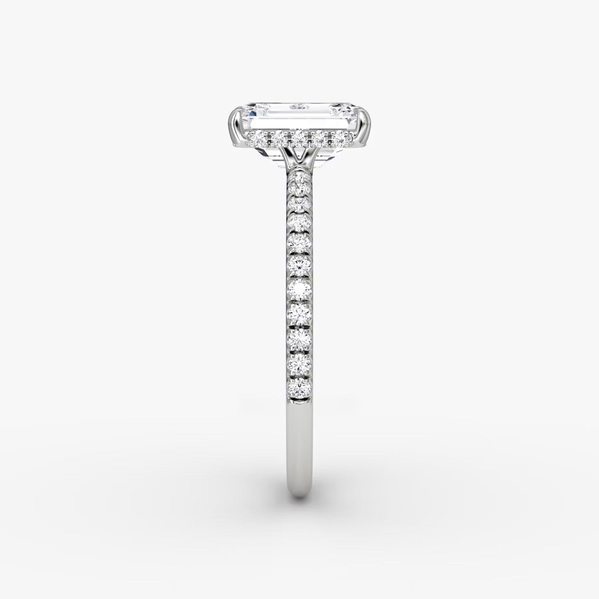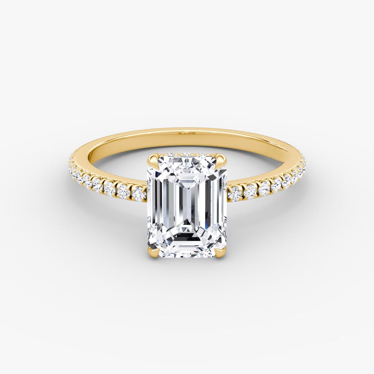 Emerald Cut - Pave Band Hidden Halo - Classic Engagement Ring- 18 K Gold