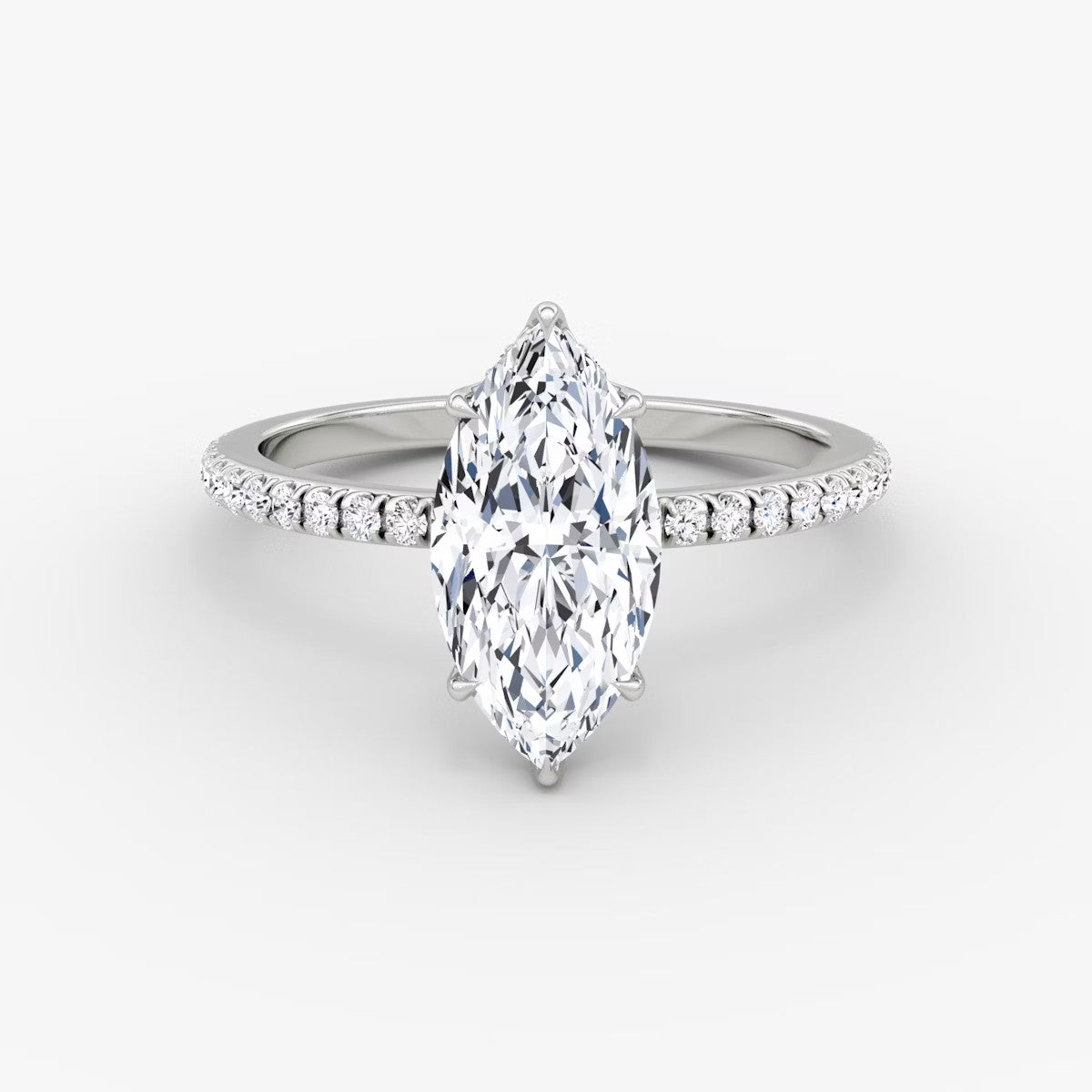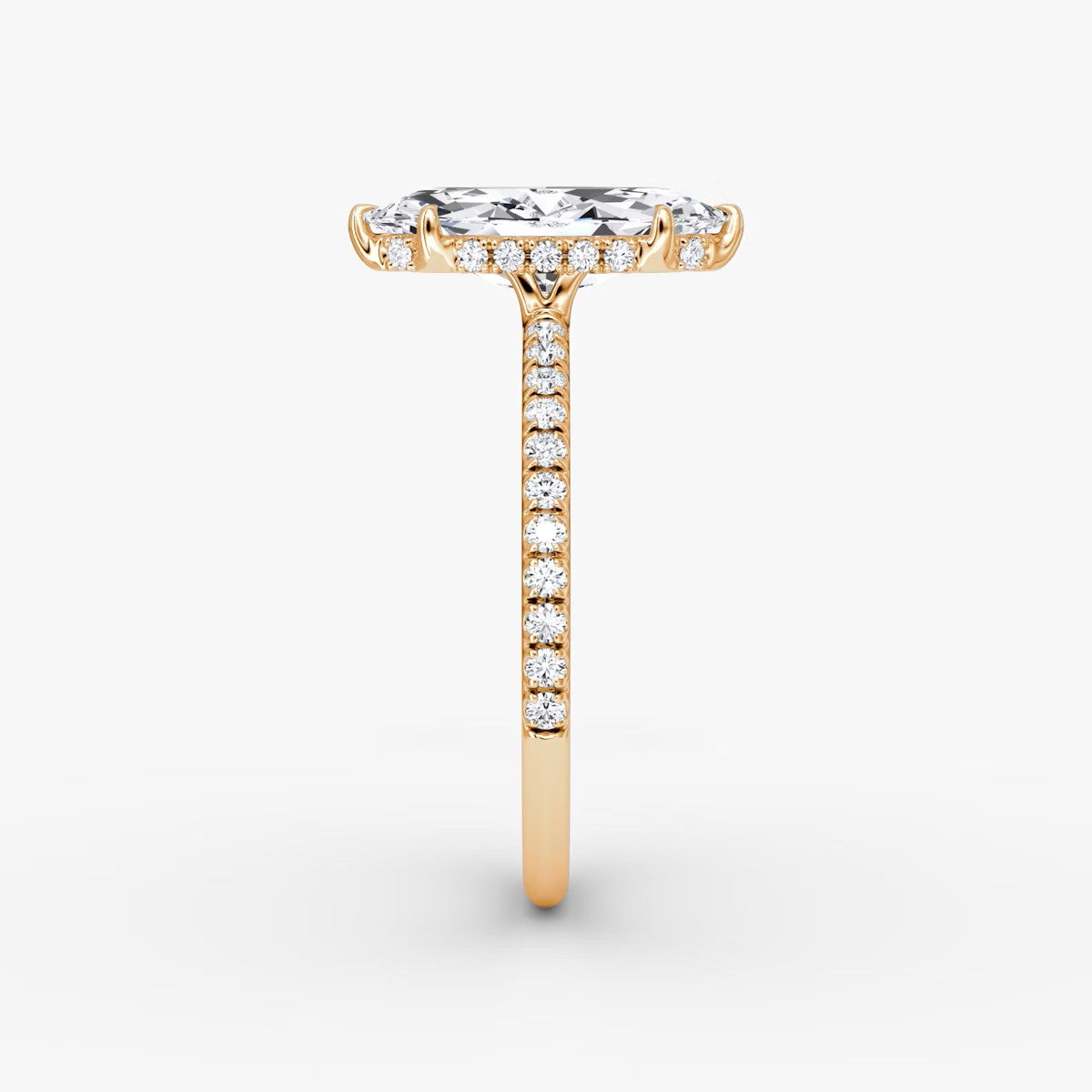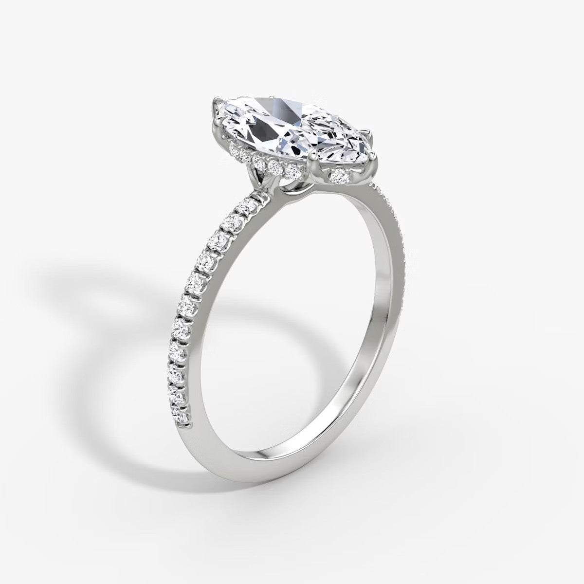 Marquise Cut - Pave Band Hidden Halo - Classic Engagement Ring- 14 K Gold