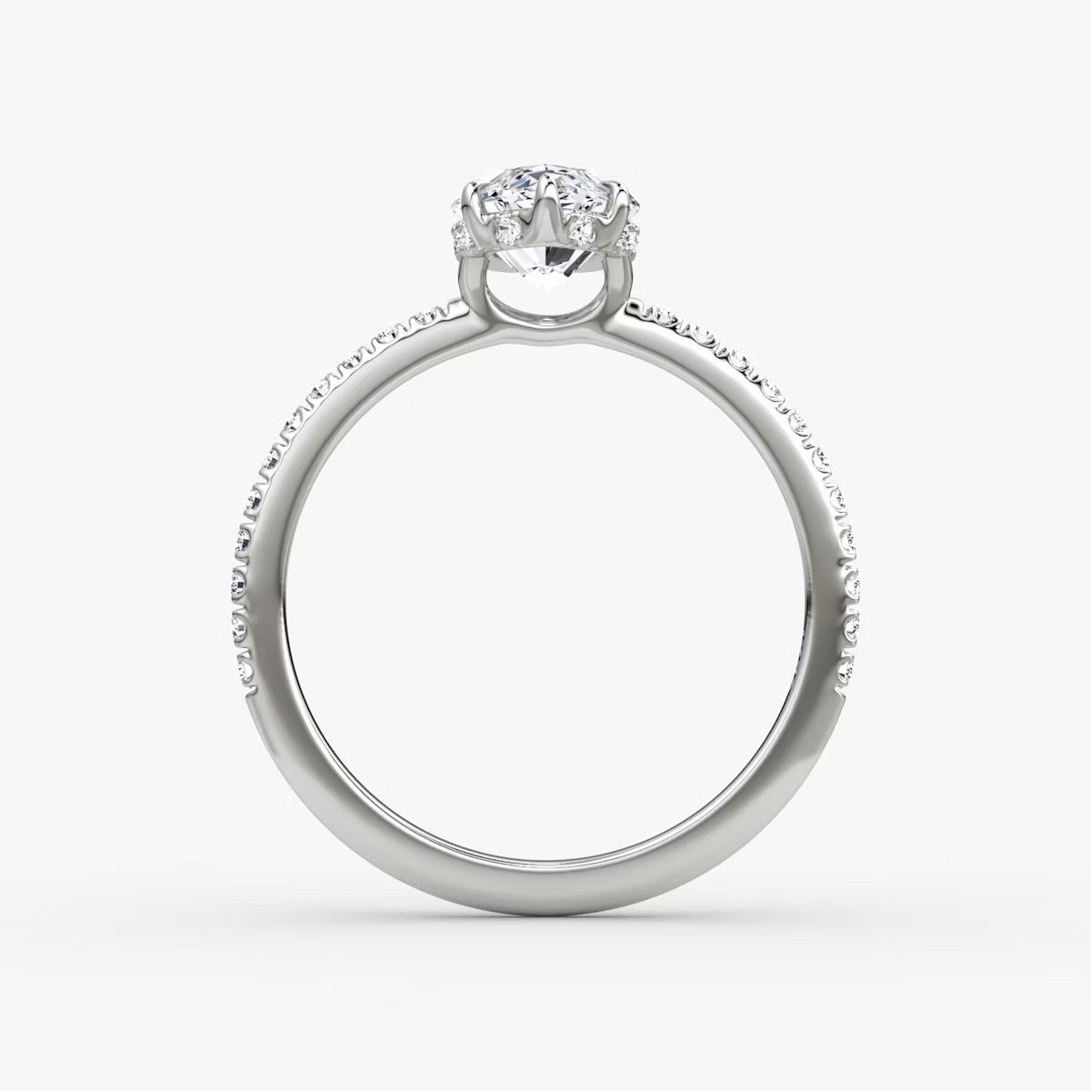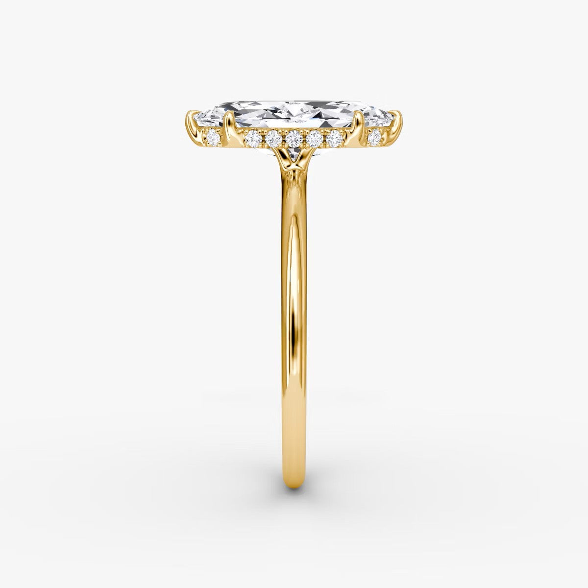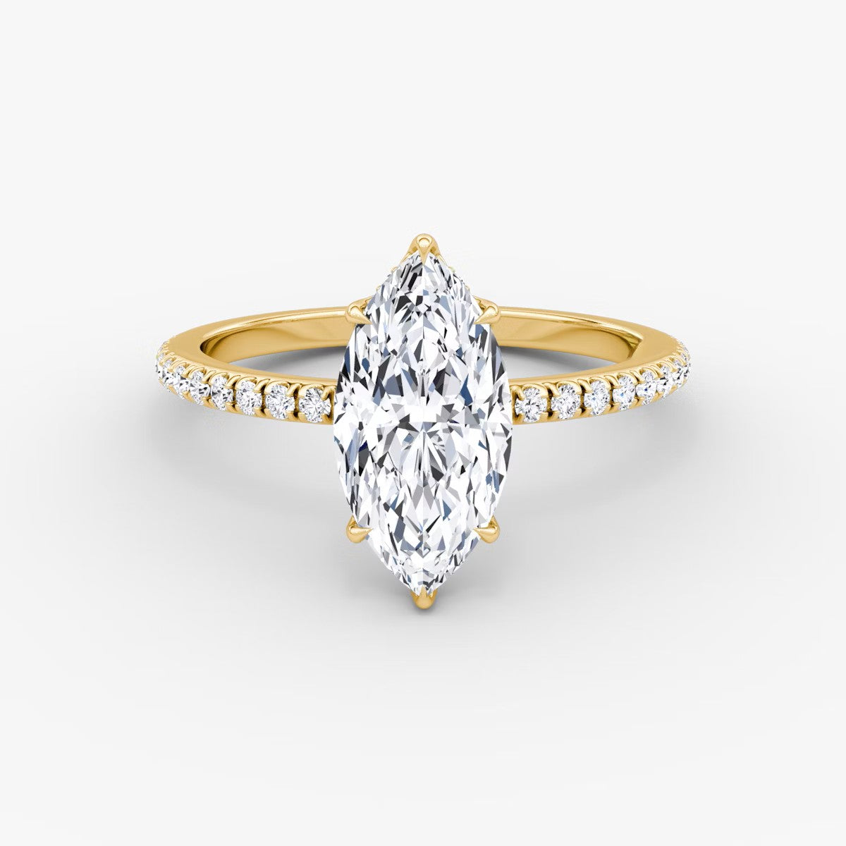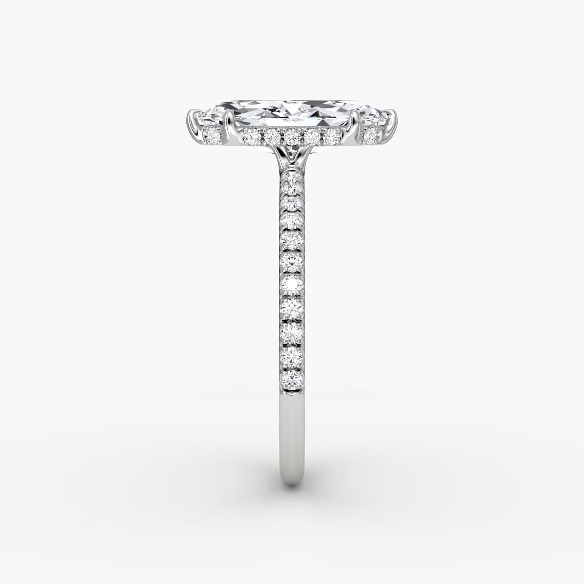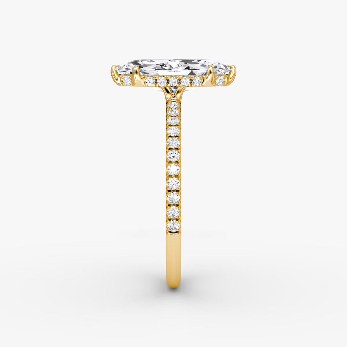 Marquise Cut - Pave Band Hidden Halo - Classic Engagement Ring- 18 K Gold
