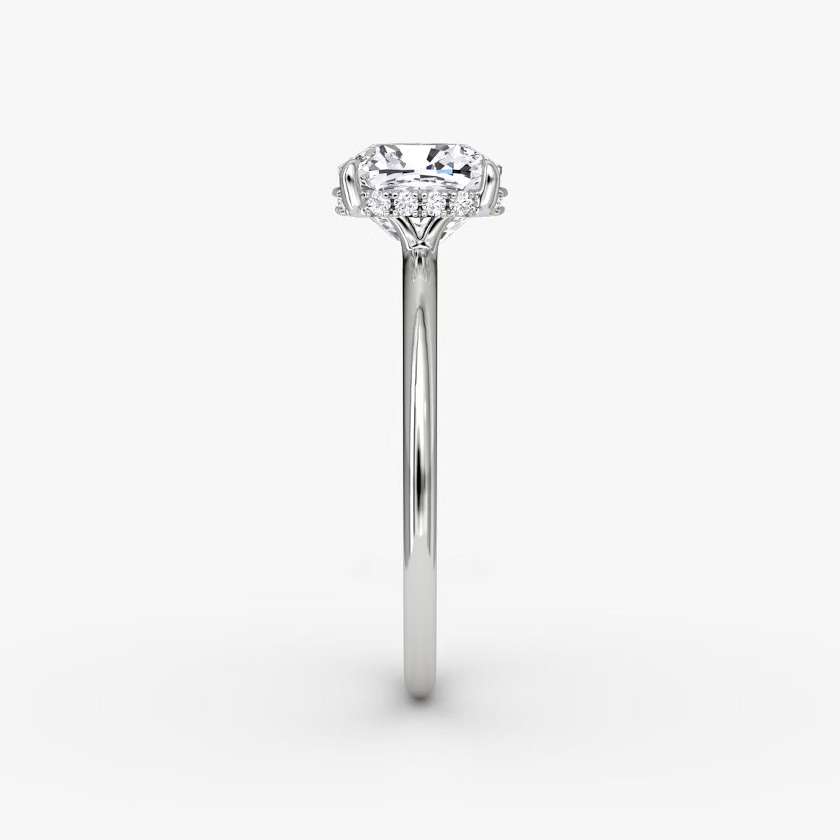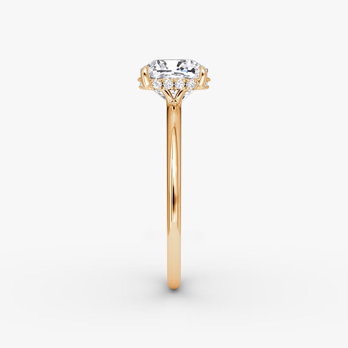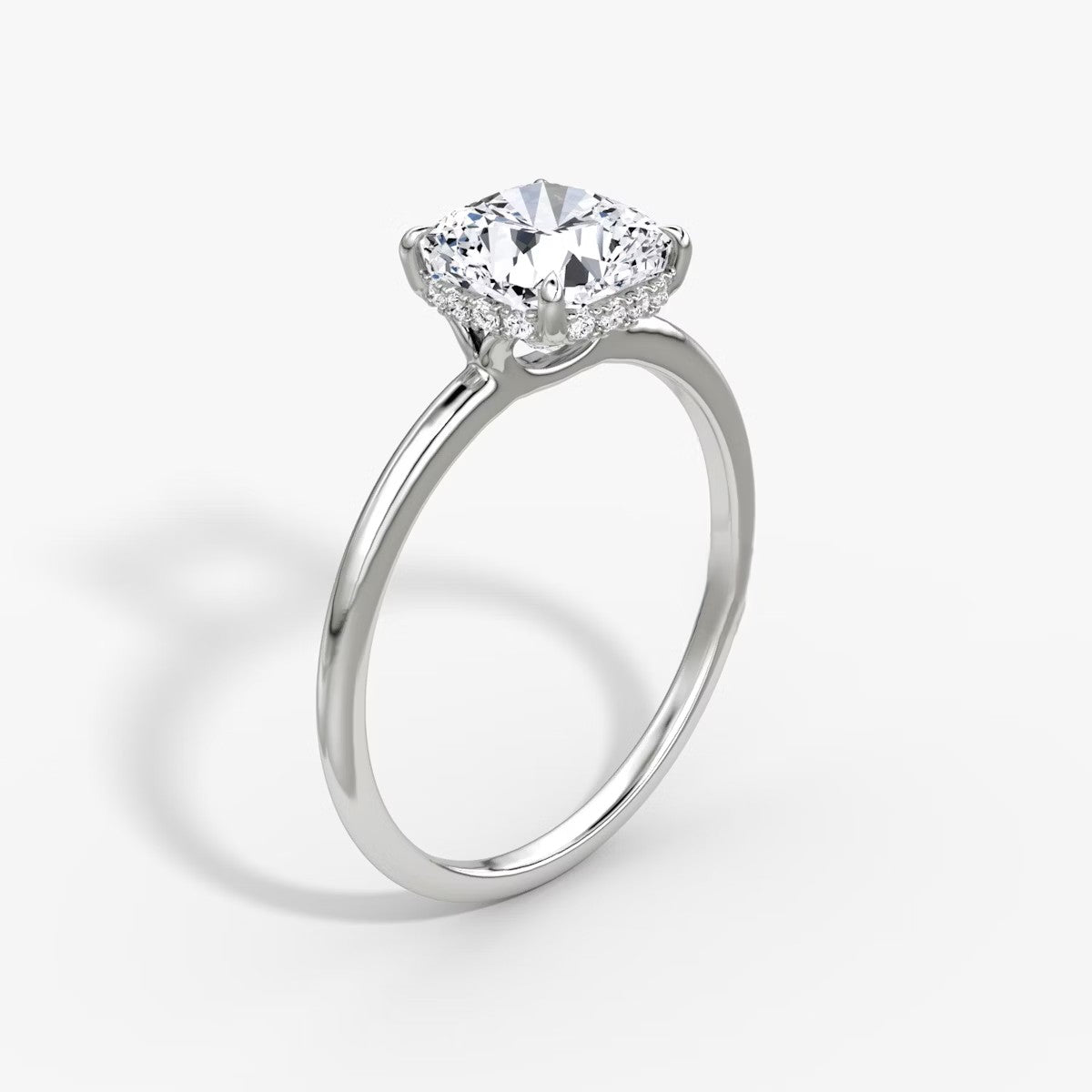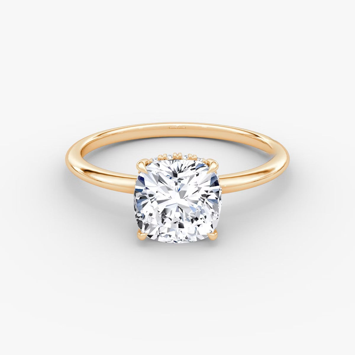 Cushion Cut - Plain Band Hidden Halo - Classic Engagement Ring- 14 K Gold