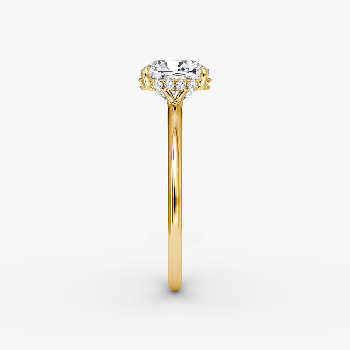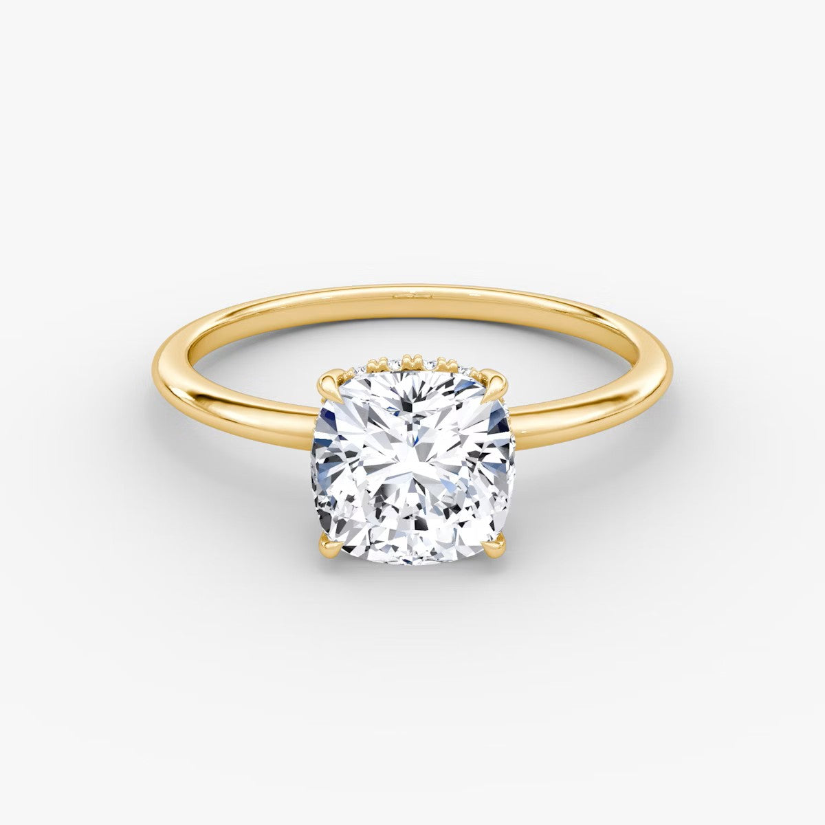 Cushion Cut - Plain Band Hidden Halo - Classic Engagement Ring- 18 K Gold