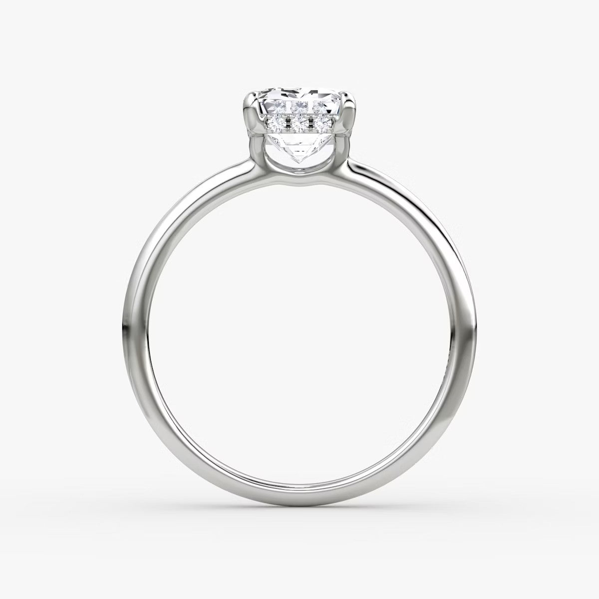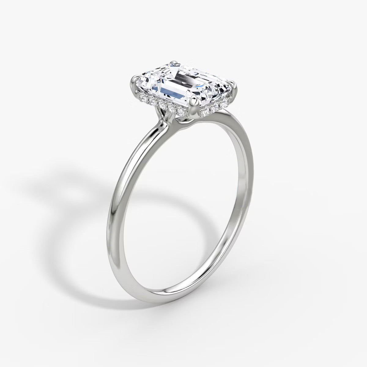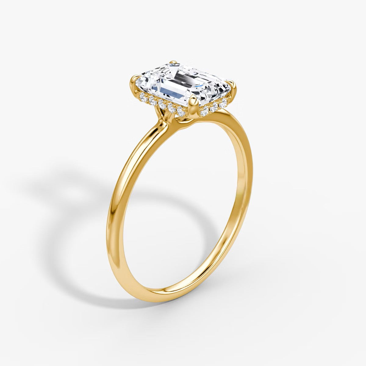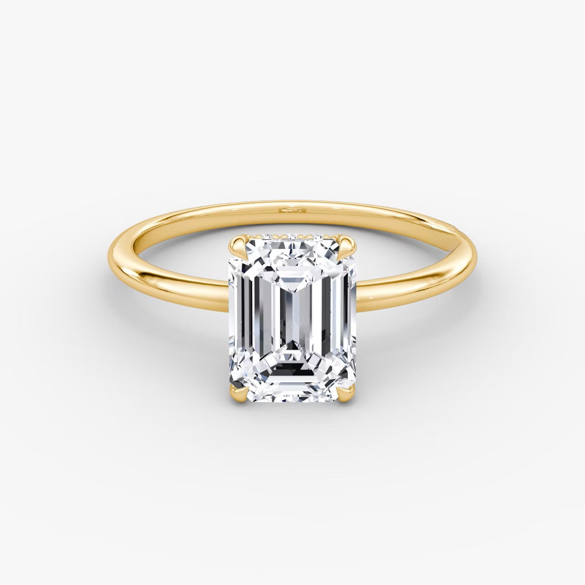 Emerald Cut - Plain Band Hidden Halo - Classic Engagement Ring- 14 K Gold