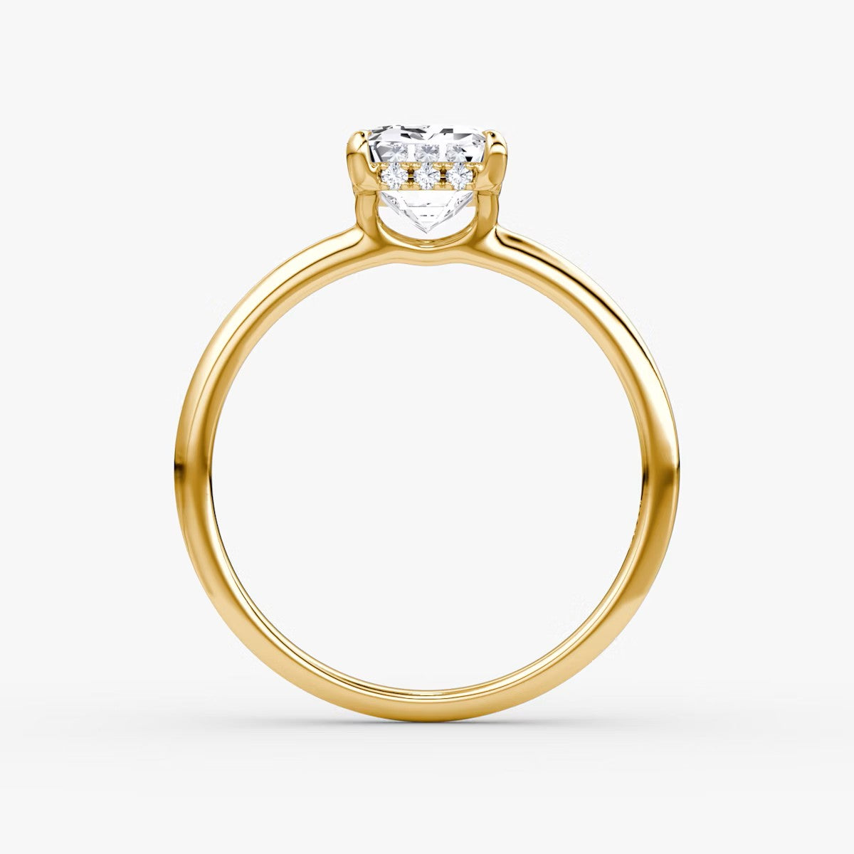Emerald Cut - Plain Band Hidden Halo - Classic Engagement Ring- 18 K Gold