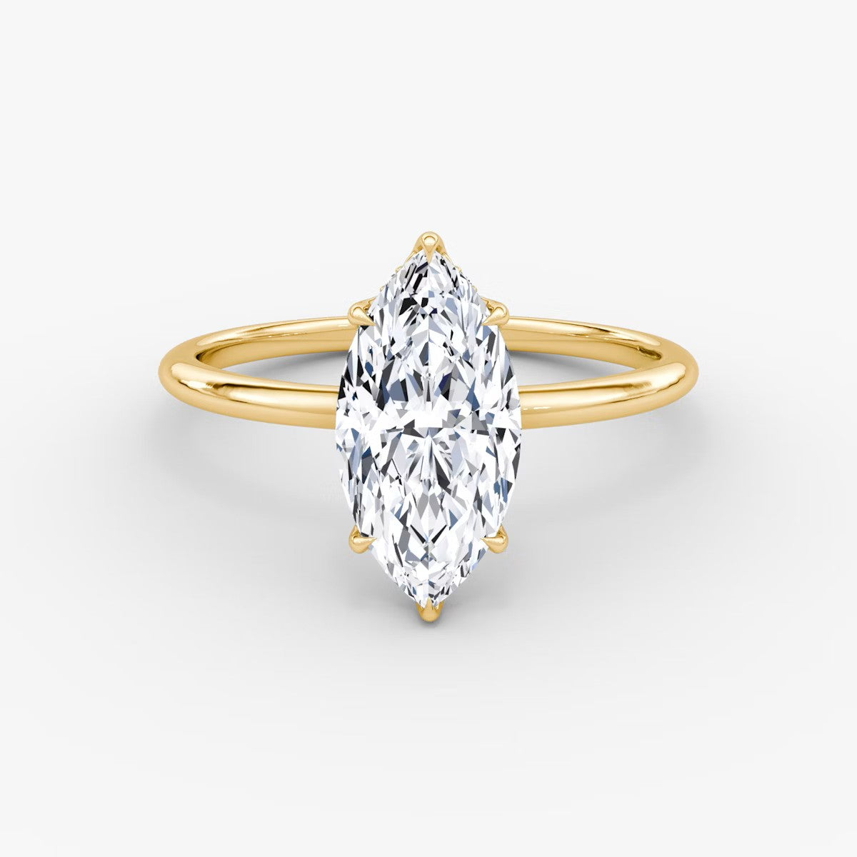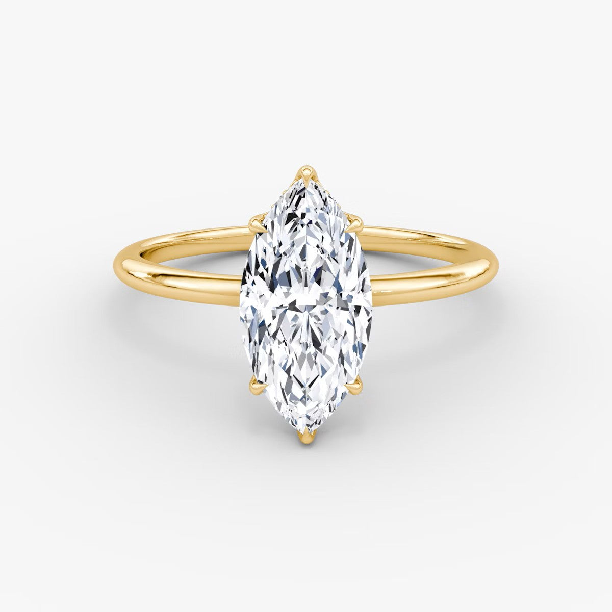Marquise Cut - Plain Band Hidden Halo - Classic Engagement Ring- 14 K Gold