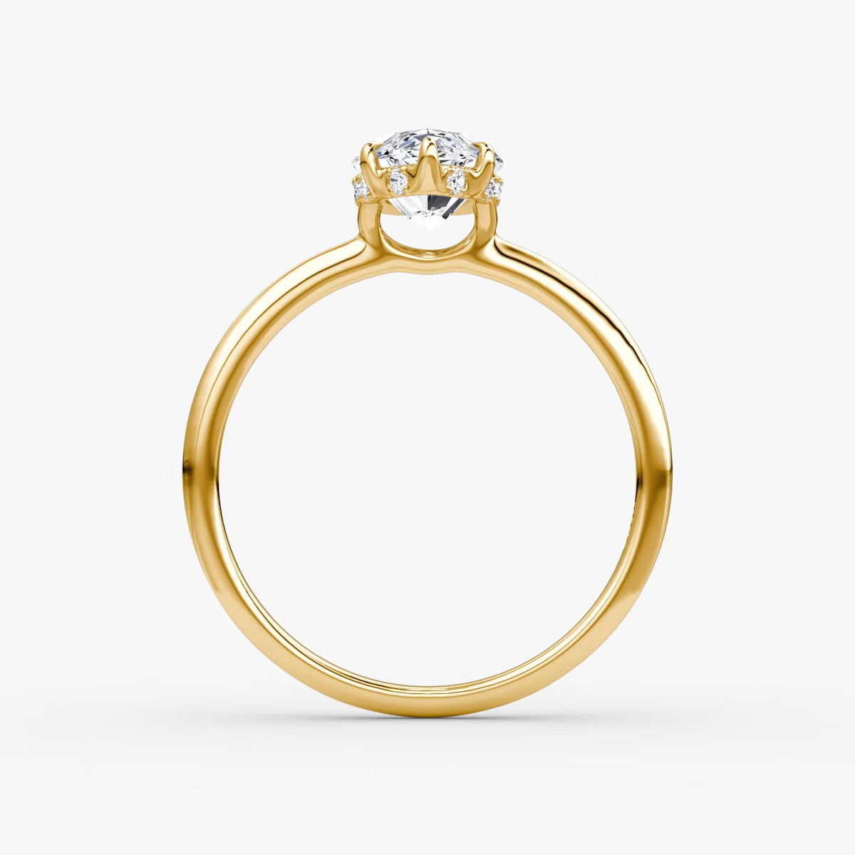 Marquise Cut - Plain Band Hidden Halo - Classic Engagement Ring- 18 K Gold
