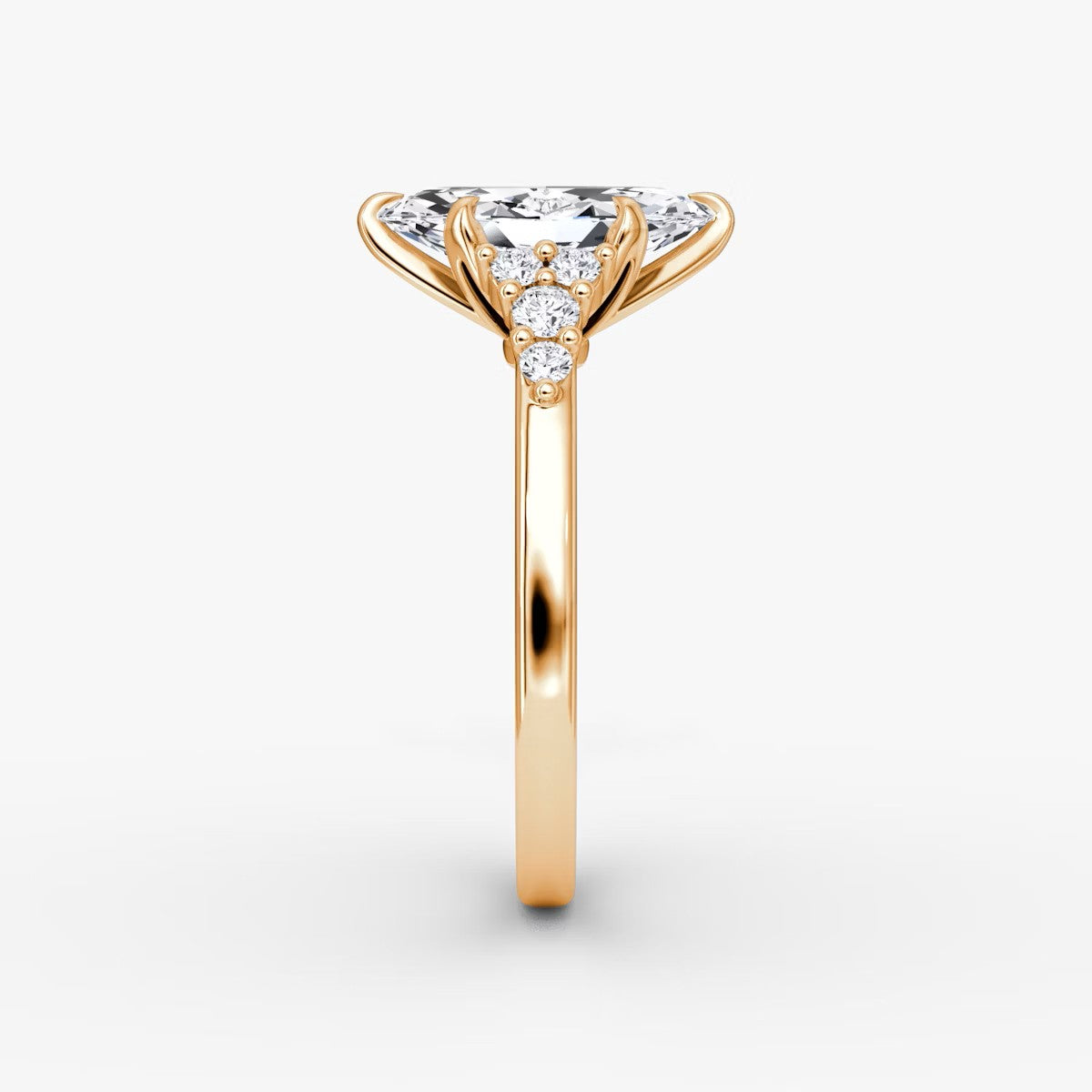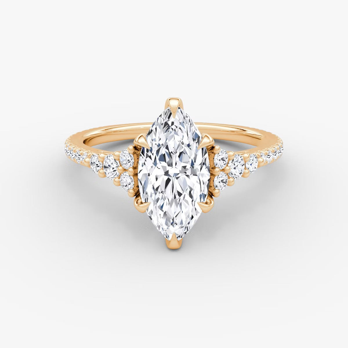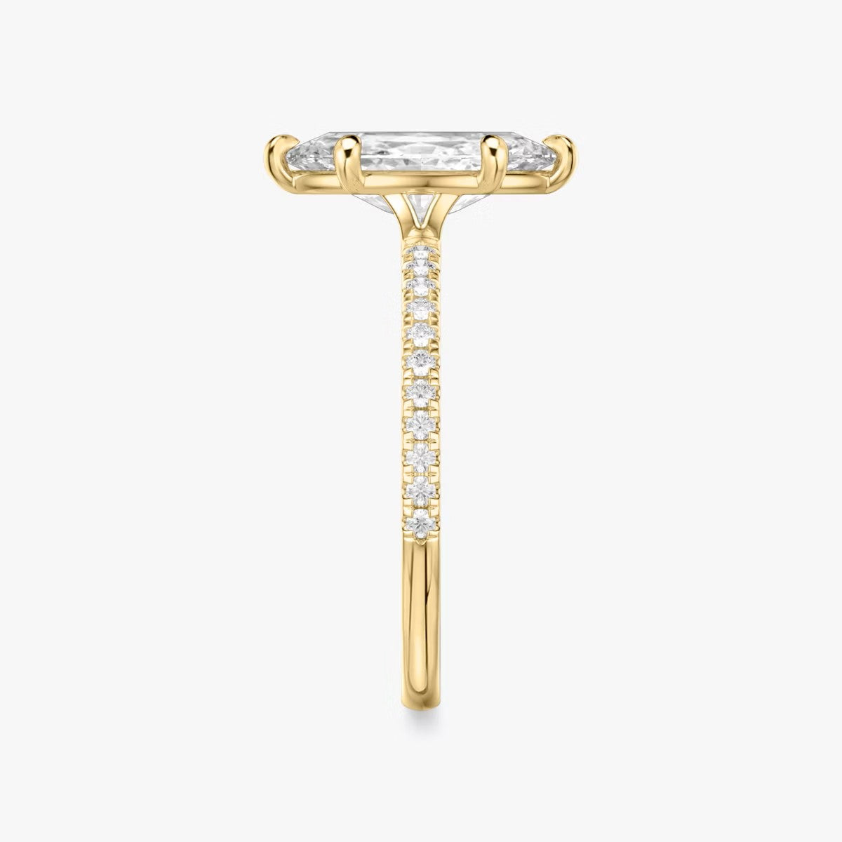 Marquise Cut - Pave Band - 6 Prong Classic Ring - 14 K Gold