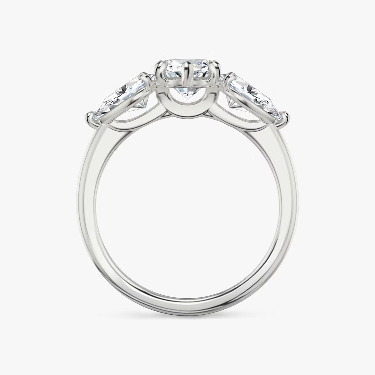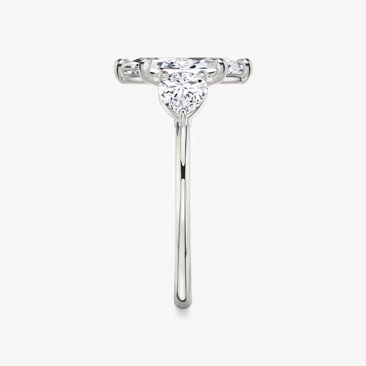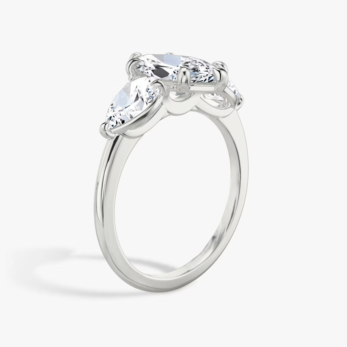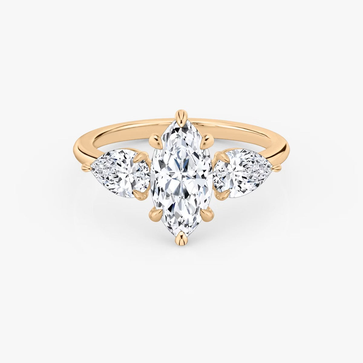 Marquise Cut - Plain Band - Three Stone Ring- 0.5 Ct Side Stone each - 14 K Gold
