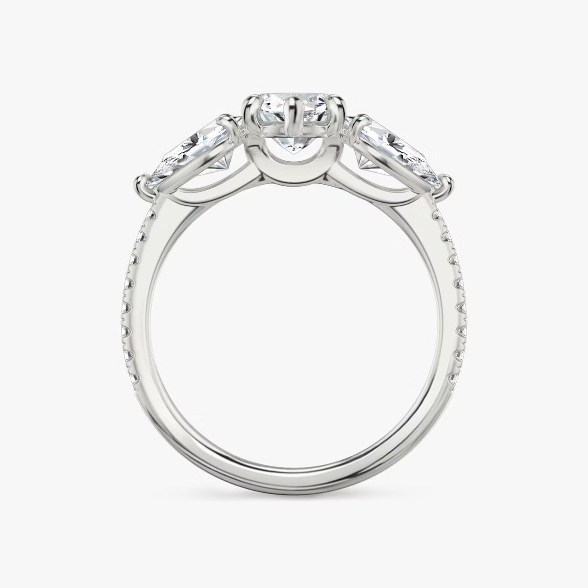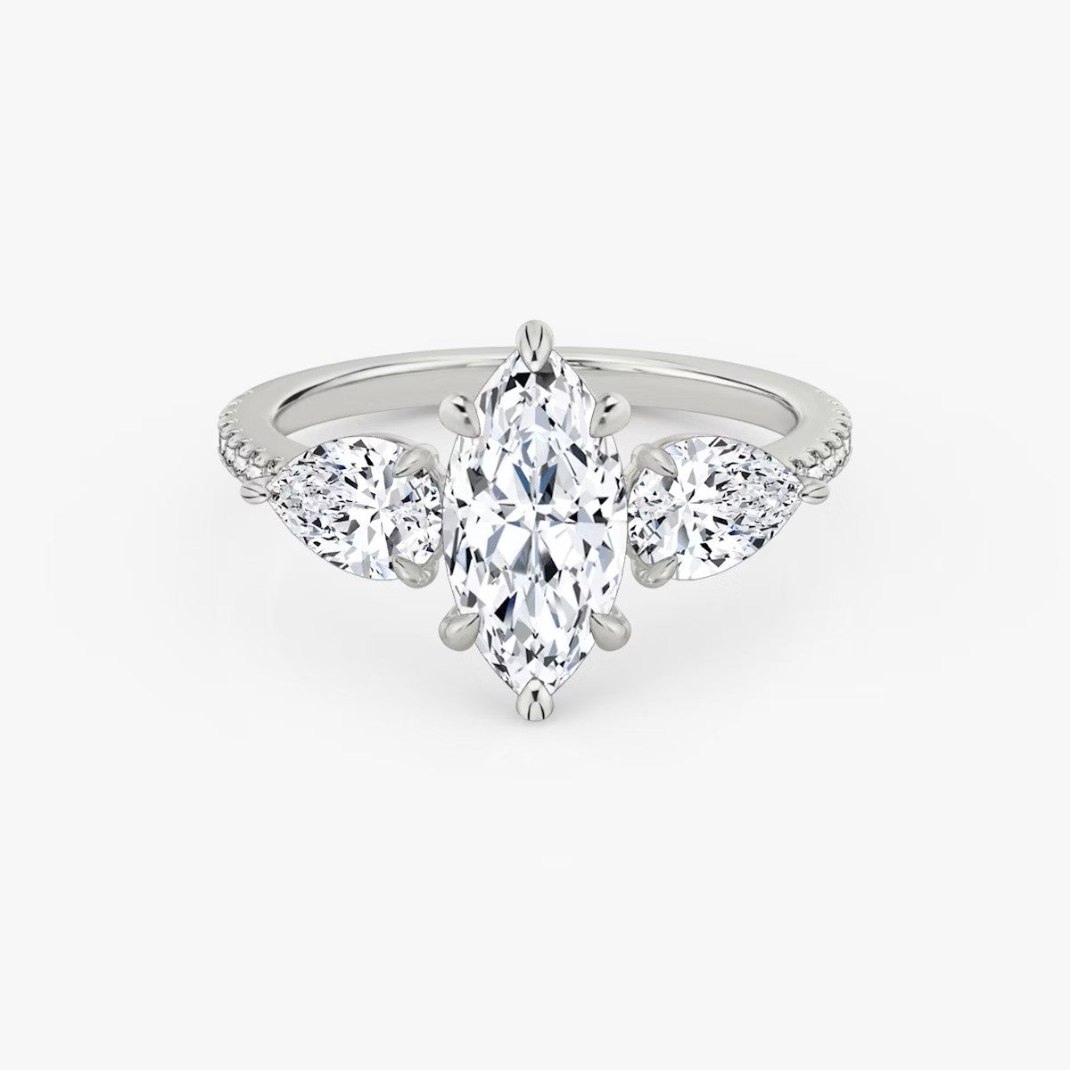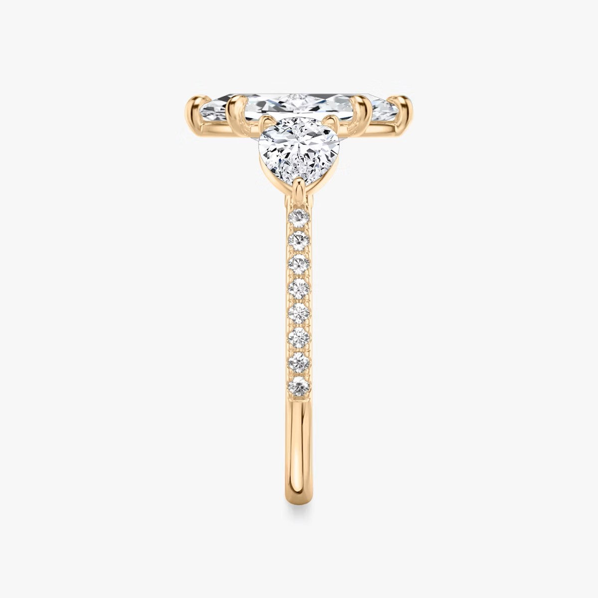 Marquise Cut - Pave Band - Three Stone Ring - 0.25 Ct Side Stone each - 18 K Gold