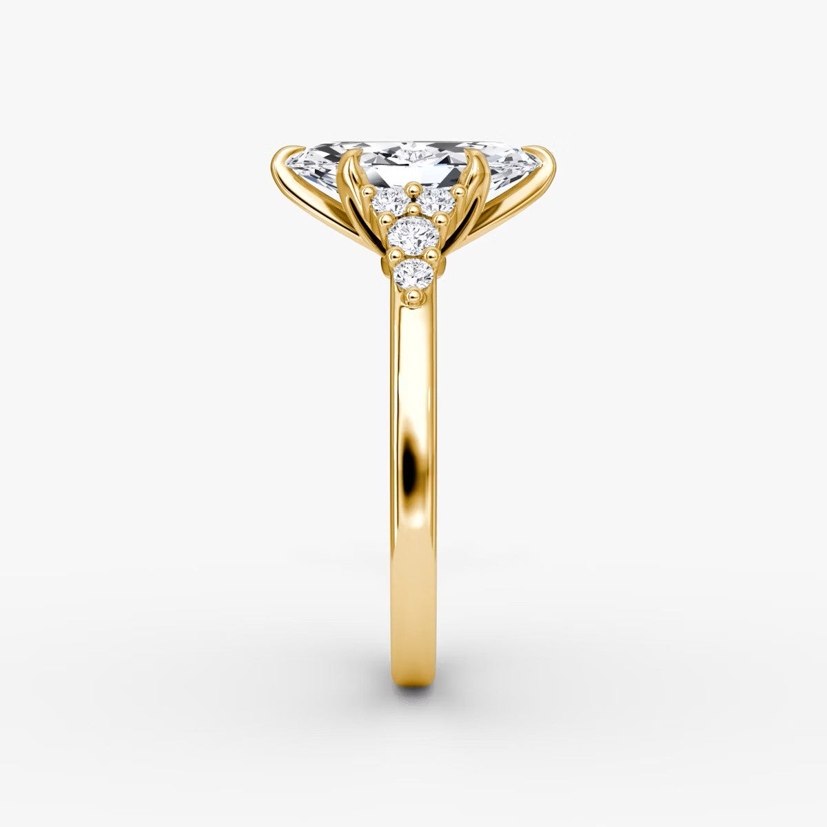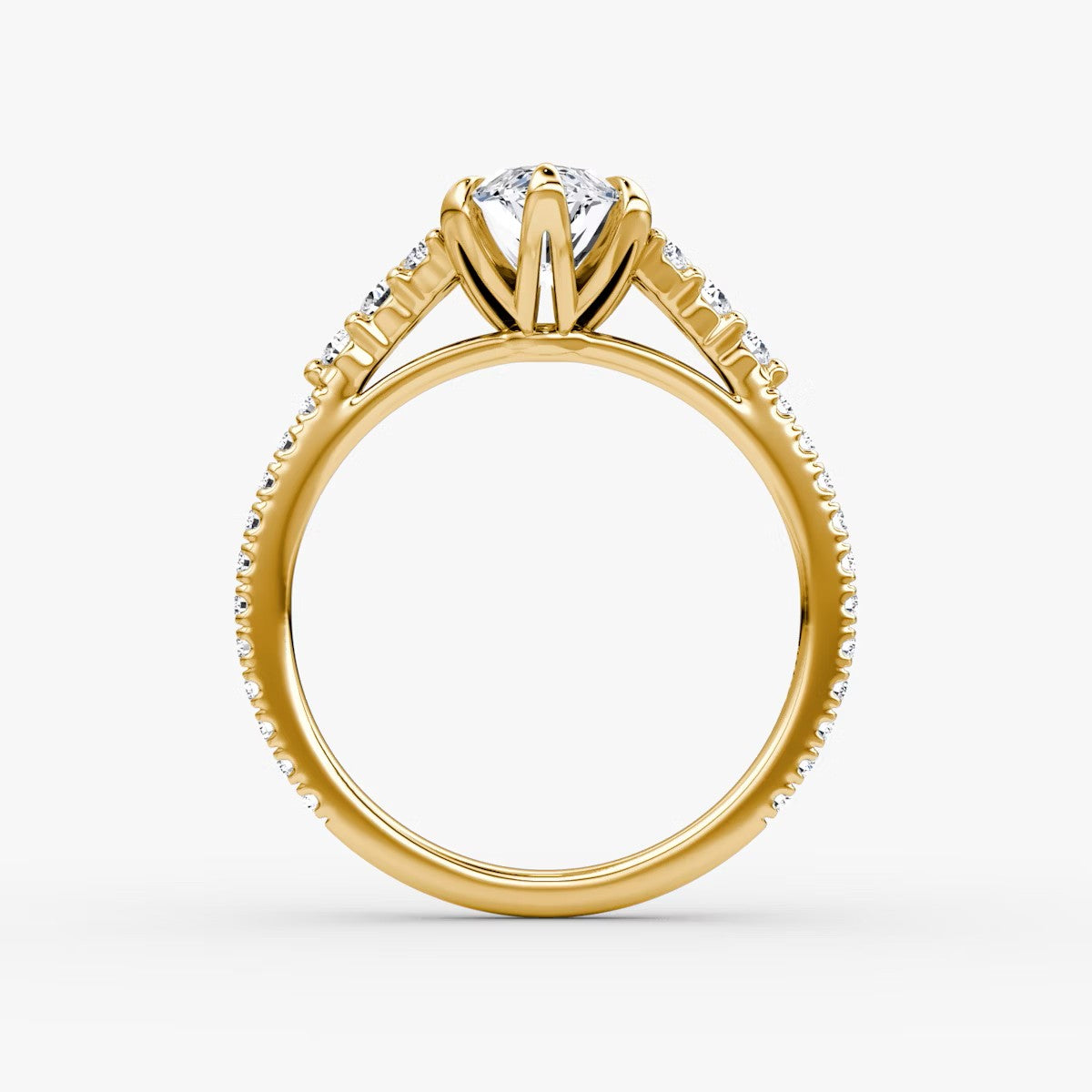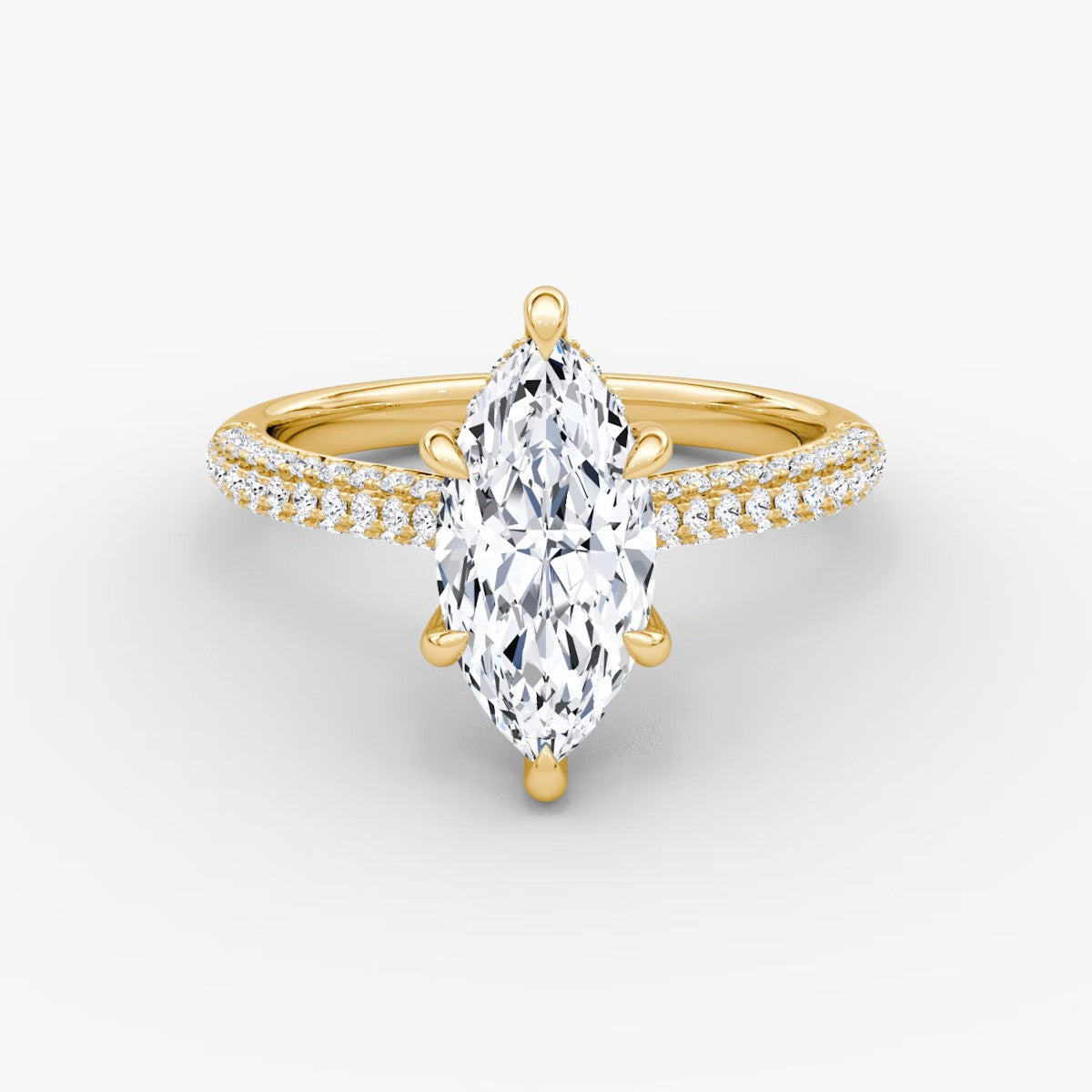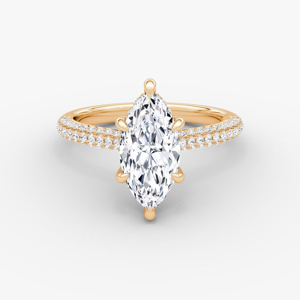 Marquise Cut - Pave Band - 6 Prong Classic Ring - 18 K Gold