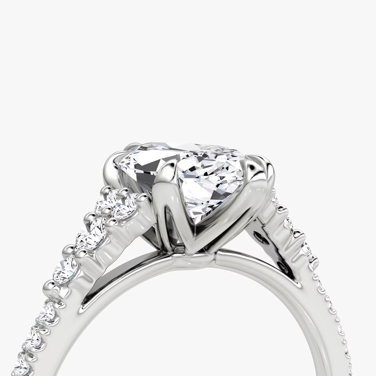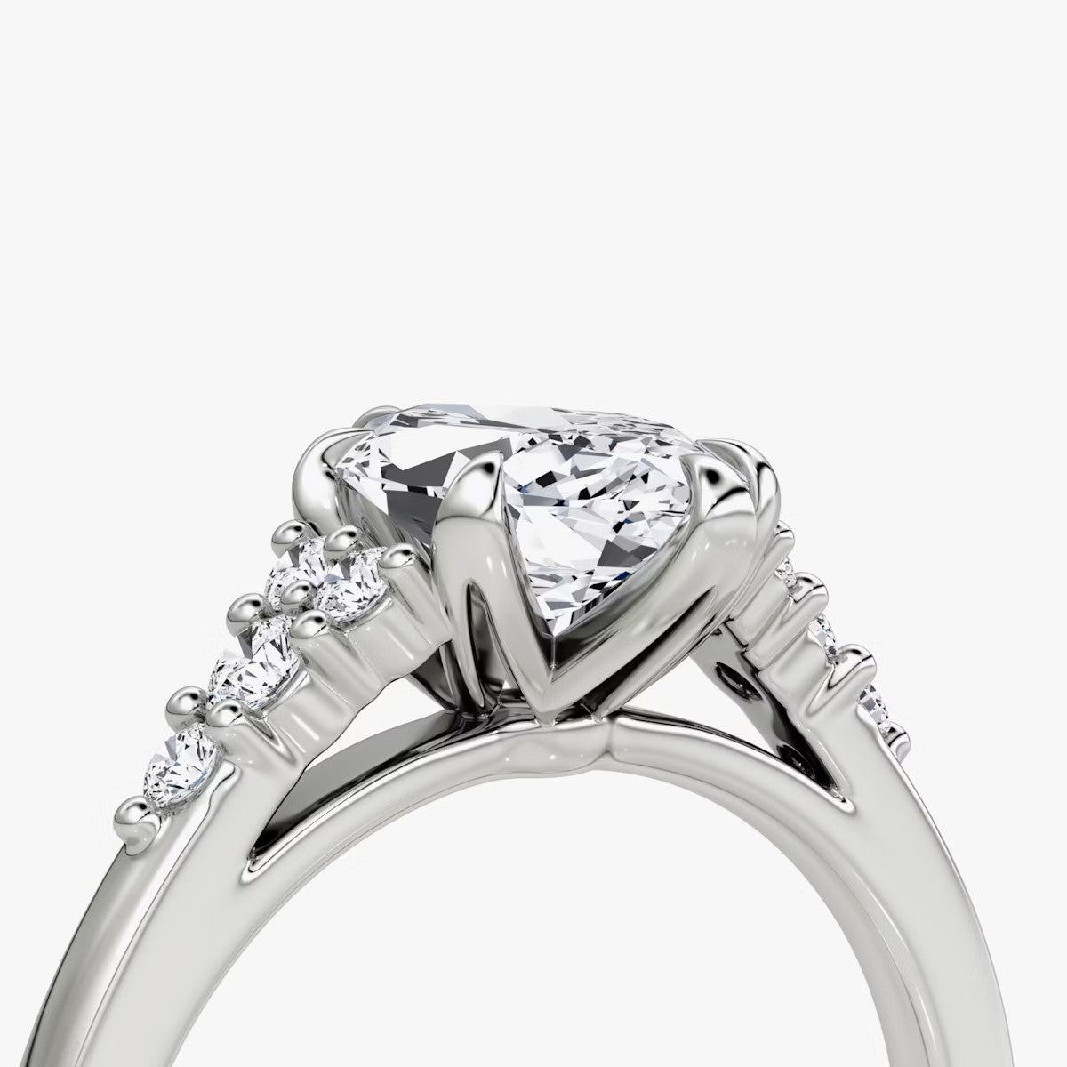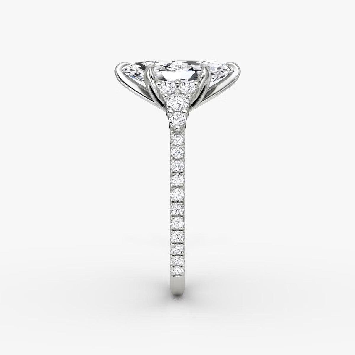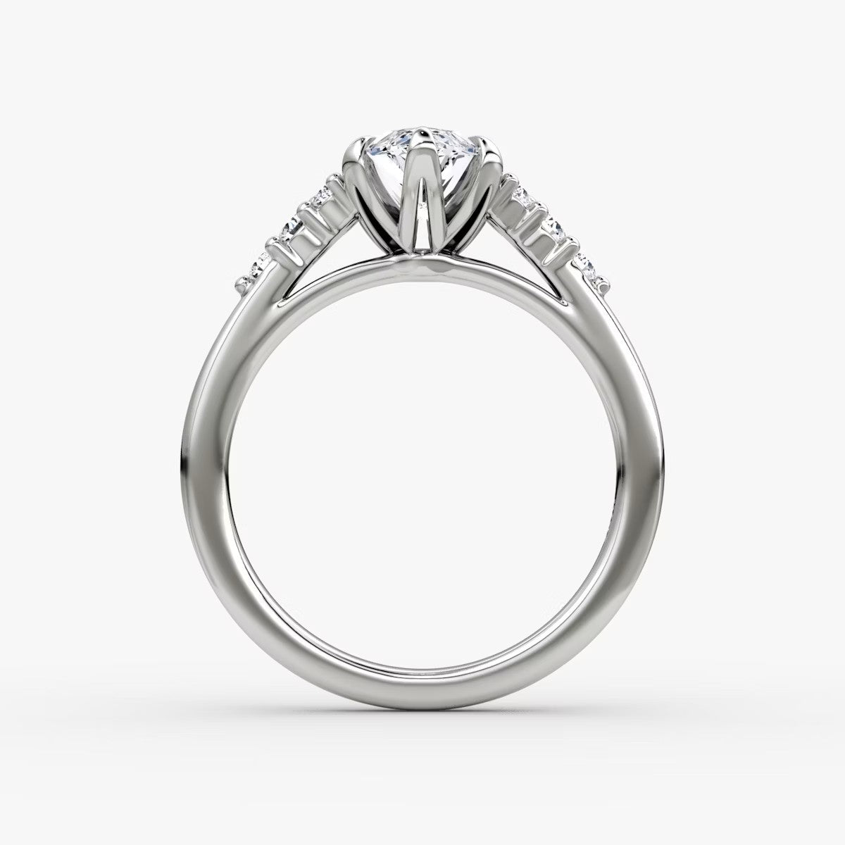 Marquise Cut - Pave Band - 6 Prong Classic Ring - 18 K Gold