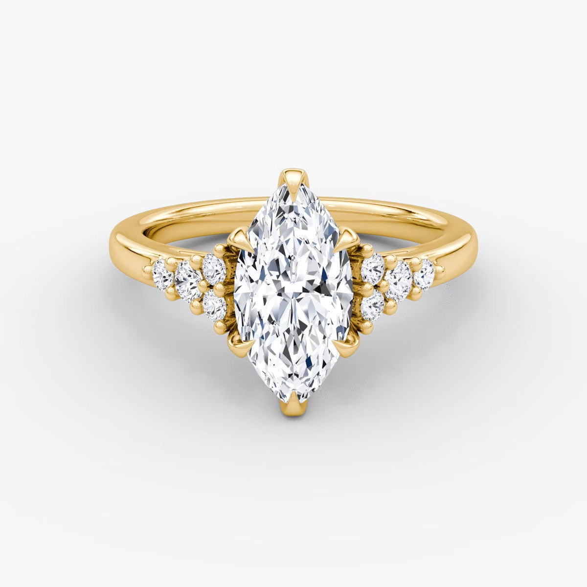 Marquise Cut - Plain Band - Cluster Ring - 14 K Gold