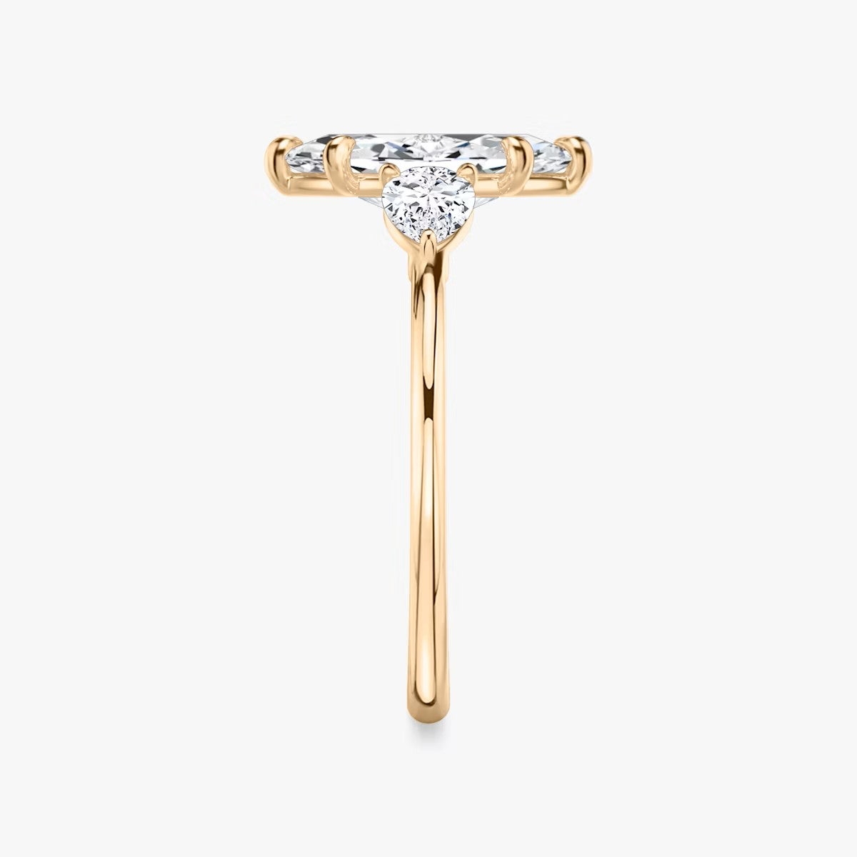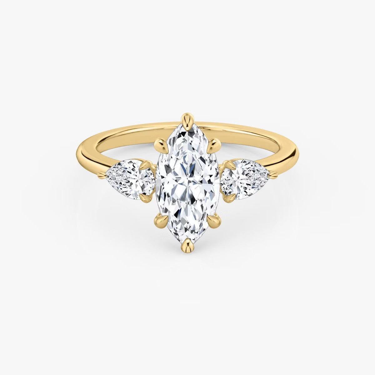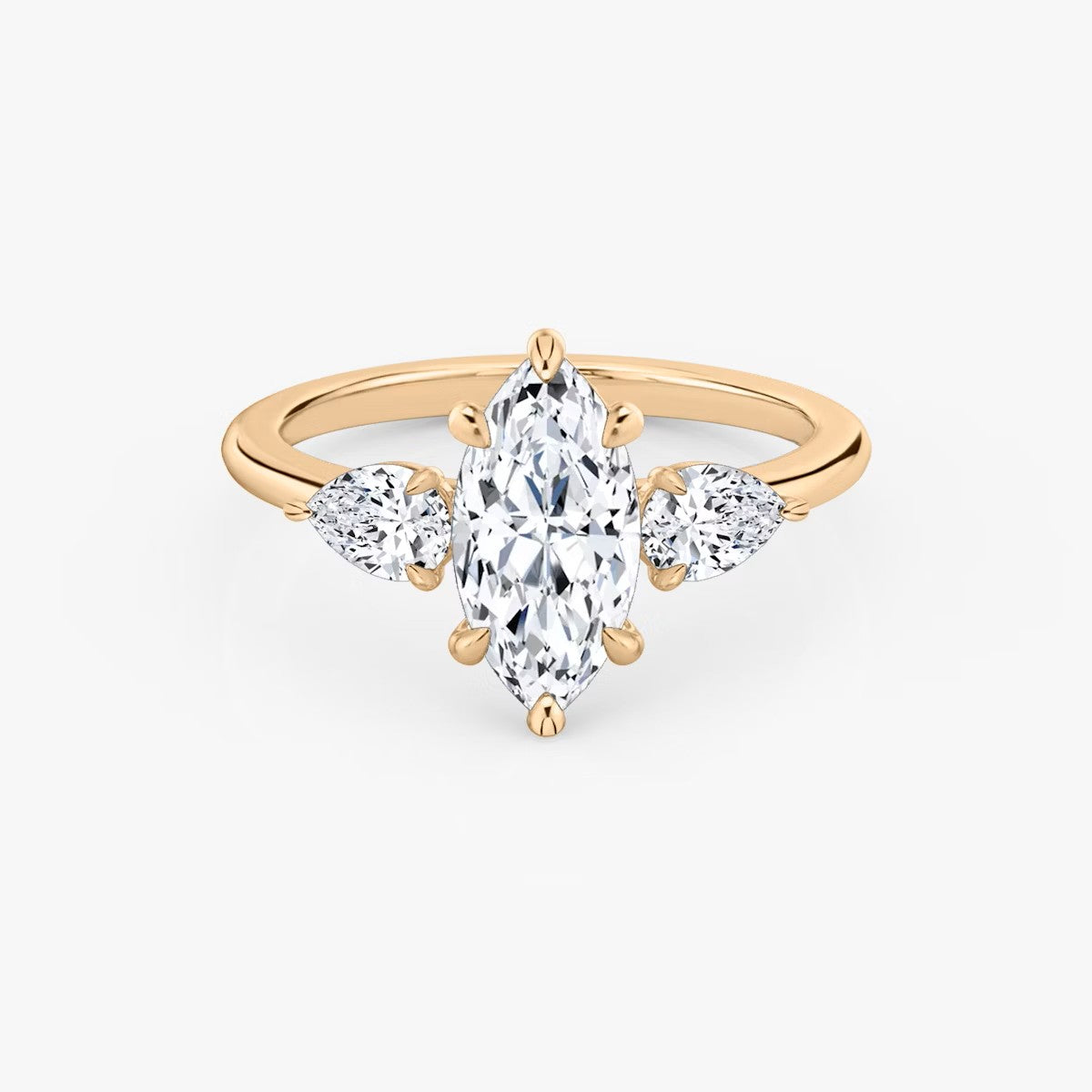Marquise Cut - Plain Band - Three Stone Ring - 0.25 Ct Side Stone each - 14 K Gold