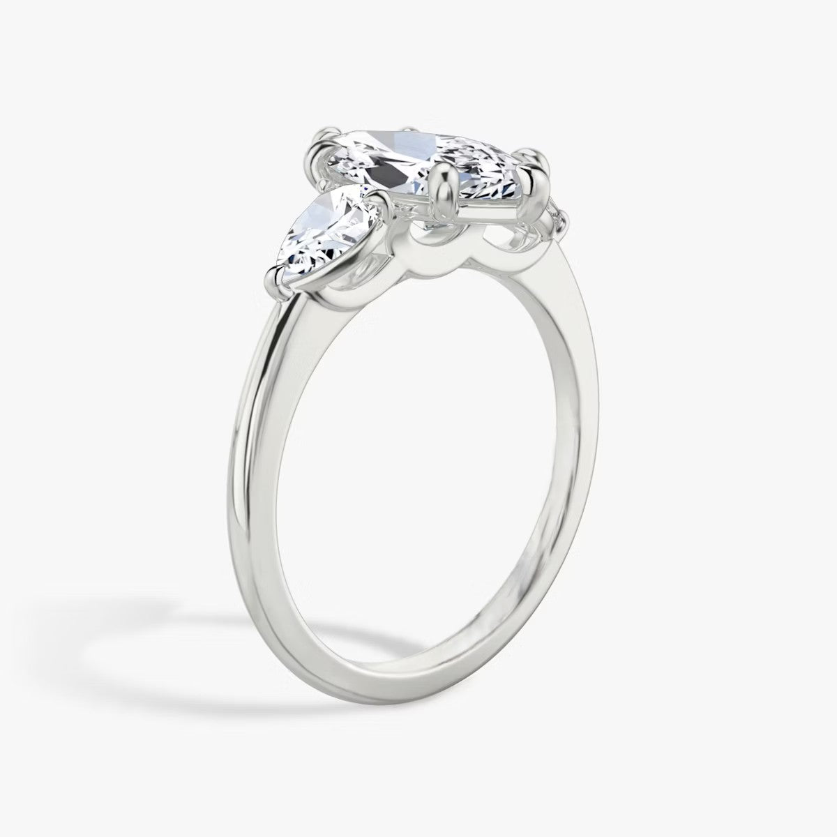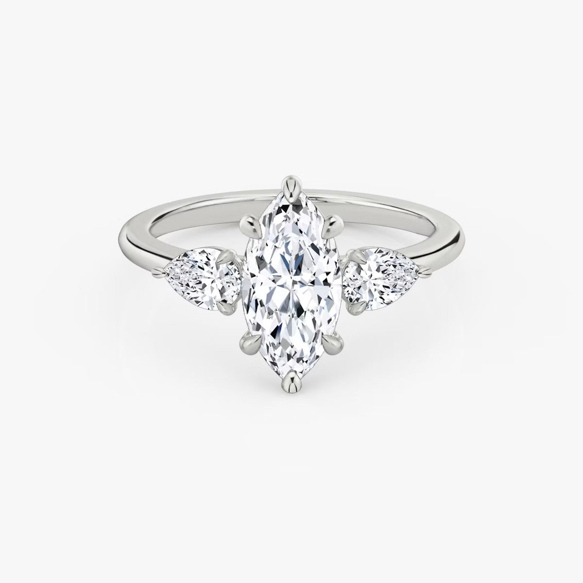 Marquise Cut - Plain Band - Three Stone Ring - 0.25 Ct Side Stone each - 18 K Gold