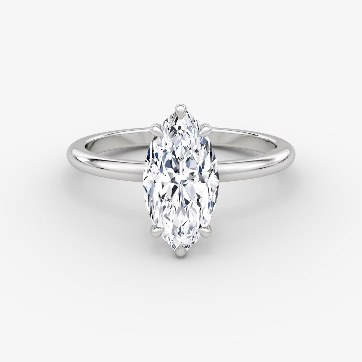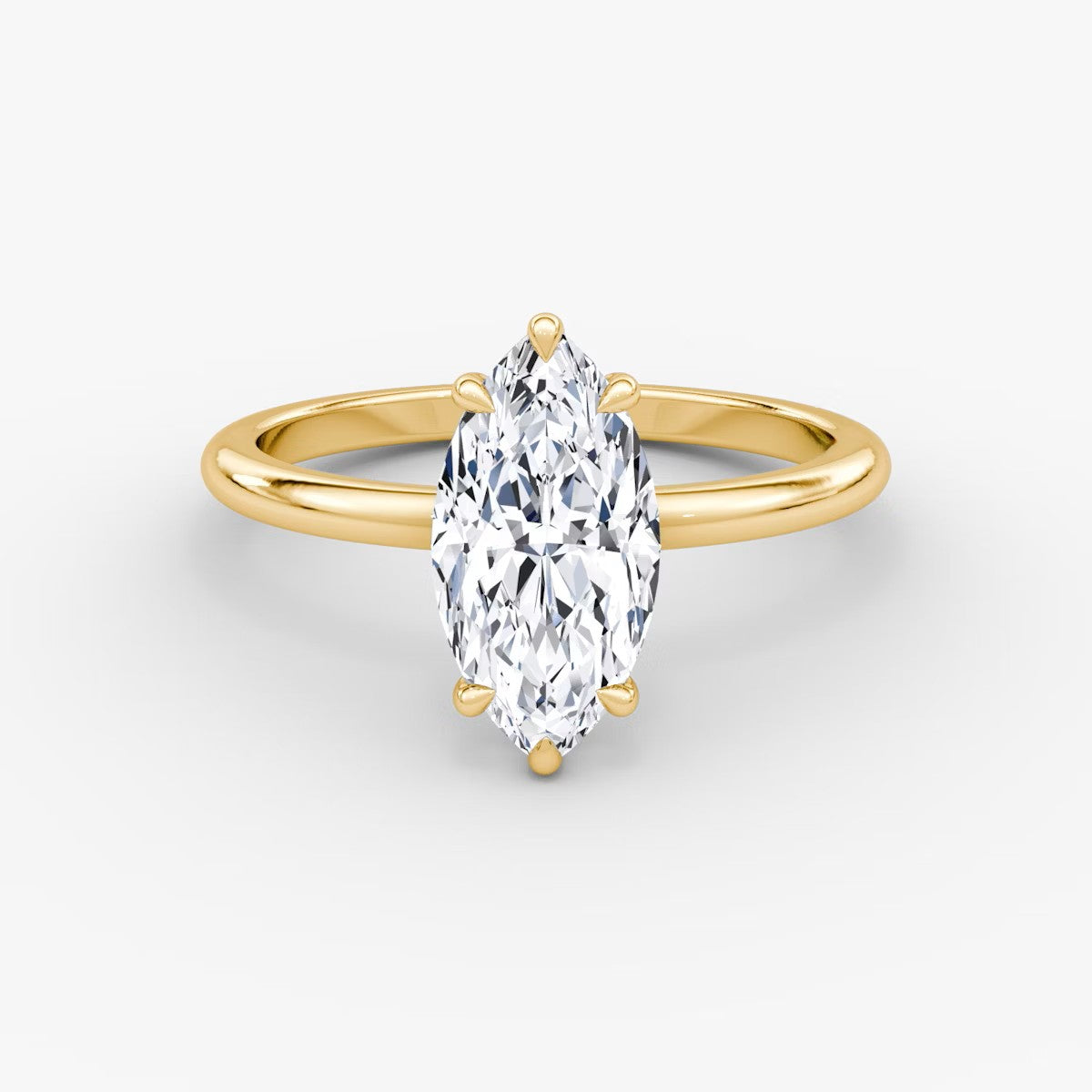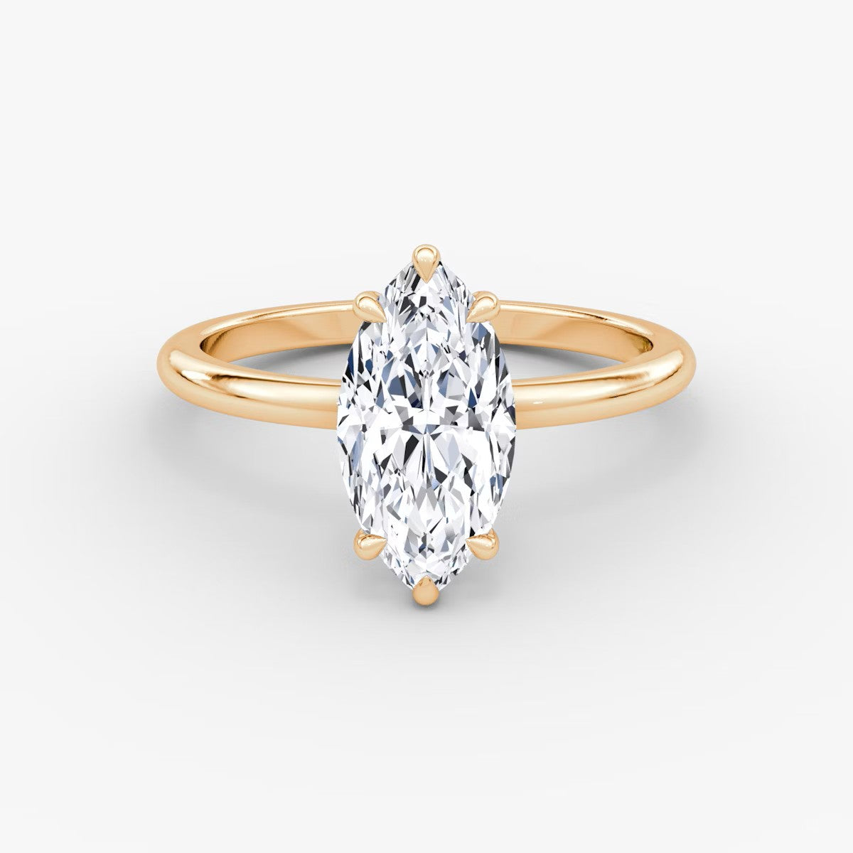 Marquise Cut - Plain Band - Classic Engagement Ring- 14 K Gold