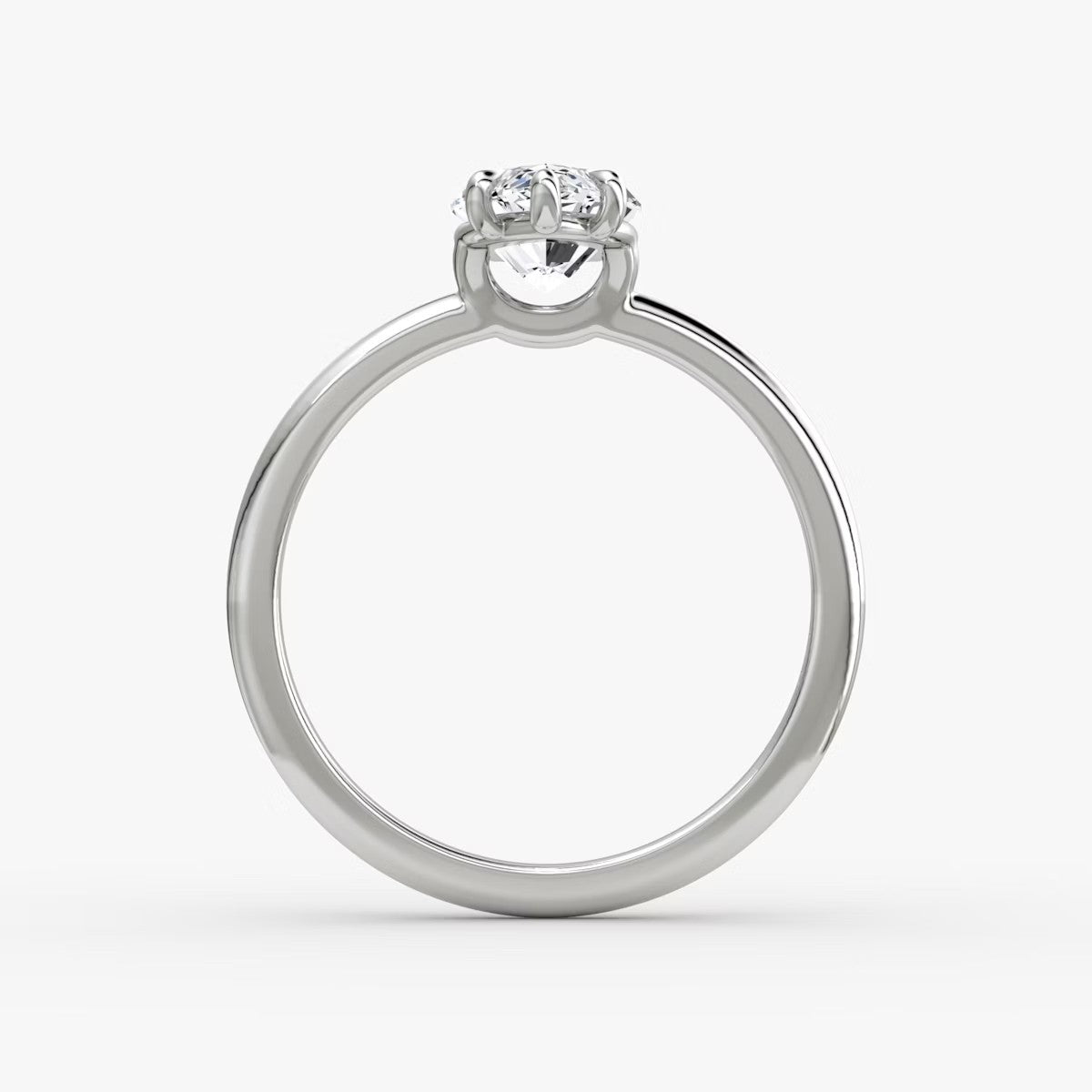 Marquise Cut - Plain Band Hidden Halo - Classic Engagement Ring- 18 K Gold