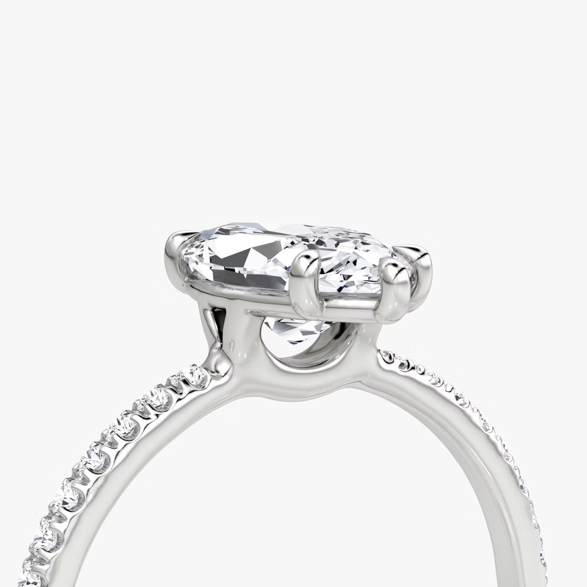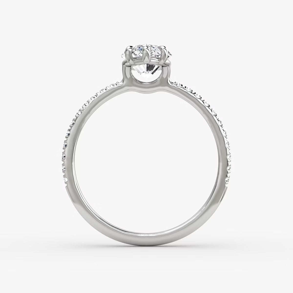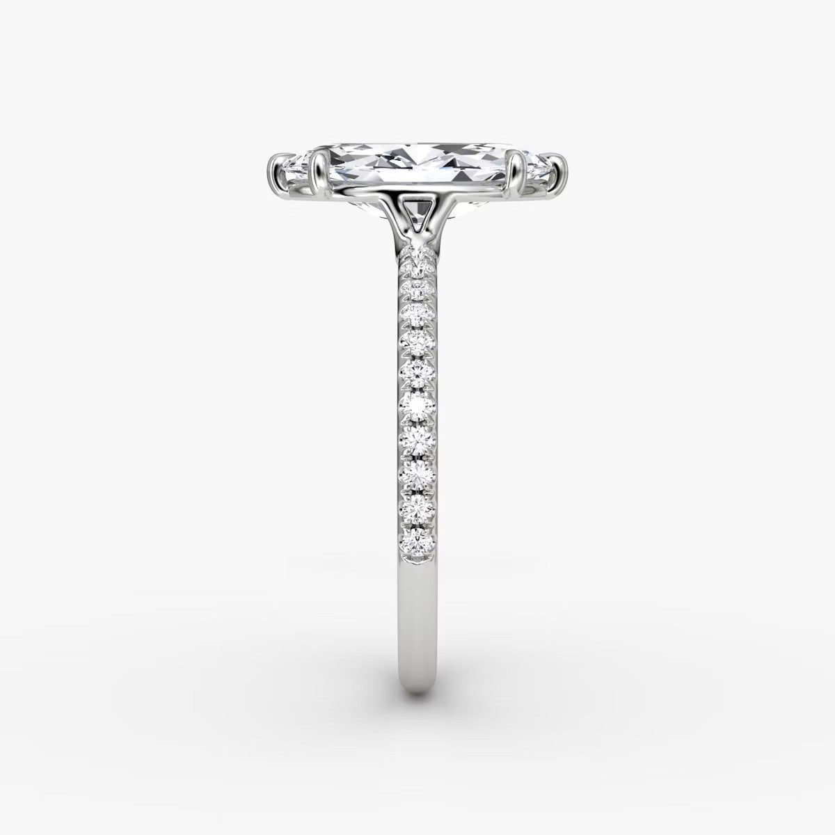 Marquise Cut - Pave Band Hidden Halo - Classic Engagement Ring- 18 K Gold
