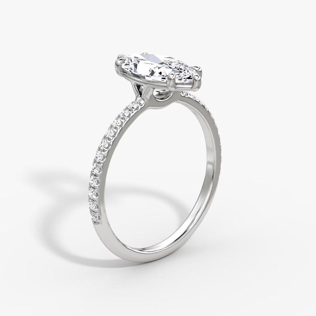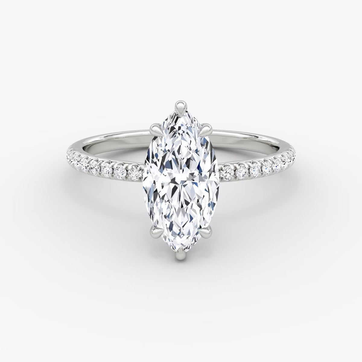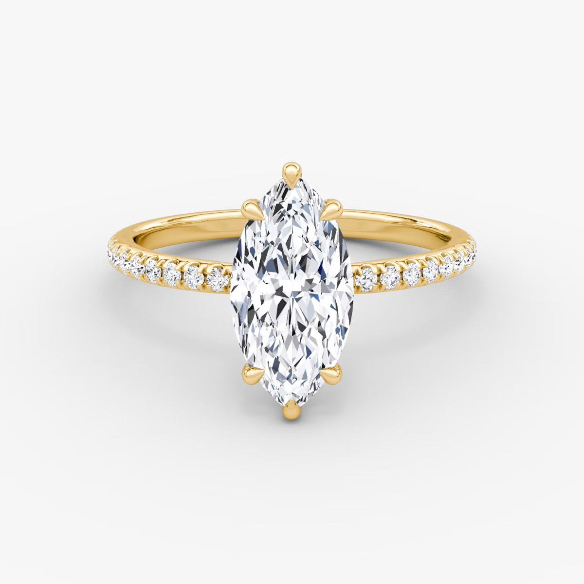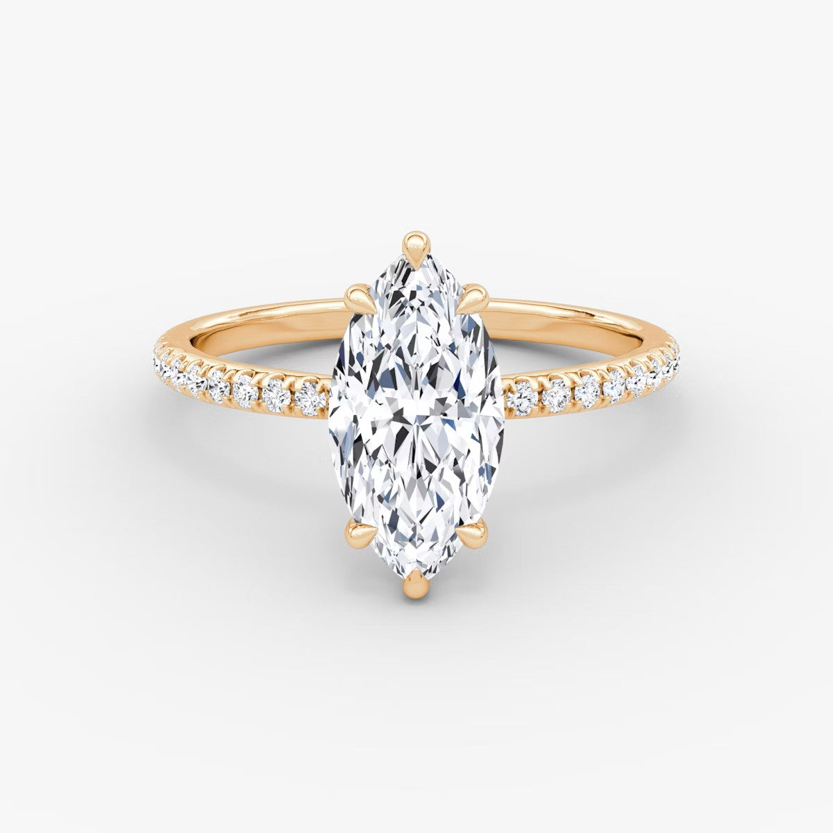 Marquise Cut - Pave Band Hidden Halo - Classic Engagement Ring- 14 K Gold