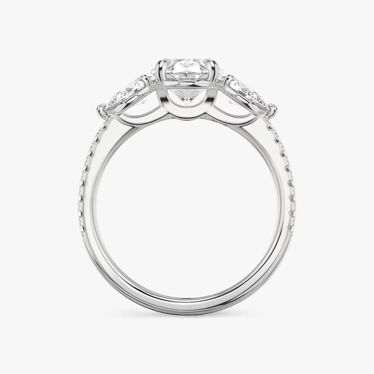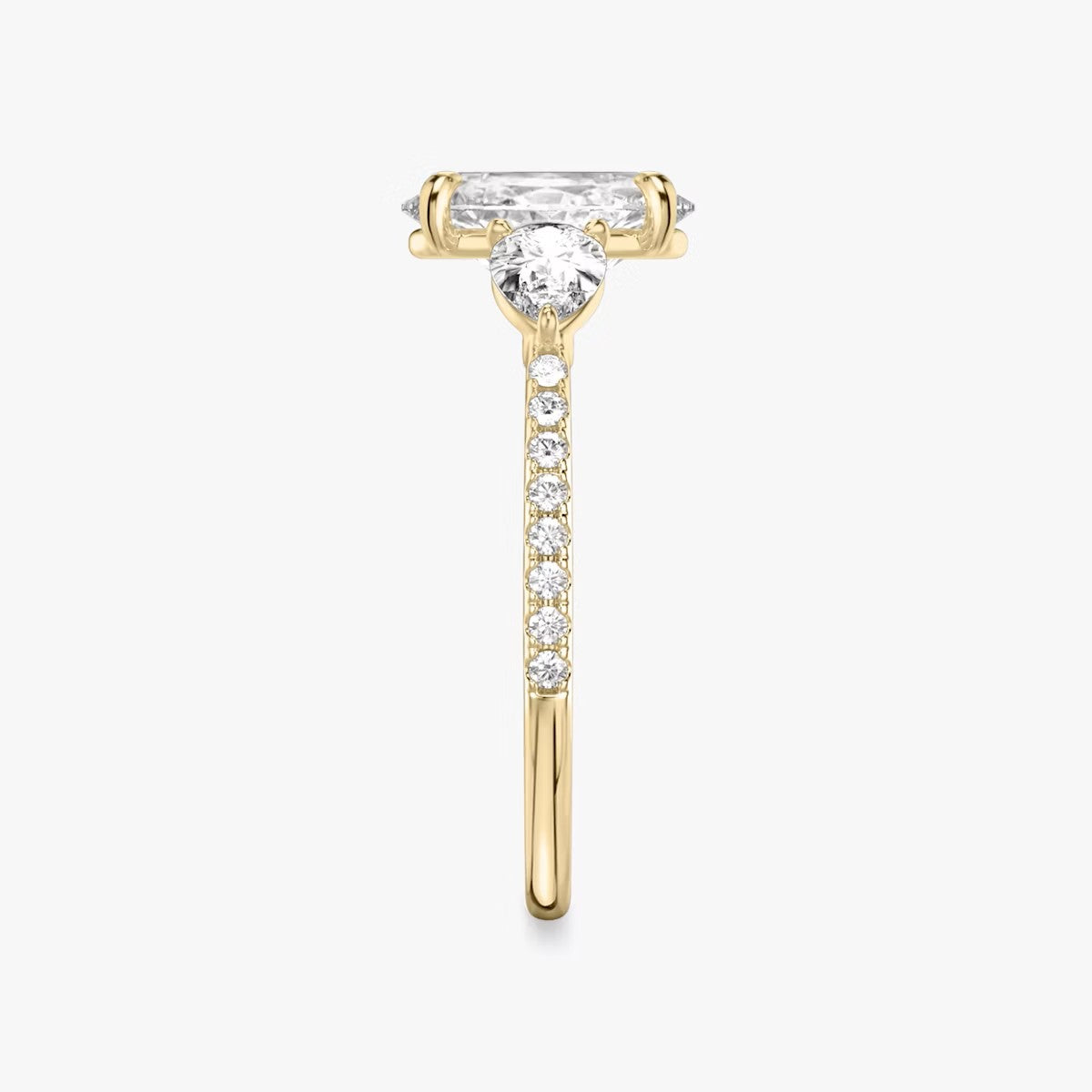 Oval Cut - Pave Band - Three Stone Ring - 0.25 Ct Side Stone each - 18 K Gold