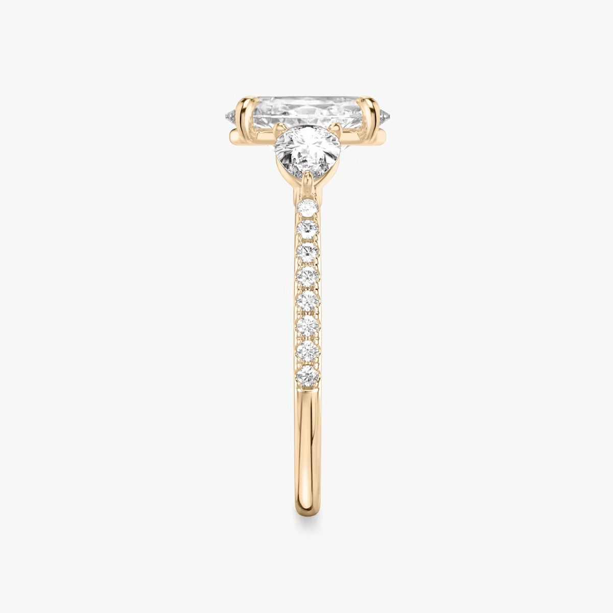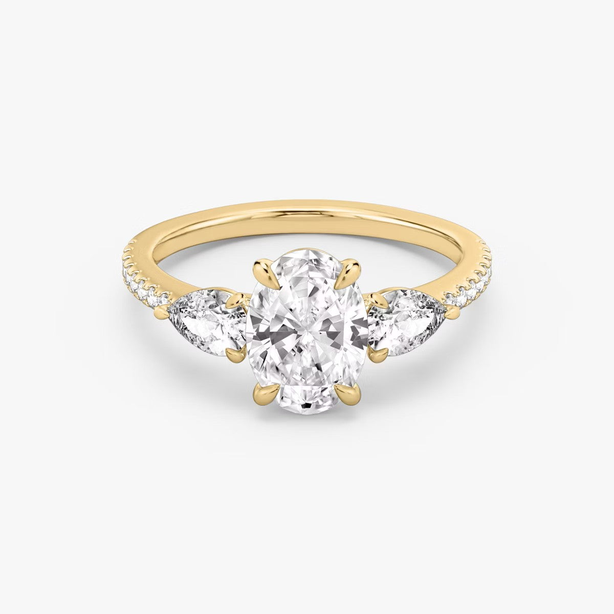 Oval Cut - Pave Band - Three Stone Ring - 0.25 Ct Side Stone each - 14 K Gold