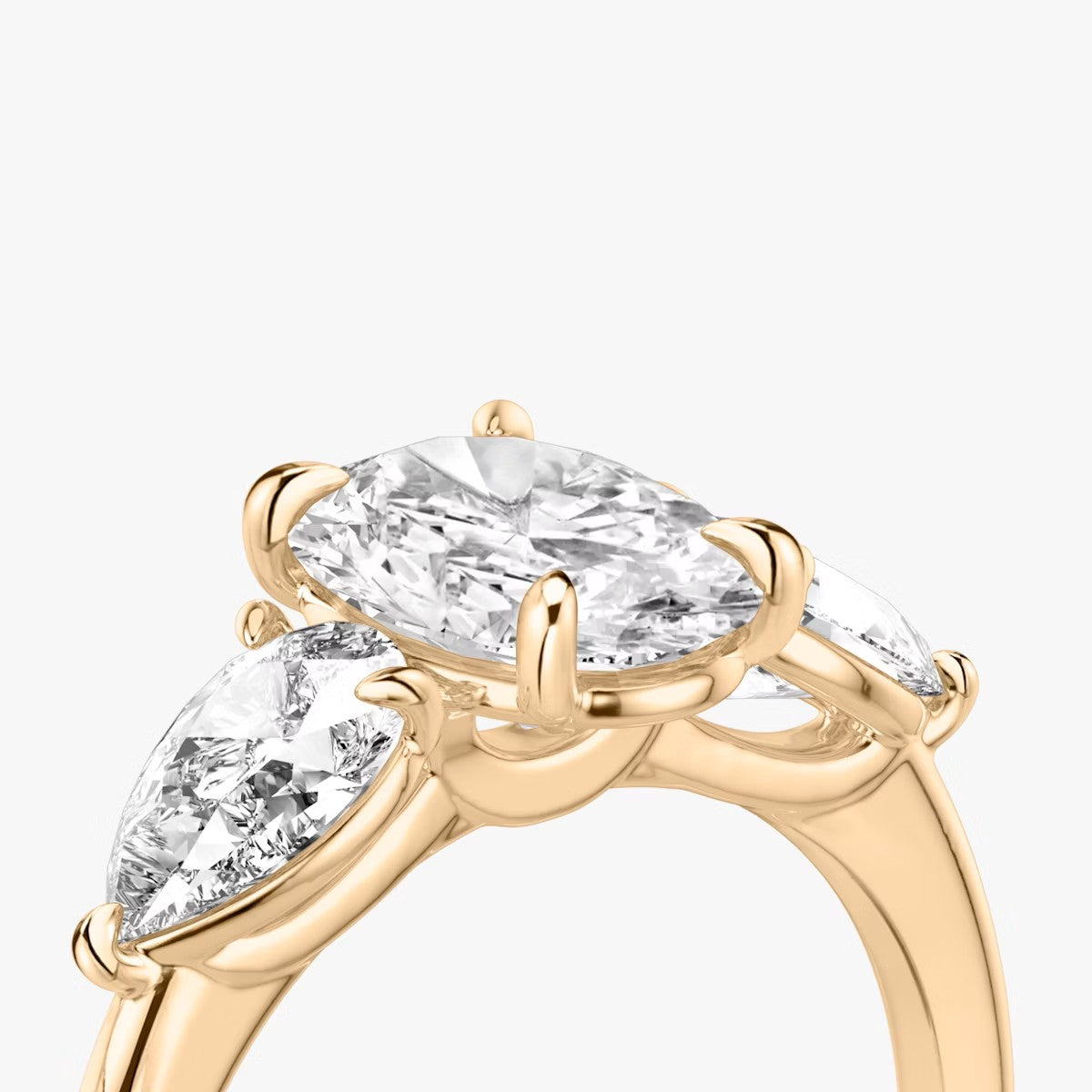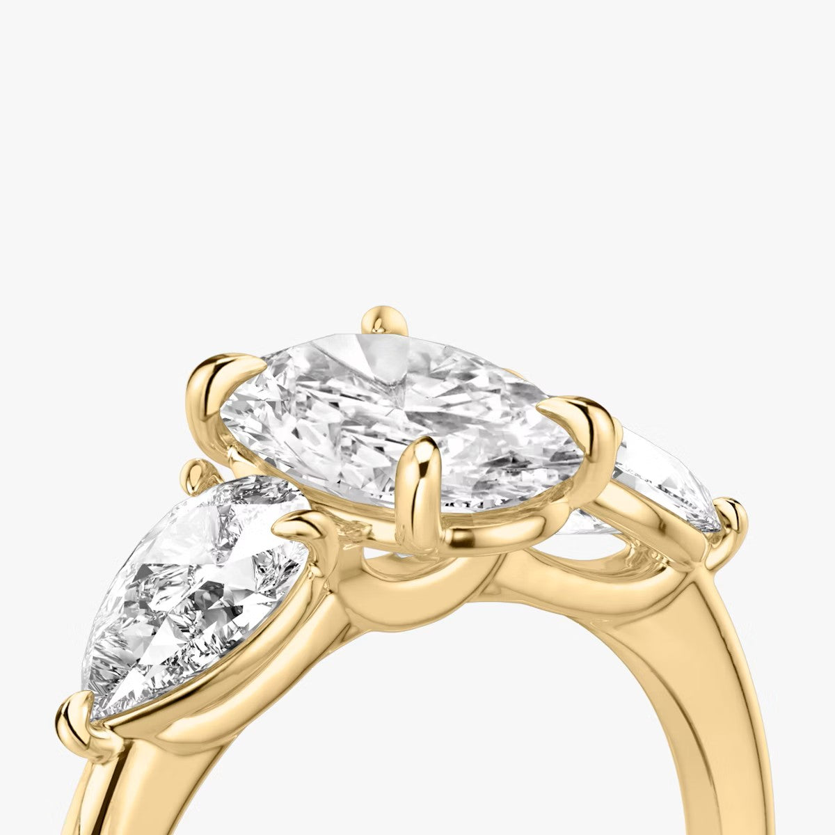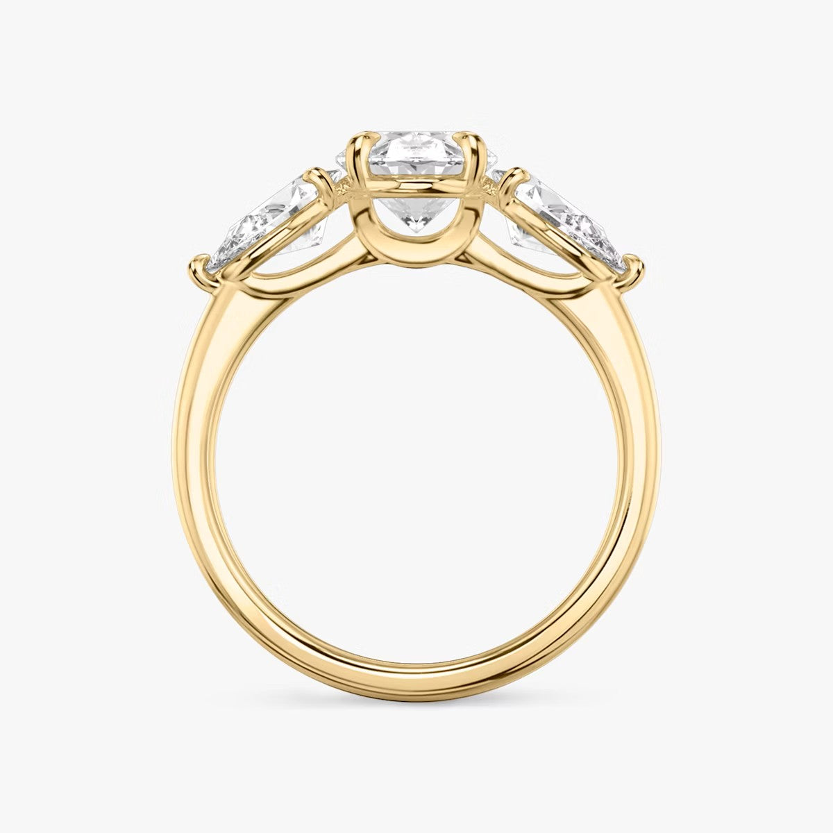 Oval Cut - Plain Band - Three Stone Ring- 0.5 Ct Side Stone each - 14 K Gold