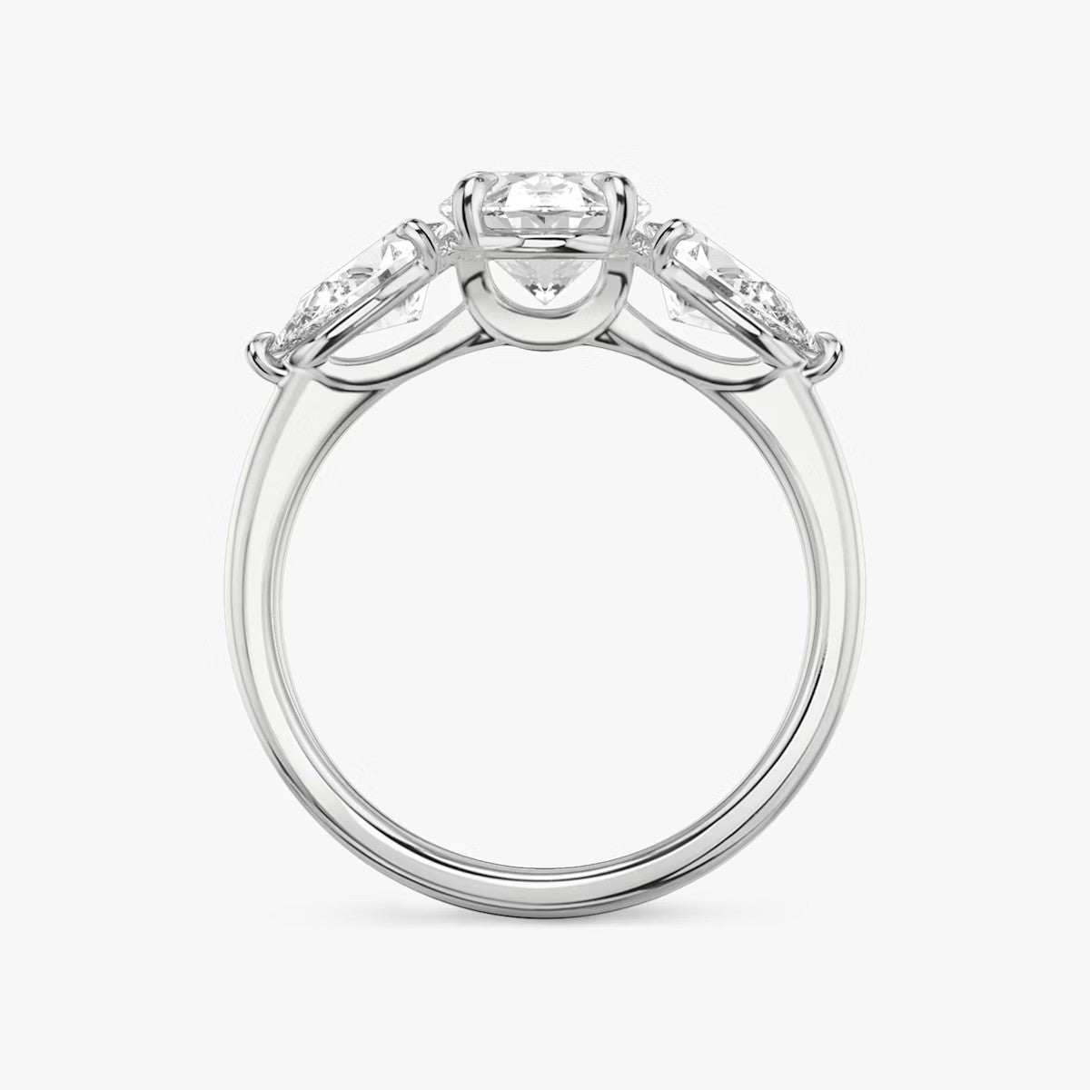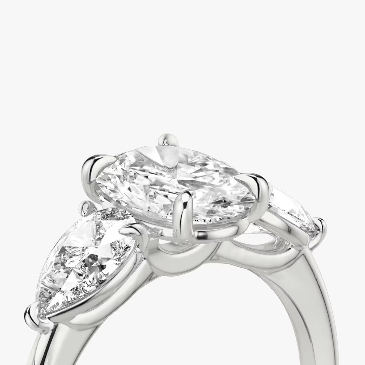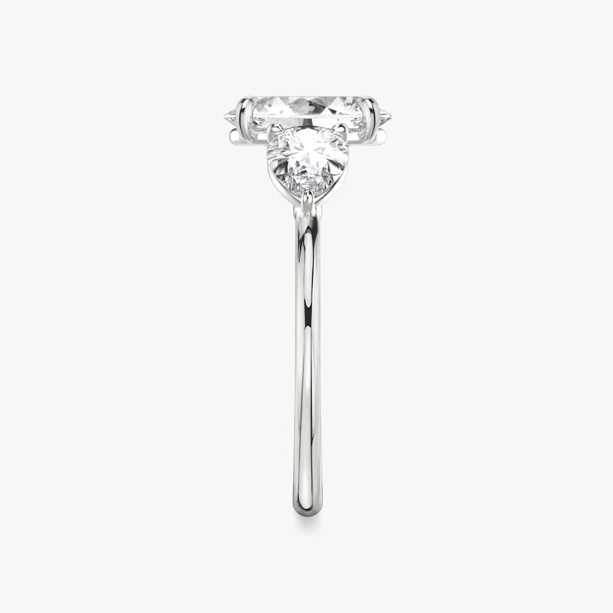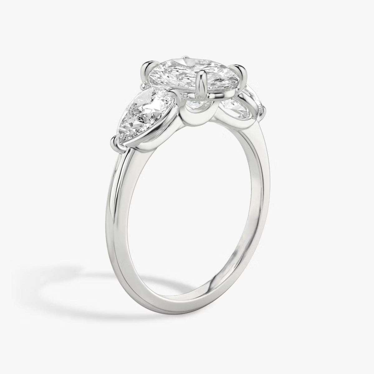 Oval Cut - Plain Band - Three Stone Ring- 0.5 Ct Side Stone each - 18 K Gold