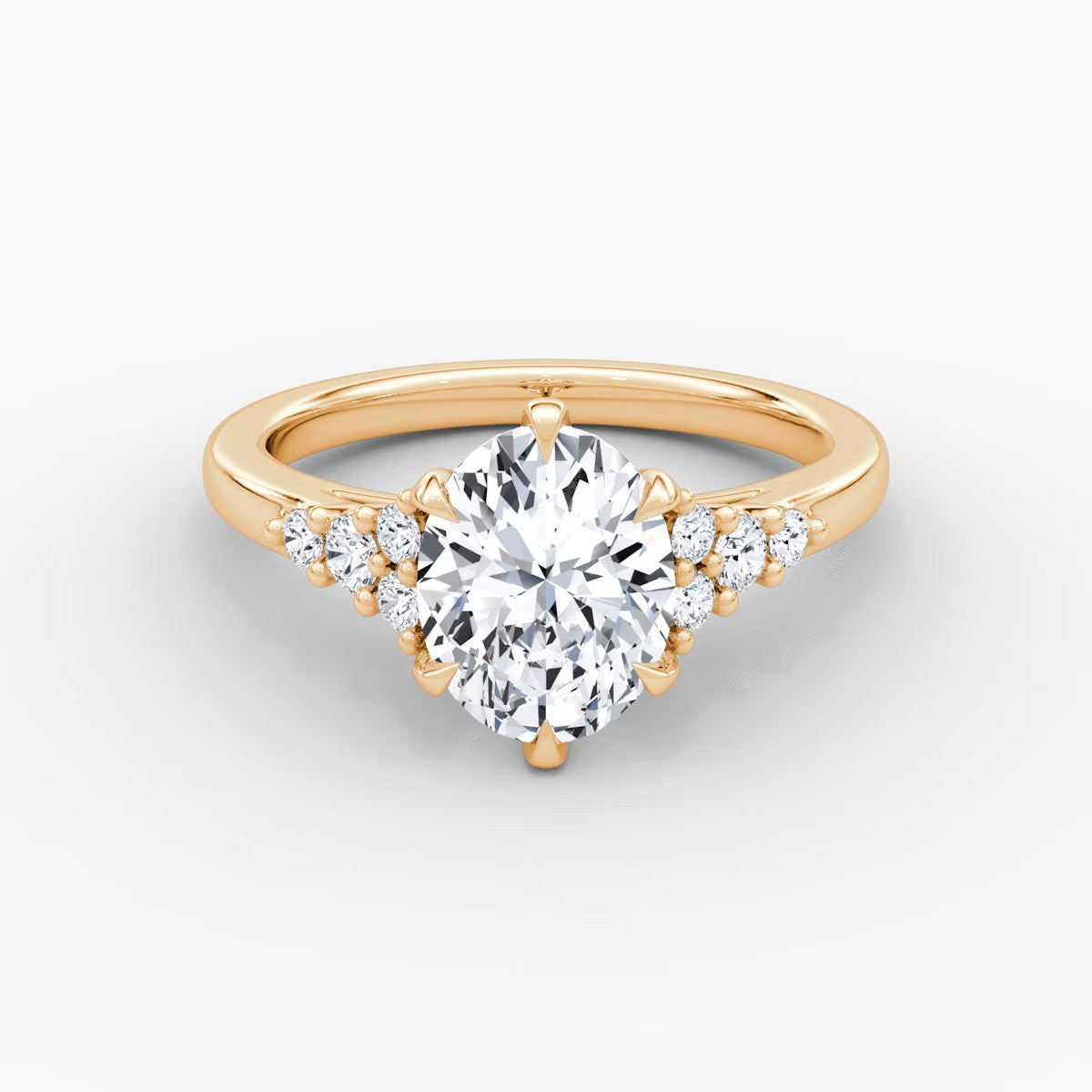 Oval Cut - Plain Band - Cluster Ring - 14 K Gold