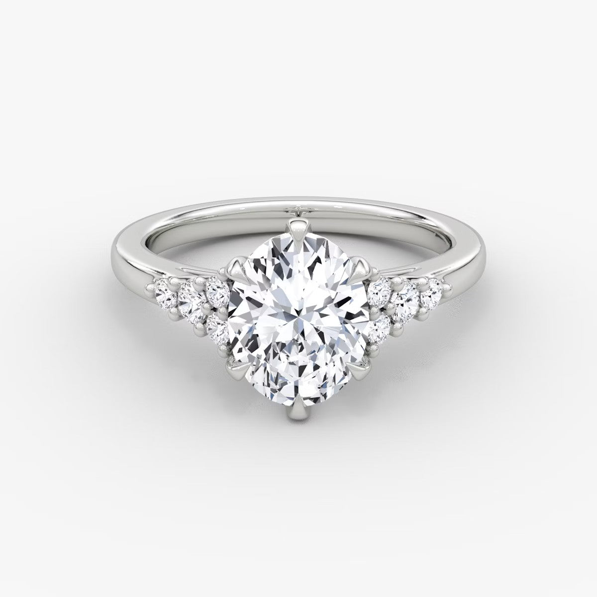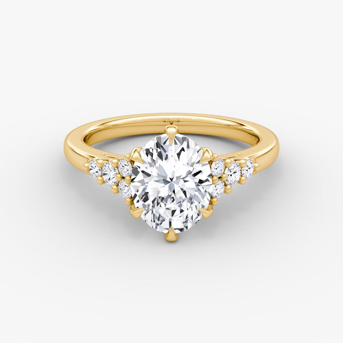 Oval Cut - Plain Band - Cluster Ring - 18 K Gold