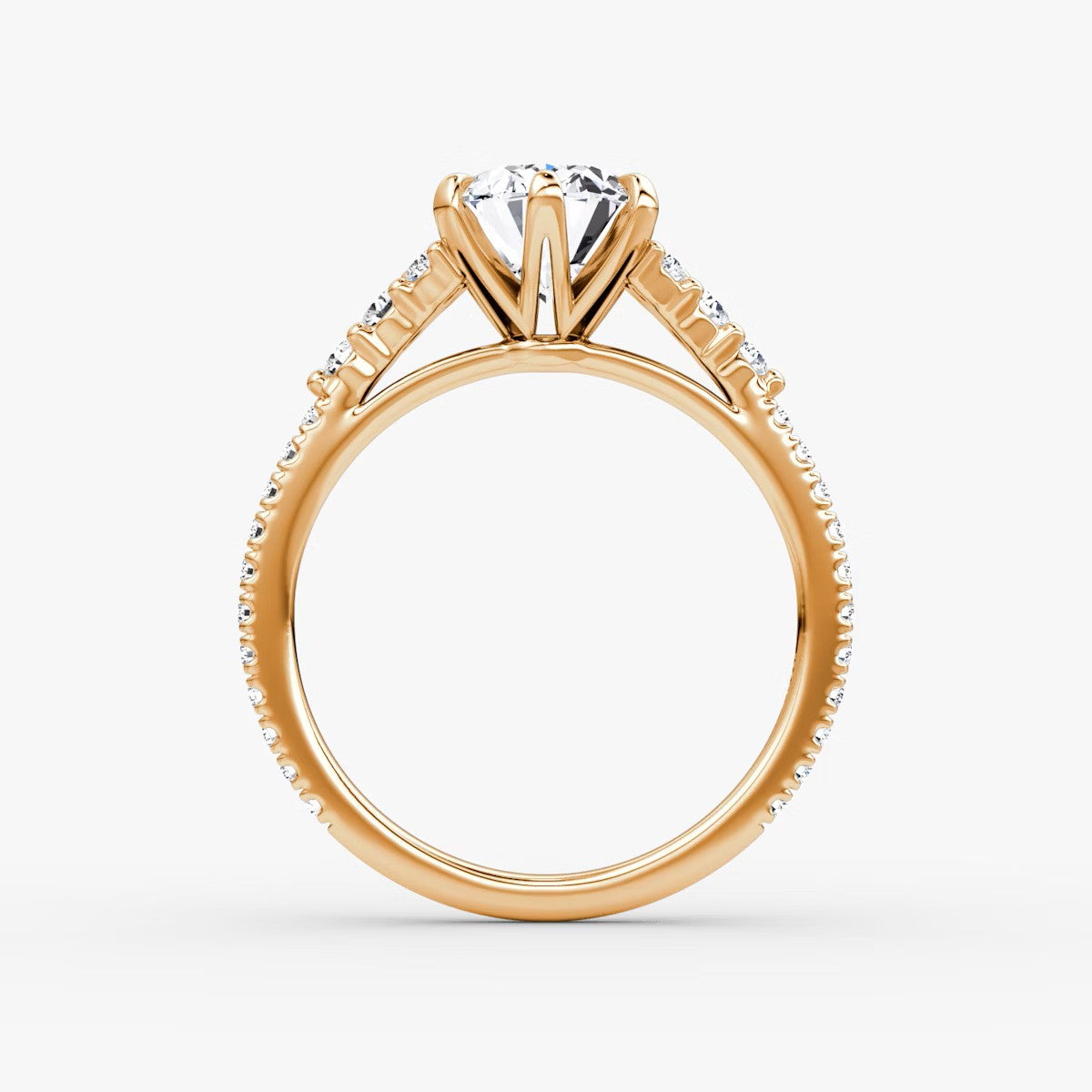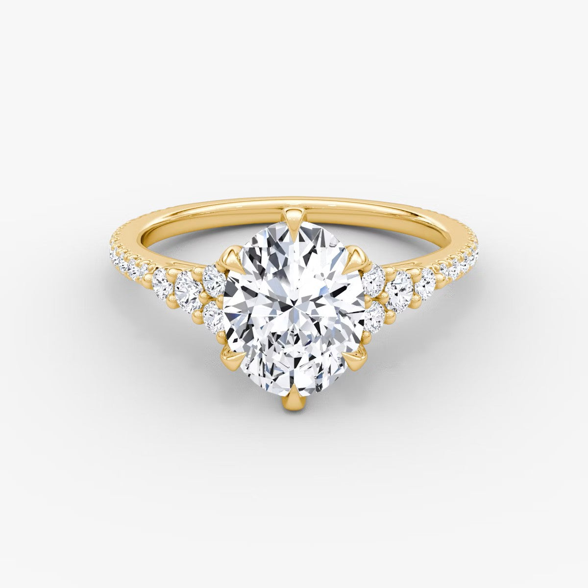Oval Cut - Pave Band - 6 Prong Classic Ring - 14 K Gold