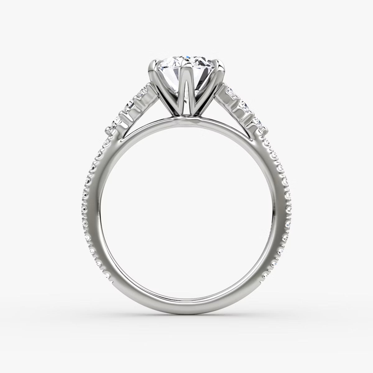 Oval Cut - Pave Band - 6 Prong Classic Ring - 18 K Gold