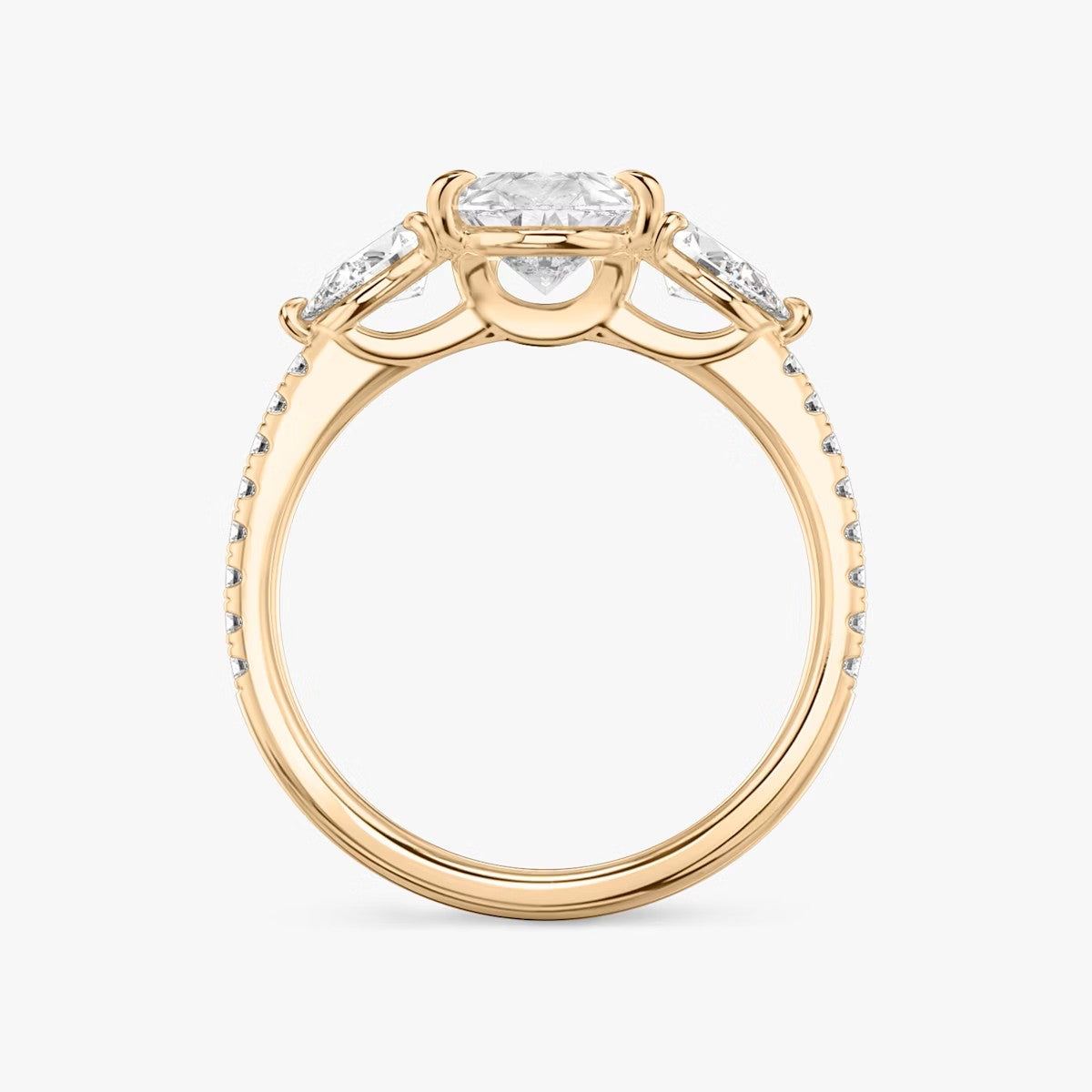 Pear Cut - Pave Band - Three Stone Ring - 0.25 Ct Side Stone each - 14 K Gold